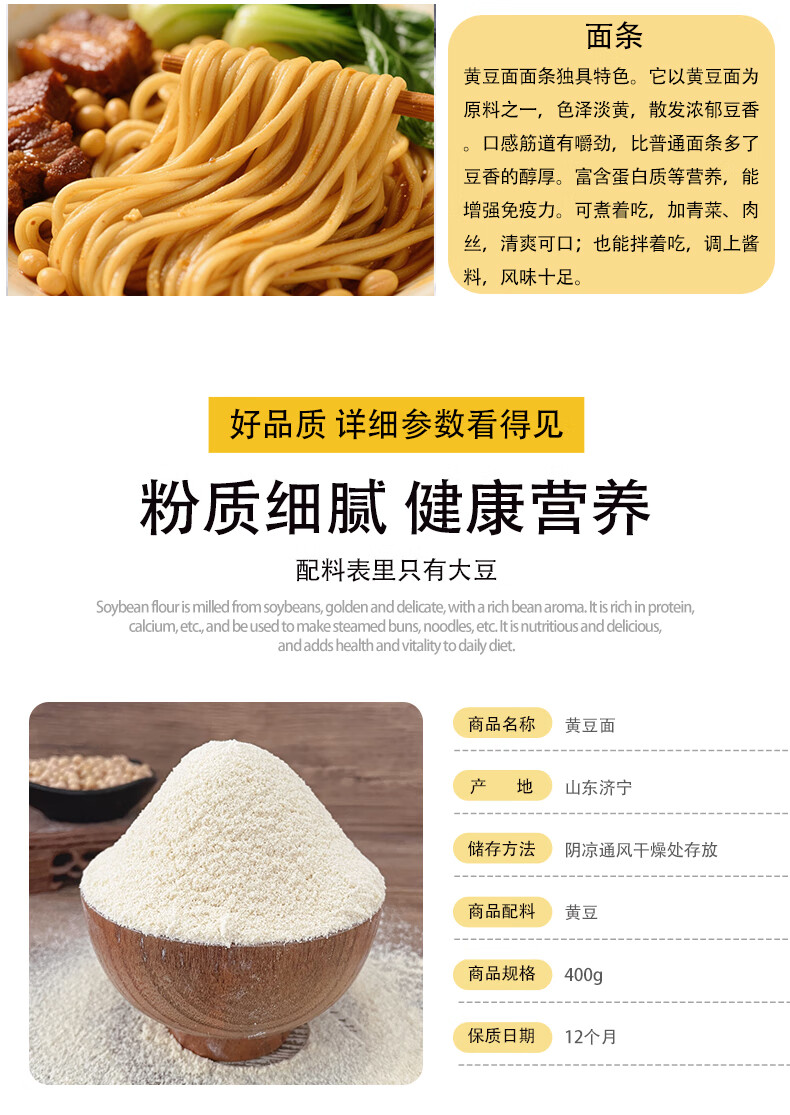 黄豆面粉现磨纯黄豆面新鲜生黄豆面粉豆腐豆花杂粮煎饼粉精细碾磨 黄豆面粉400g*1袋