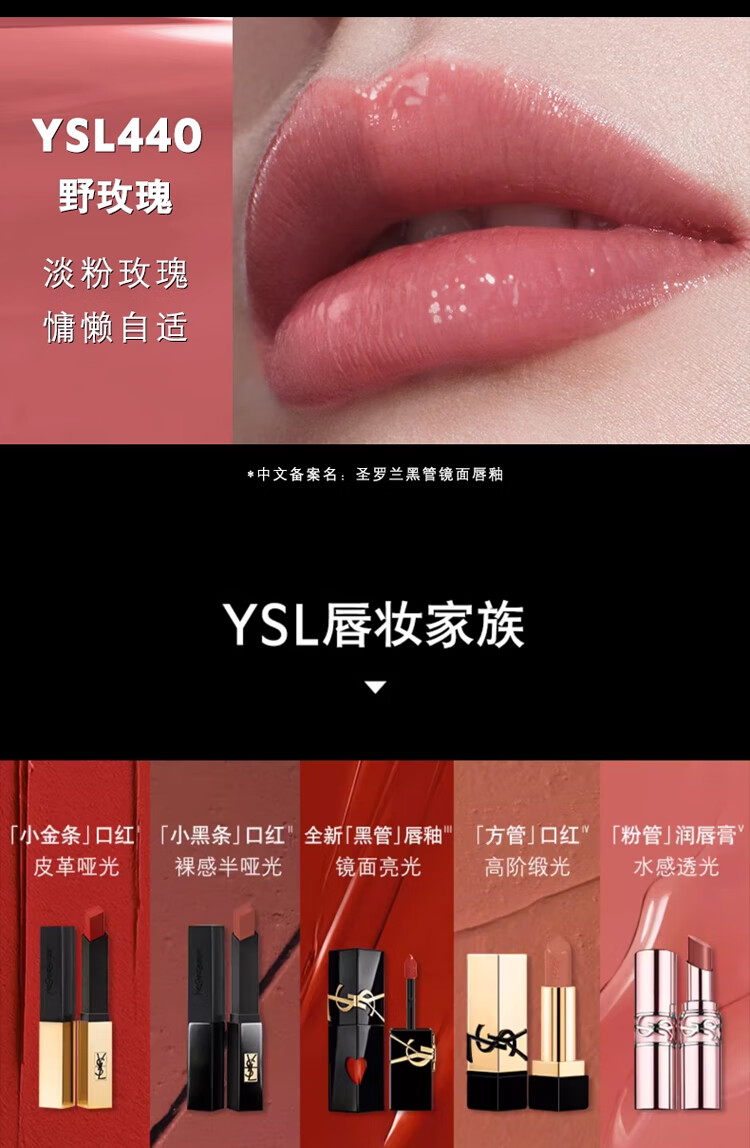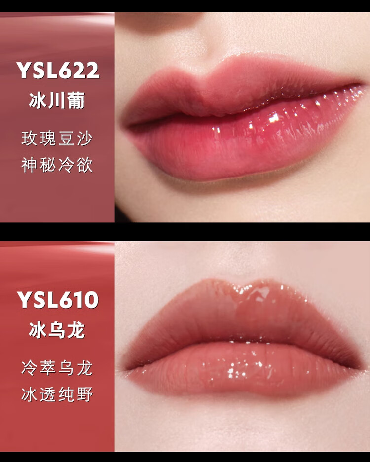 YSL圣罗兰 全新黑管唇釉610冰乌龙 欲感玻璃唇 镜面亮光 生日礼物
