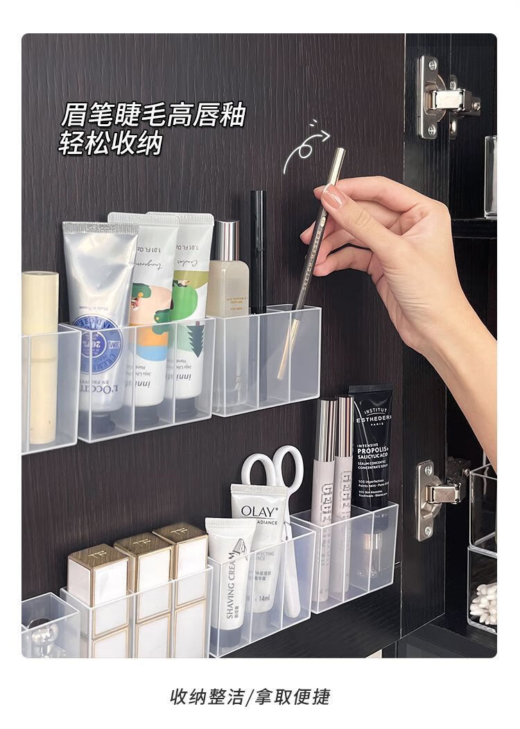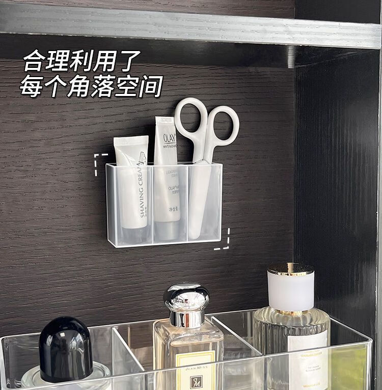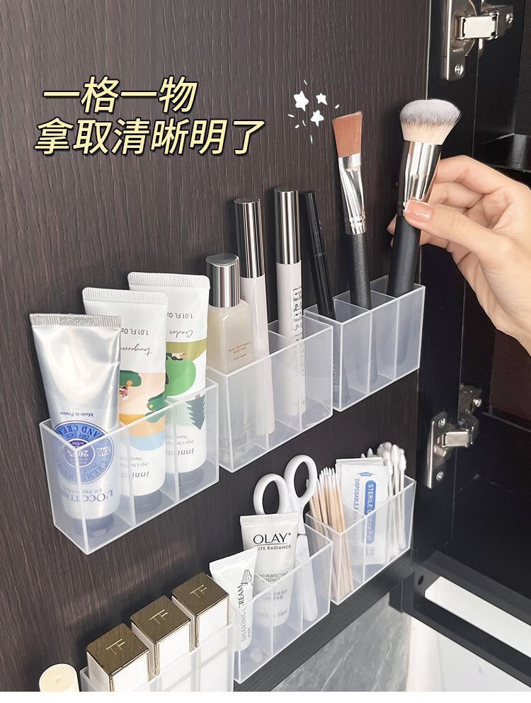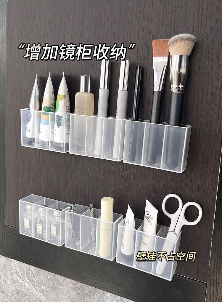 三分格壁挂分格盒免打孔小物收纳眉毛夹剪刀眉笔刷子口红收纳盒子 壁挂分格收纳盒-3分格-1个-opp袋