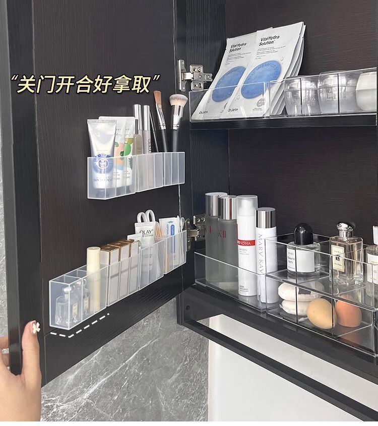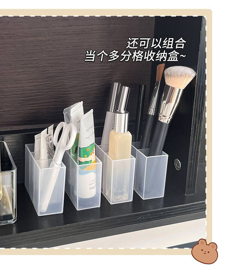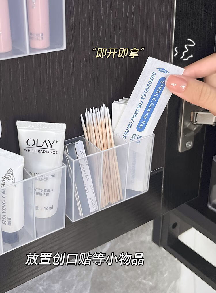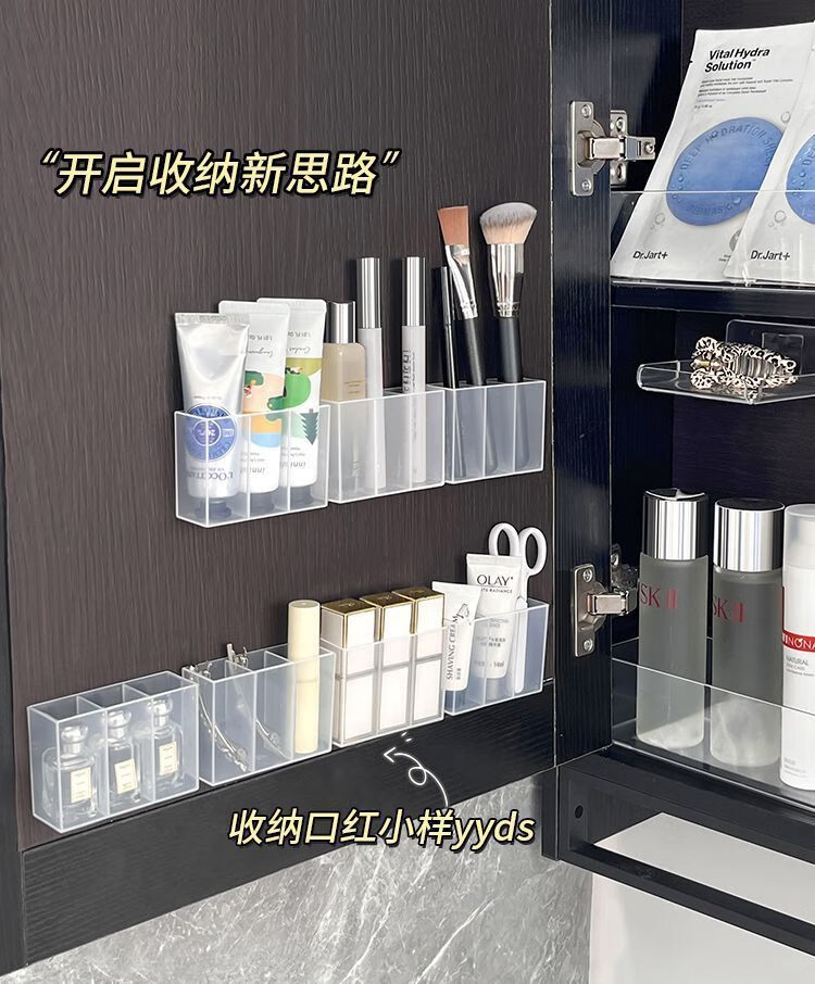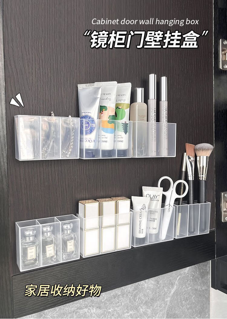 三分格壁挂分格盒免打孔小物收纳眉毛夹剪刀眉笔刷子口红收纳盒子 壁挂分格收纳盒-3分格-1个-opp袋