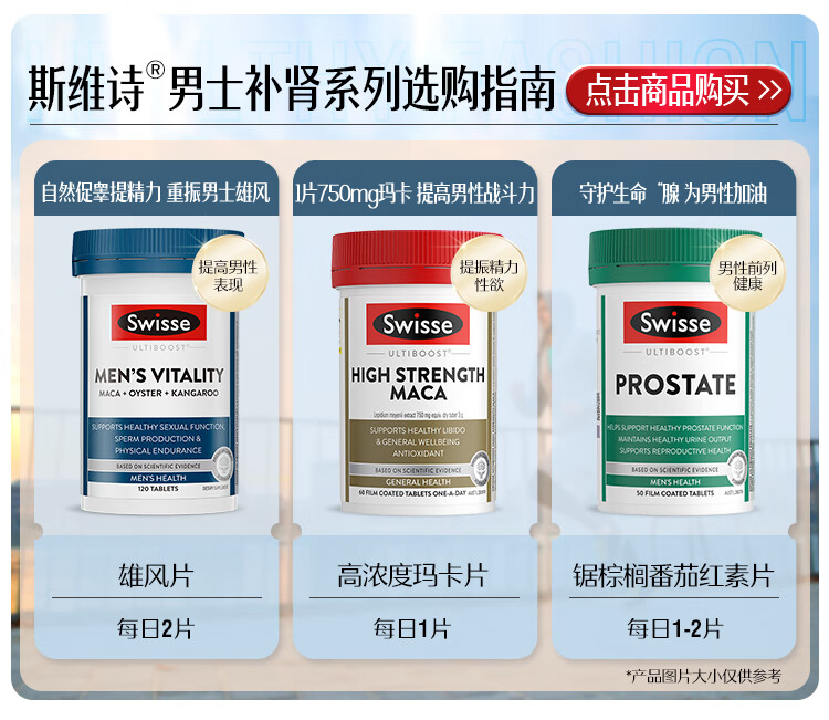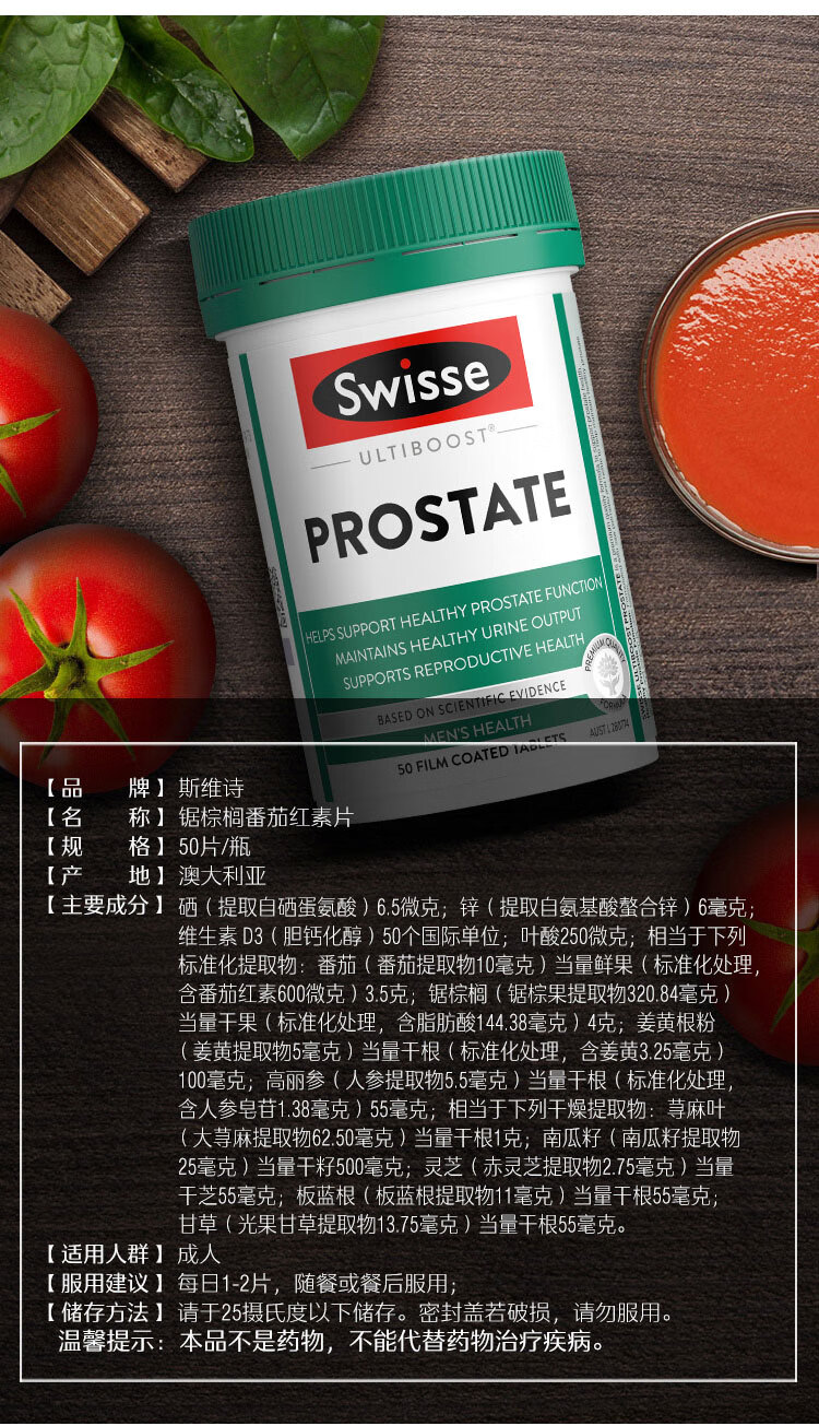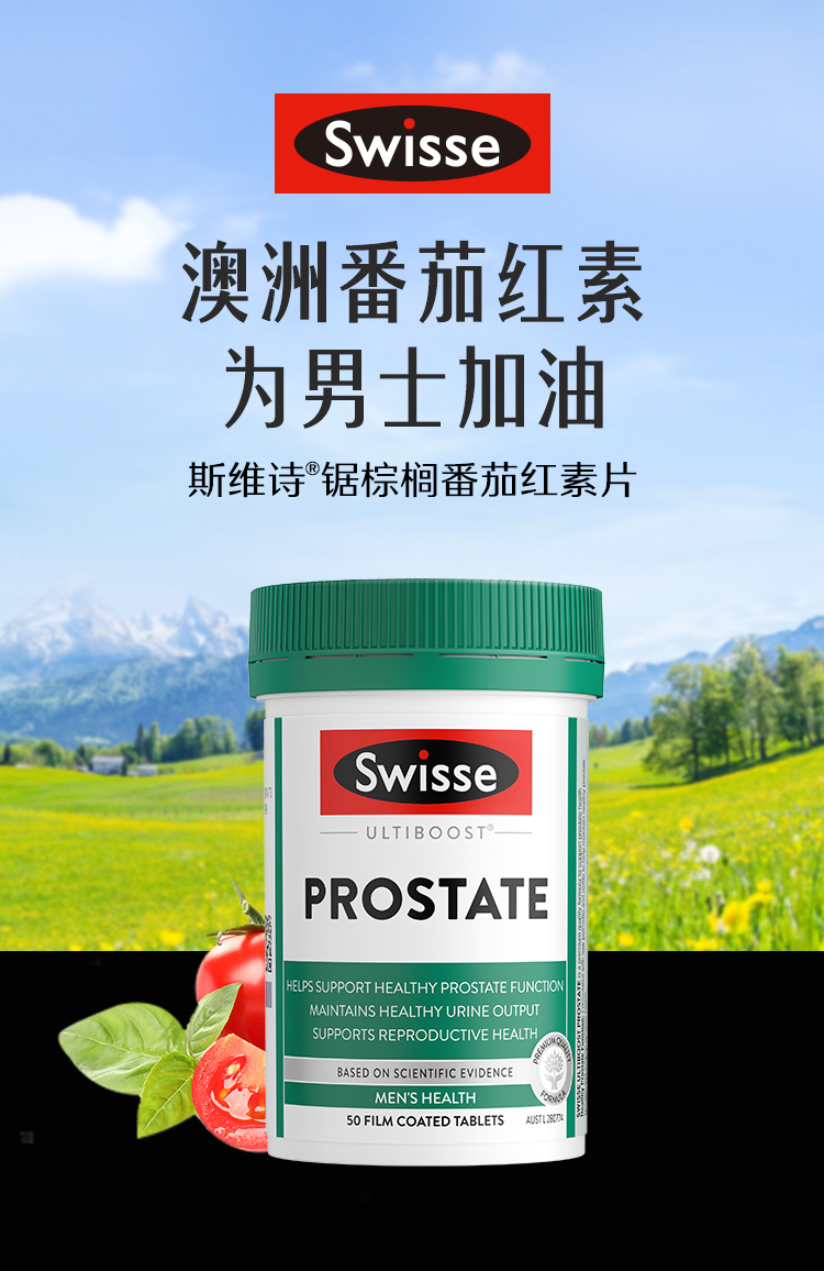 Swisse斯维诗男士锯棕榈番茄红素锌硒维生素D3前列尿道健康备孕50片/瓶