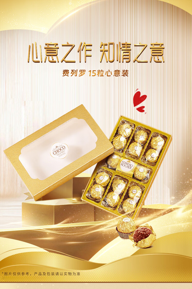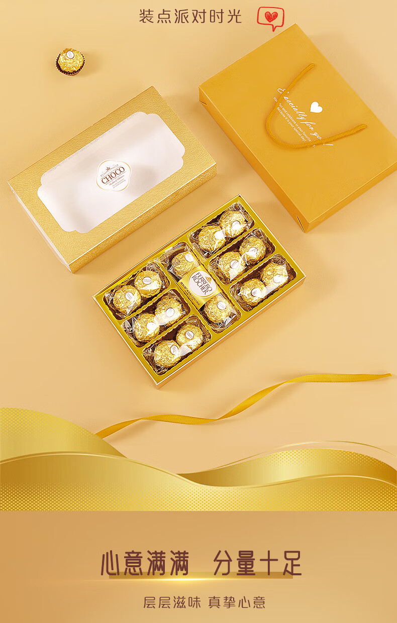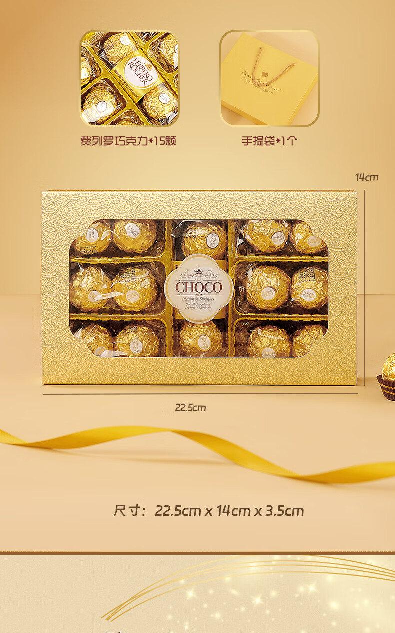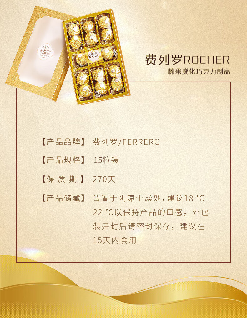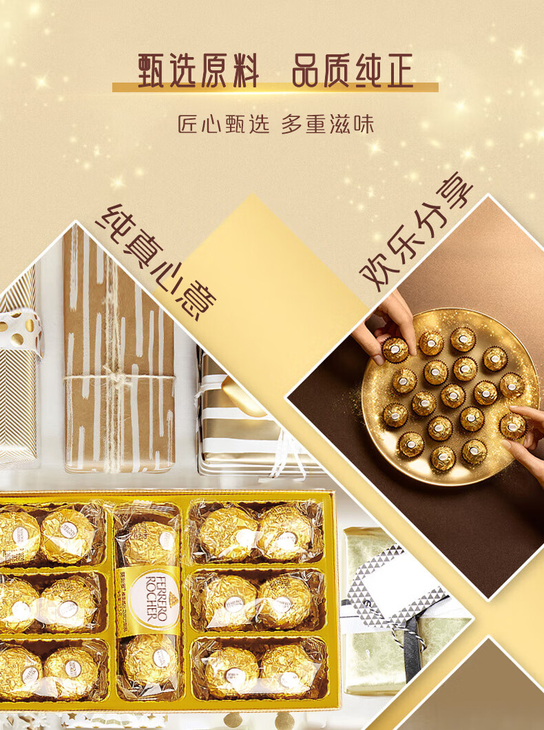 费列罗 榛果威化巧克力礼盒 15粒187.5g 休闲零食 伴手礼 年货节礼物