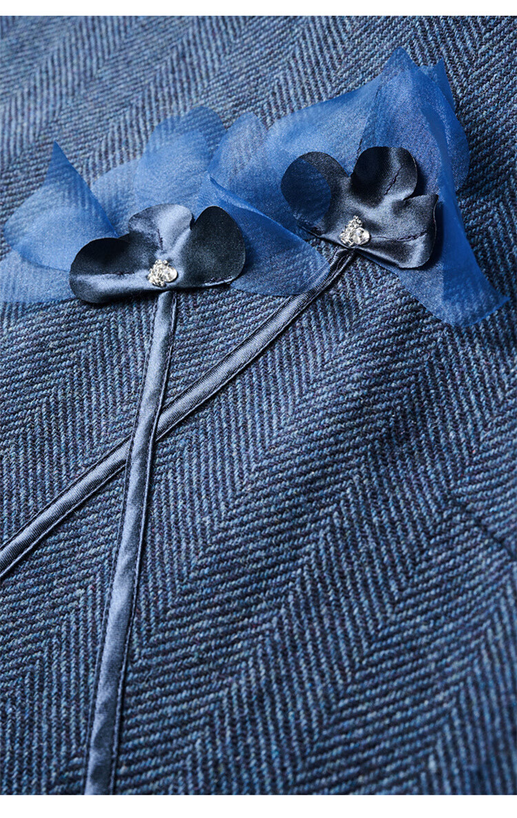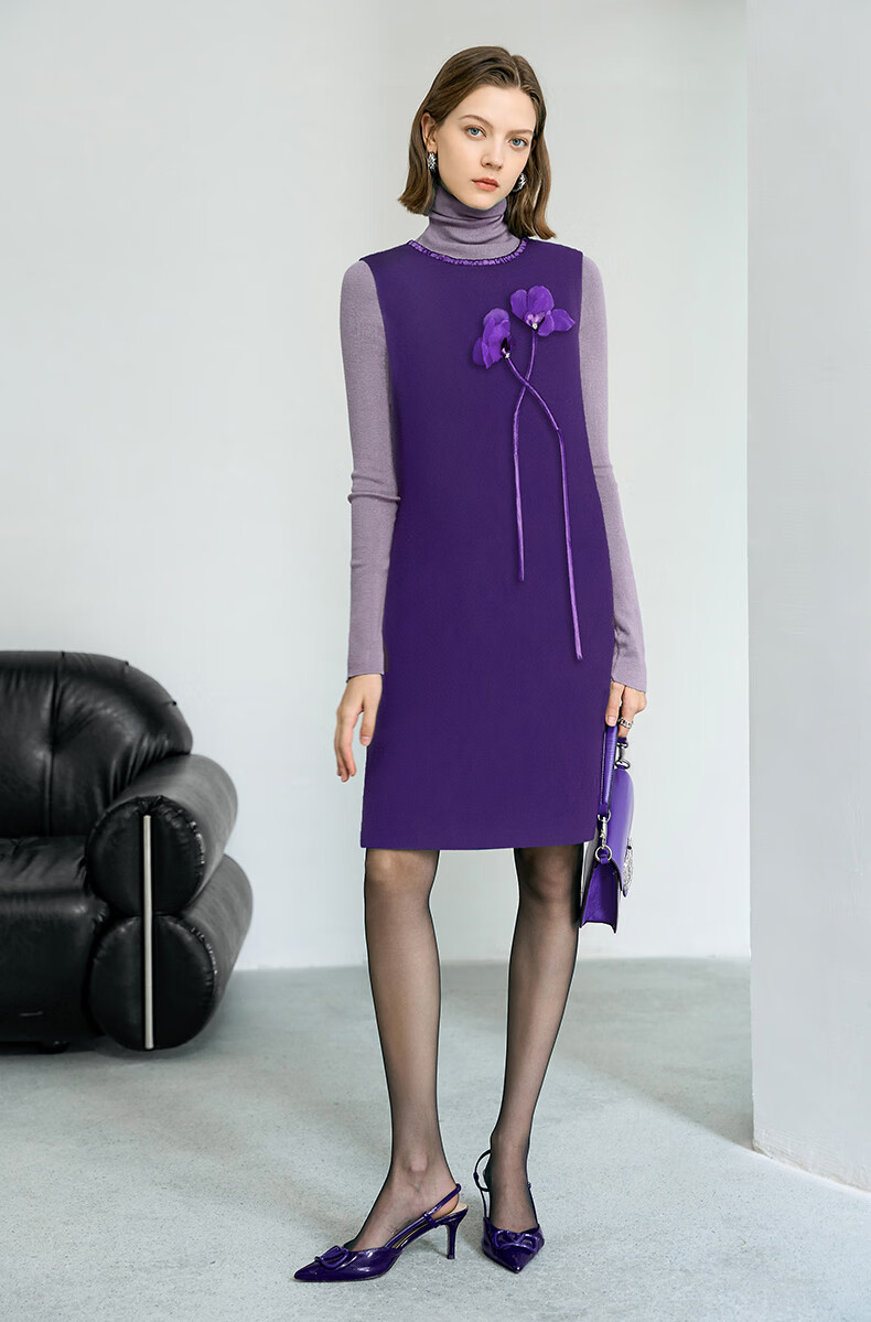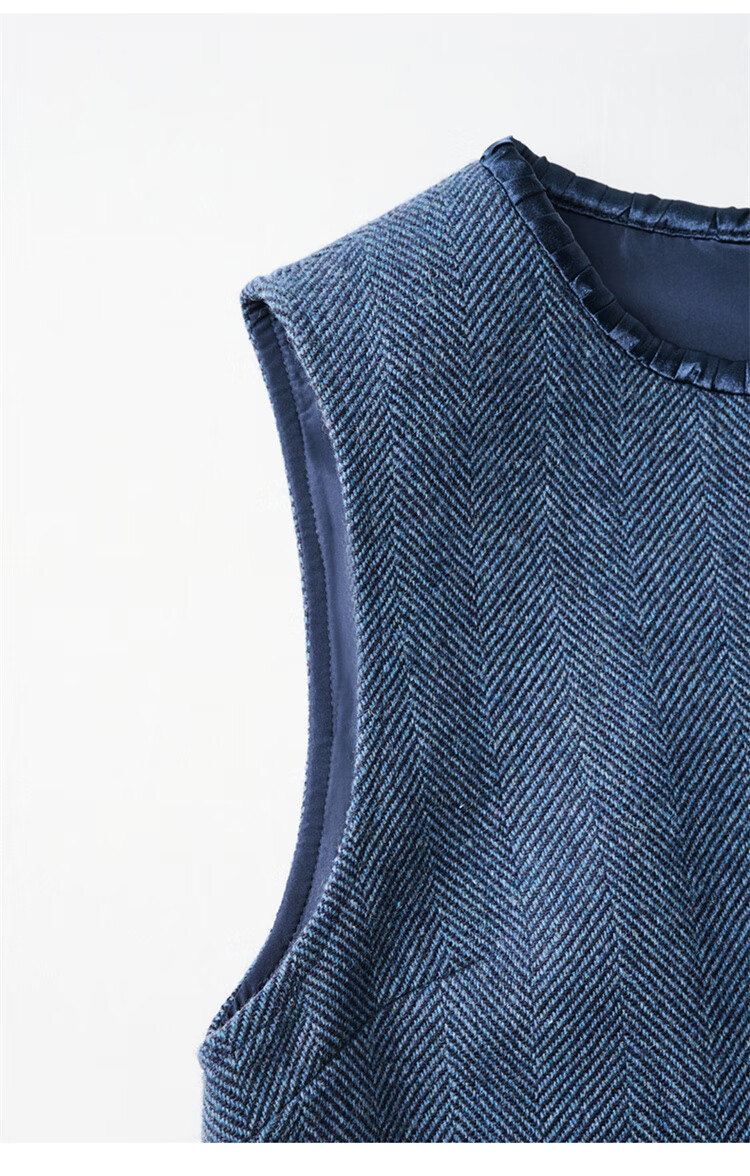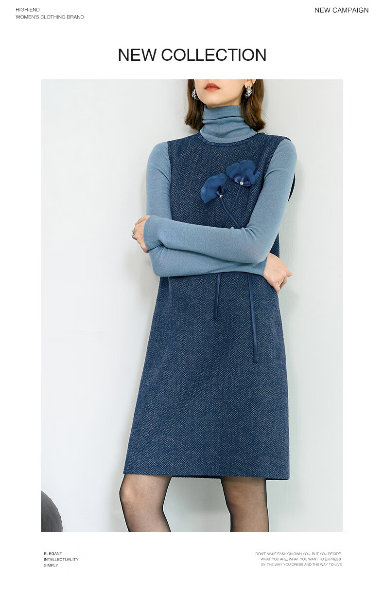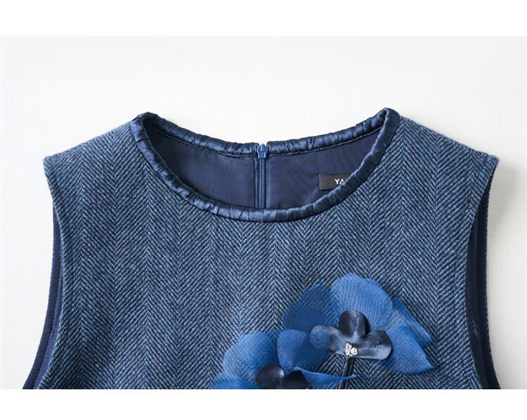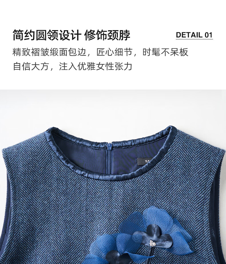 颜域绵羊毛连衣裙女士2024冬装中长款圆领裙子毛呢背心裙 深蓝 L