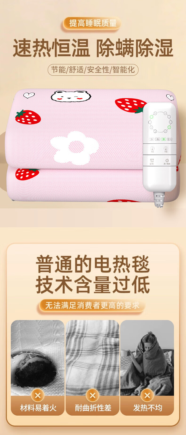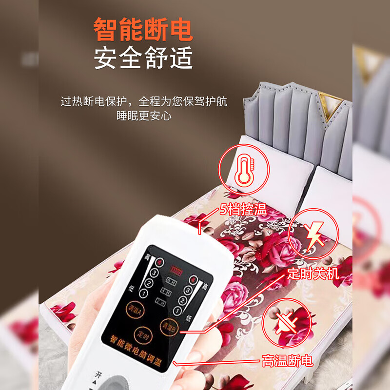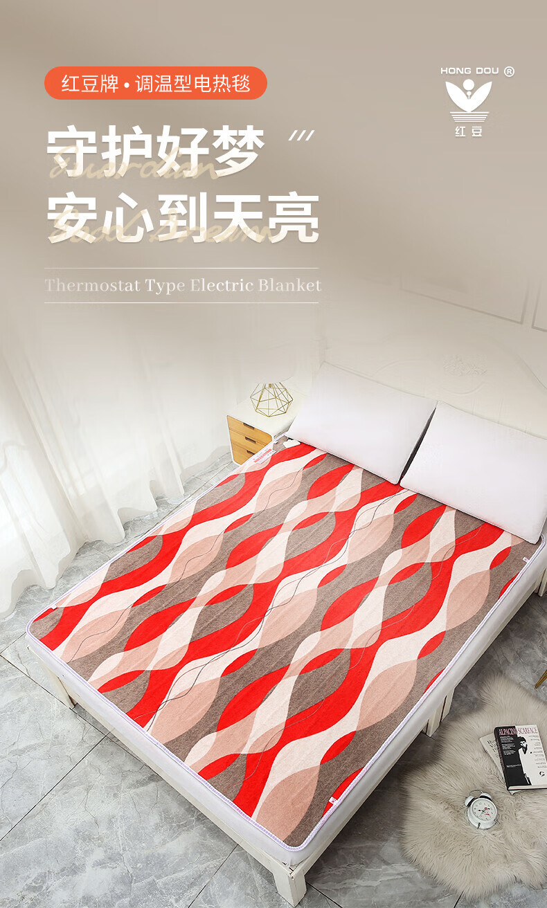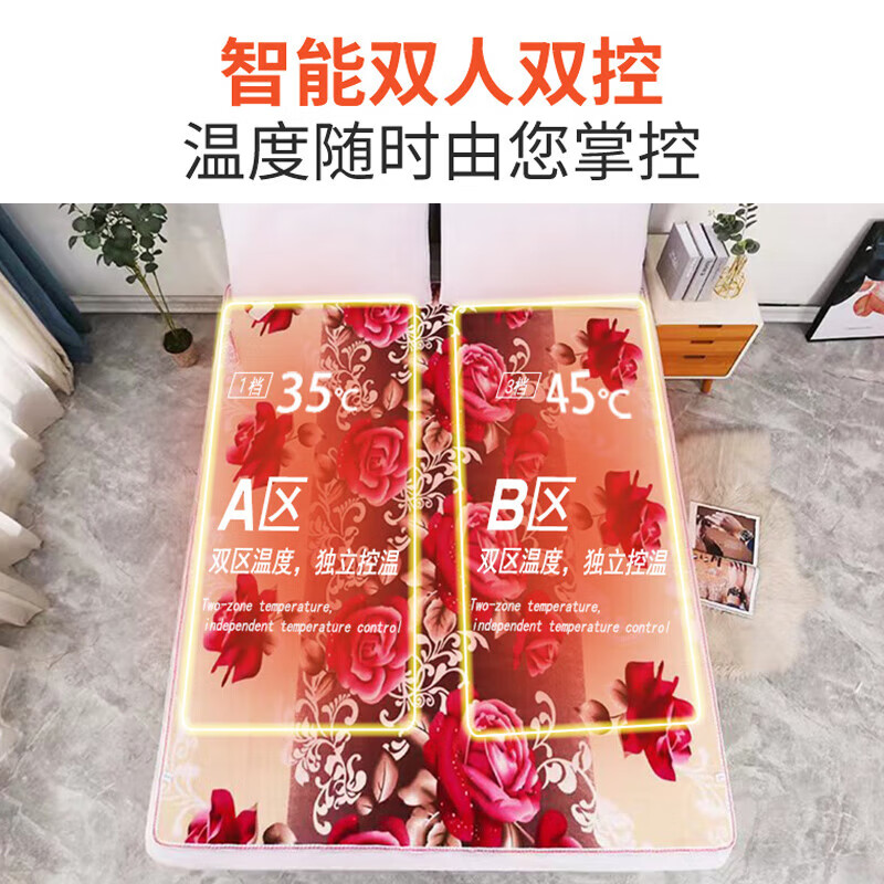 红豆电热毯安全智能定时双控调温双人电褥子加大加厚防水1.8米家用 恐龙150X180cm双人双控智能定时
