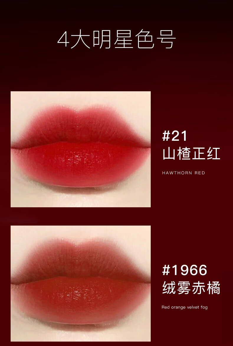 大牌正品圣罗口红中小样不掉色不沾杯持久防水不脱色元旦礼物2.2g 1966#绒雾赤橘