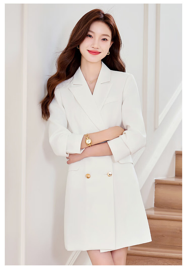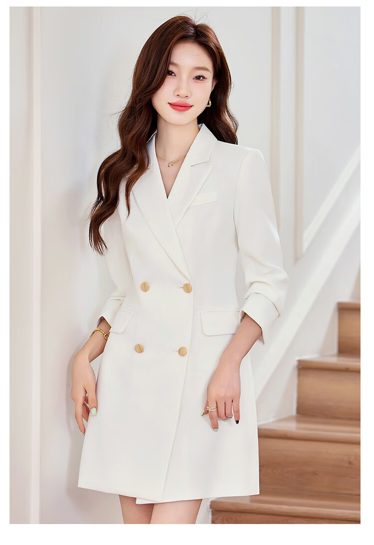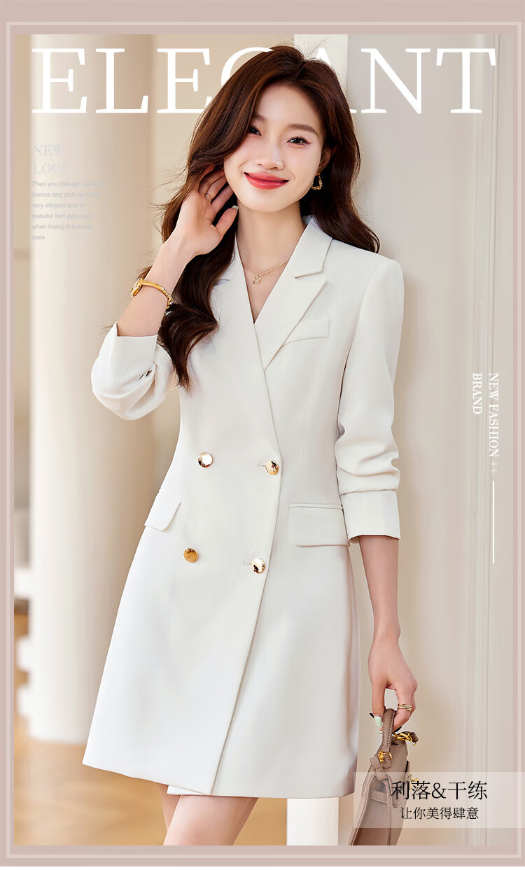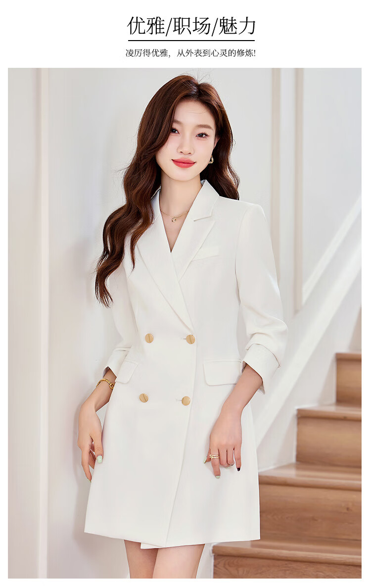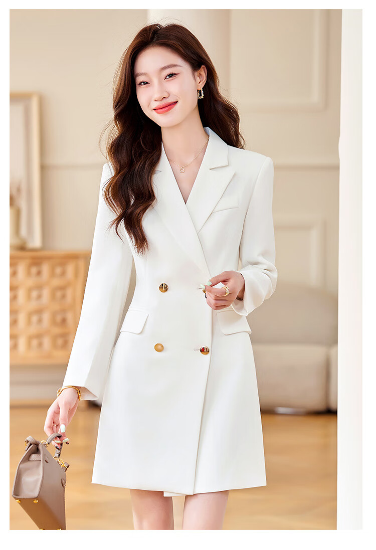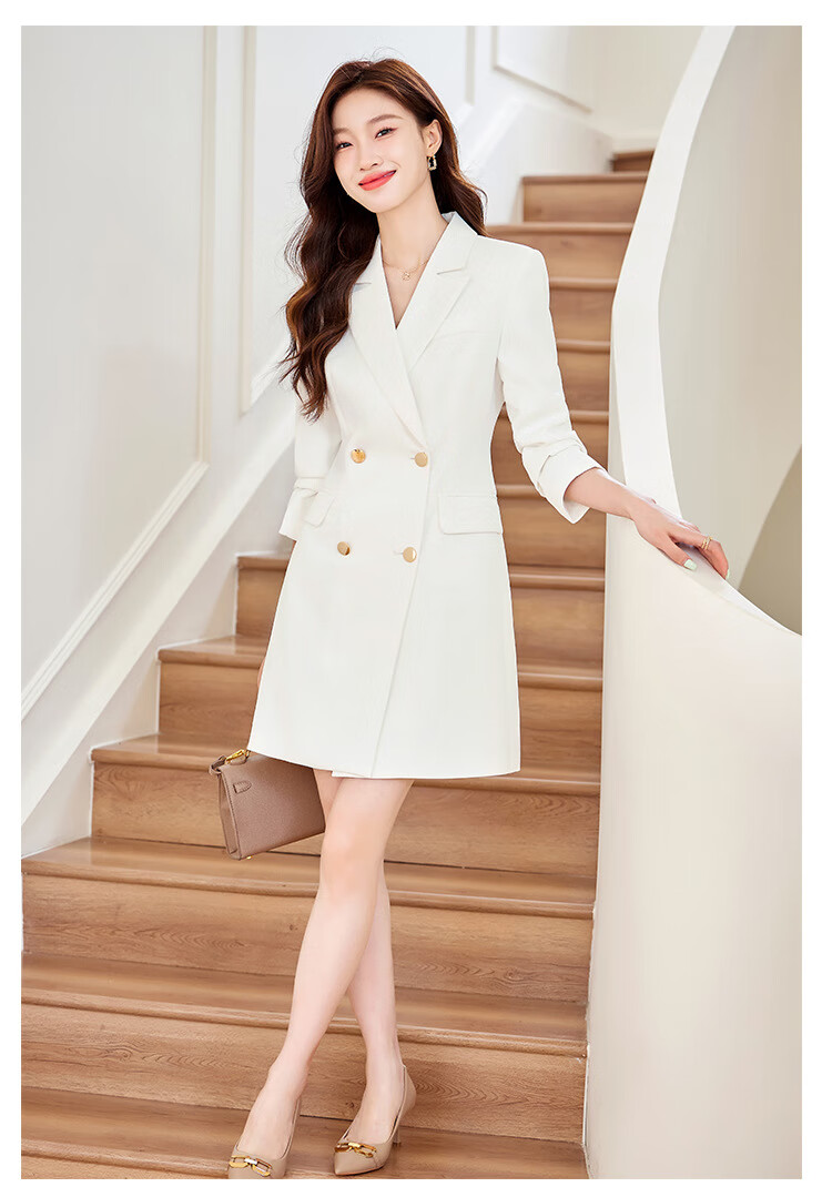 法士隆白色西装连衣裙女春秋季新款职业装气质通勤正装女神范连衣裙 白色连衣裙 S