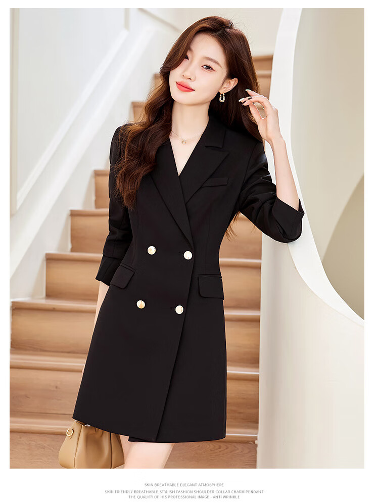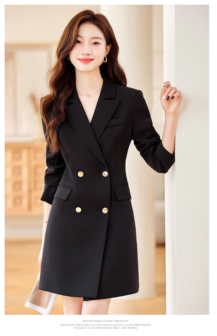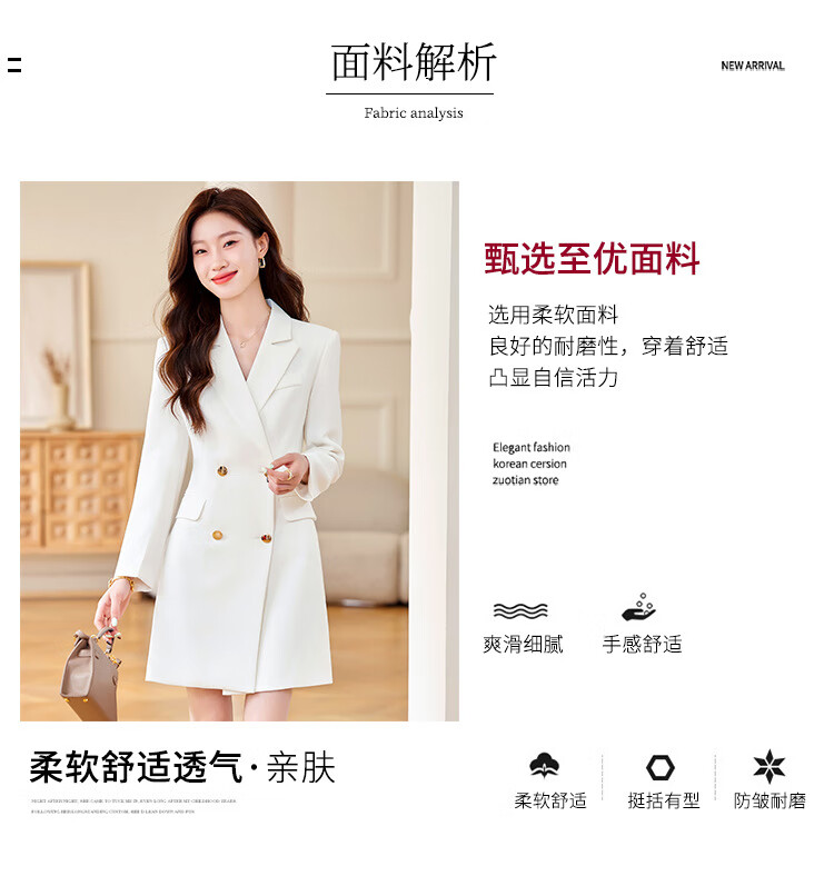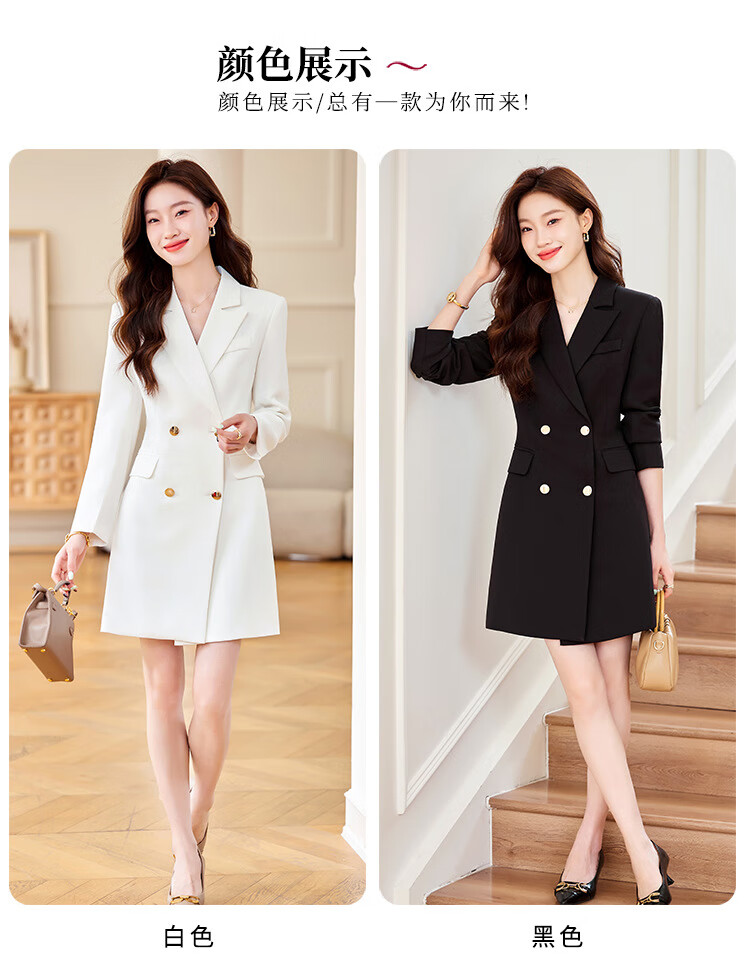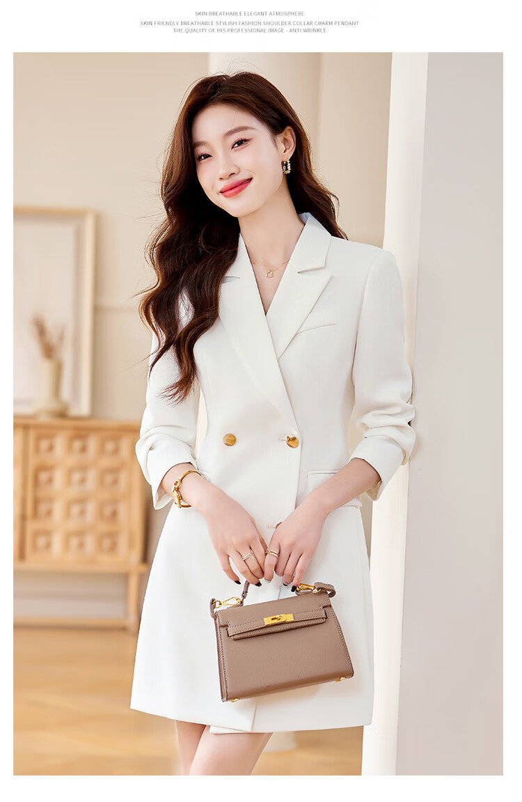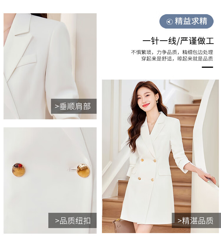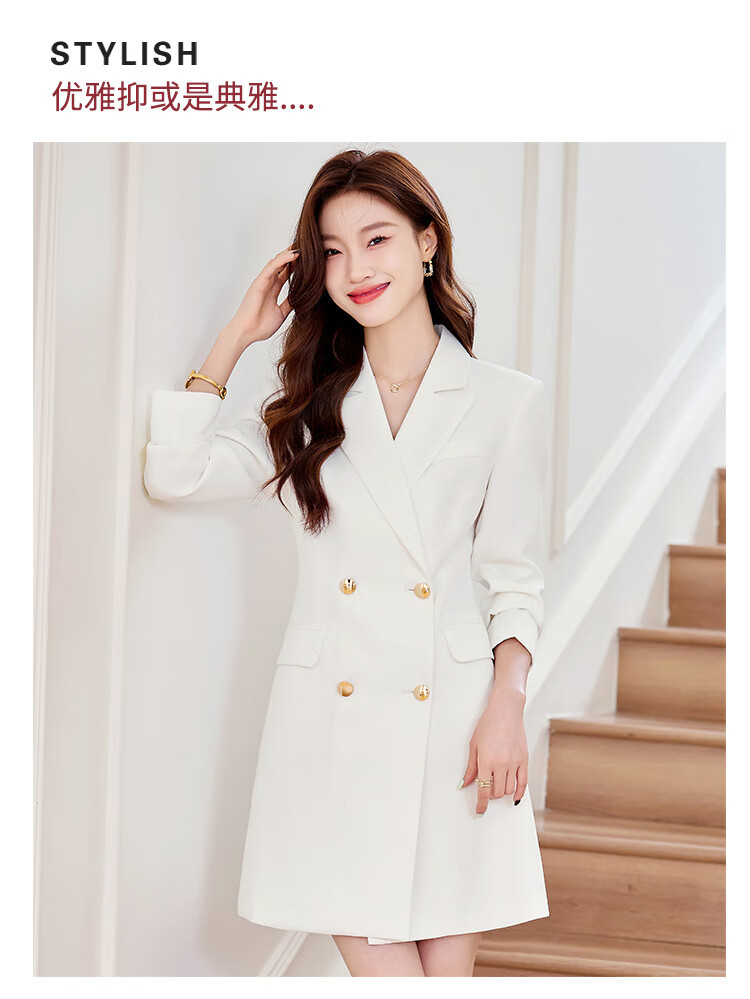 法士隆白色西装连衣裙女春秋季新款职业装气质通勤正装女神范连衣裙 白色连衣裙 S