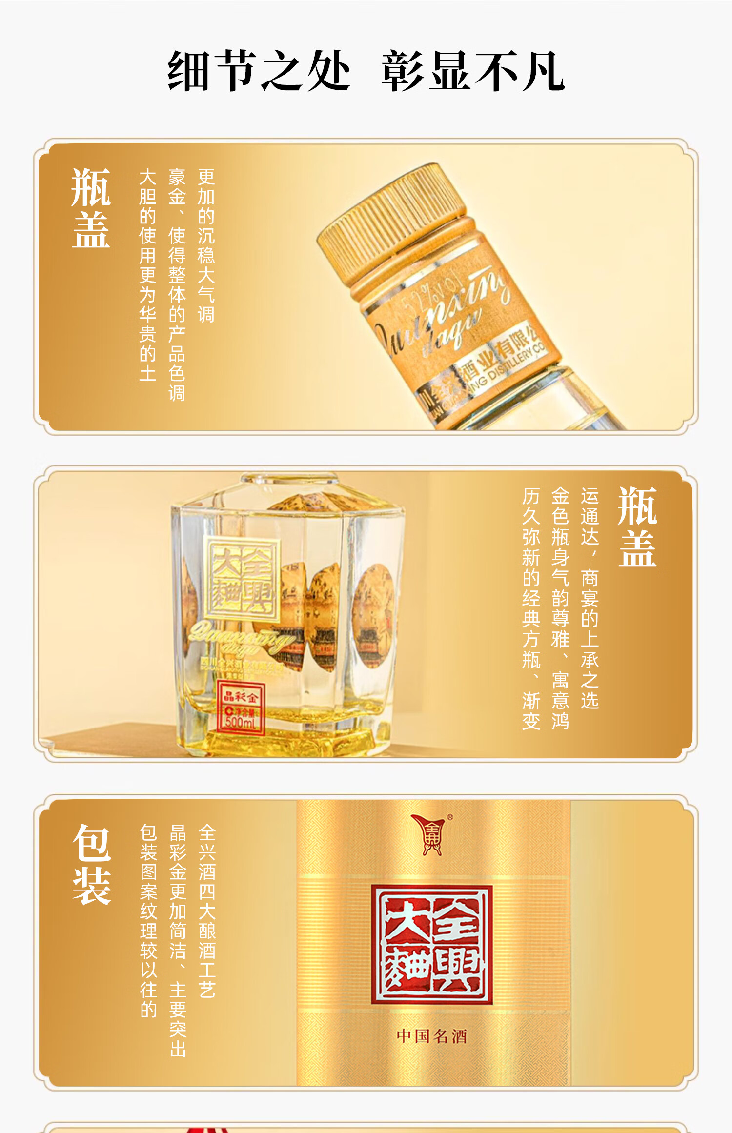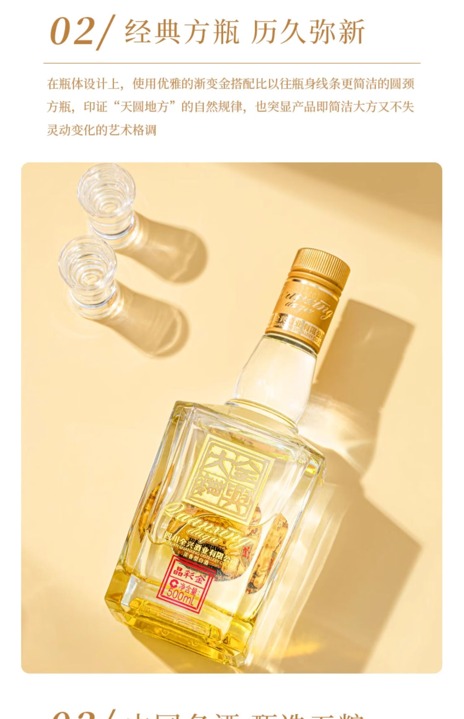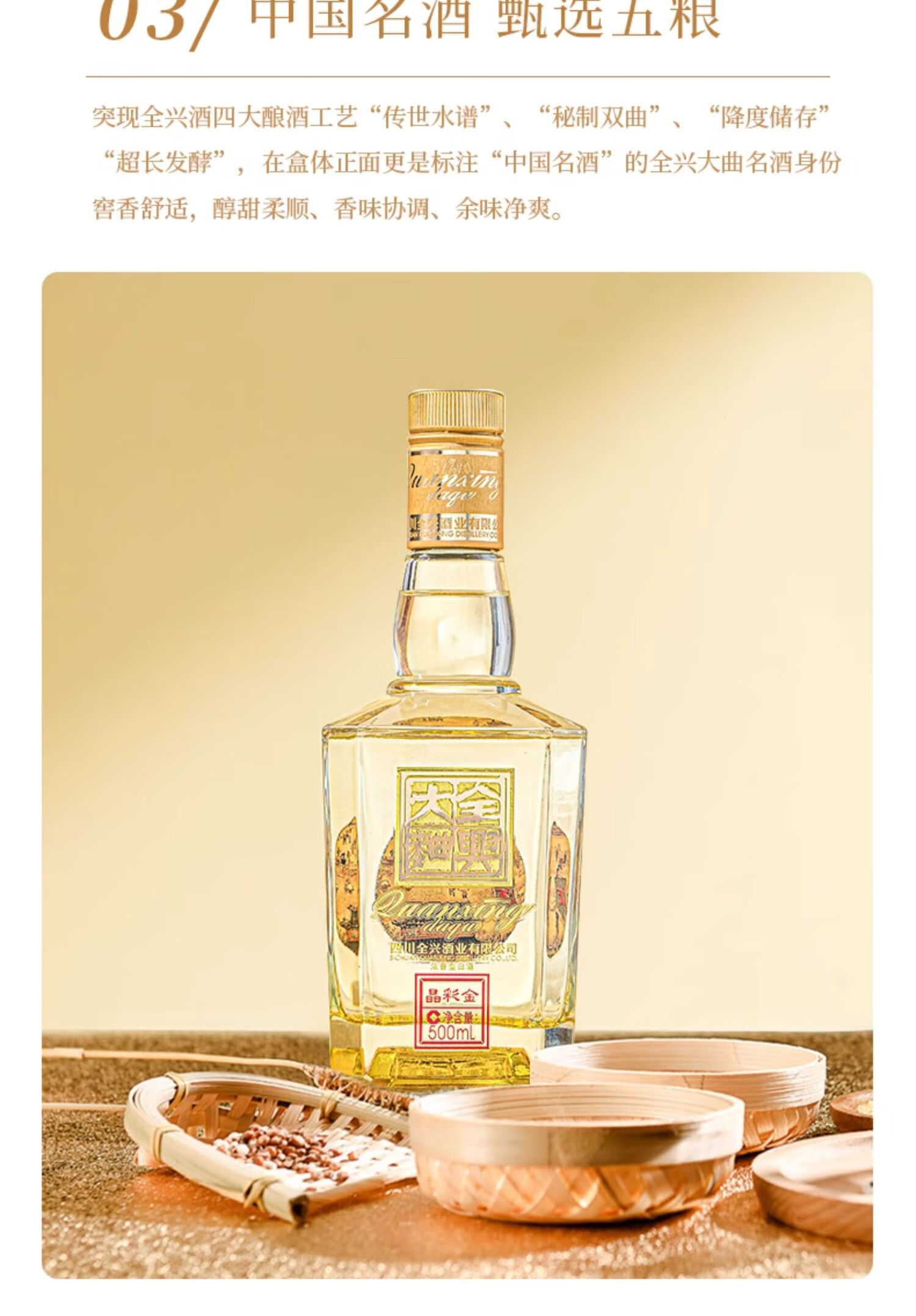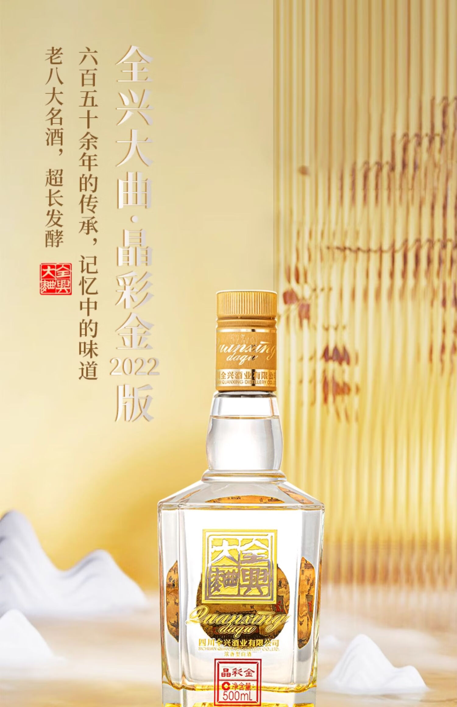 全兴【老八大名酒】全兴大曲52度晶彩金纯酿浓香型酒水 晶彩金500ml 单瓶装