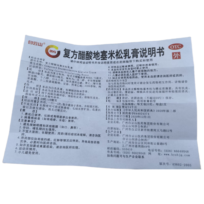 白云山 复方醋酸地塞米松乳膏 20g*1支/盒