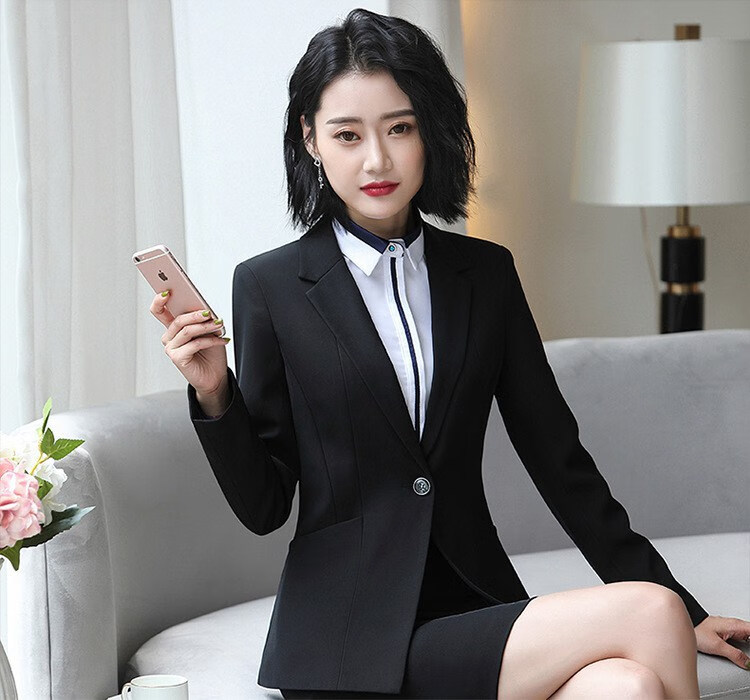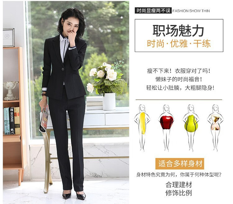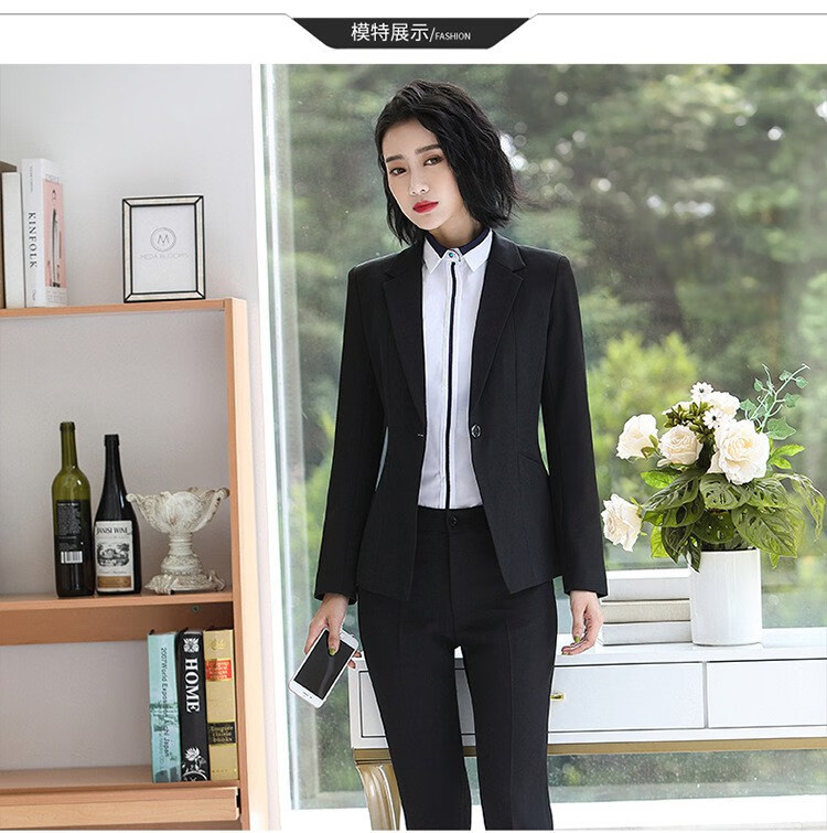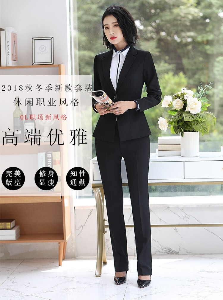 罗蒙(ROMON)轻奢女装小西装女套装2025职业装女套装春秋冬季韩版通勤西服外套 黑外套+黑裤 S