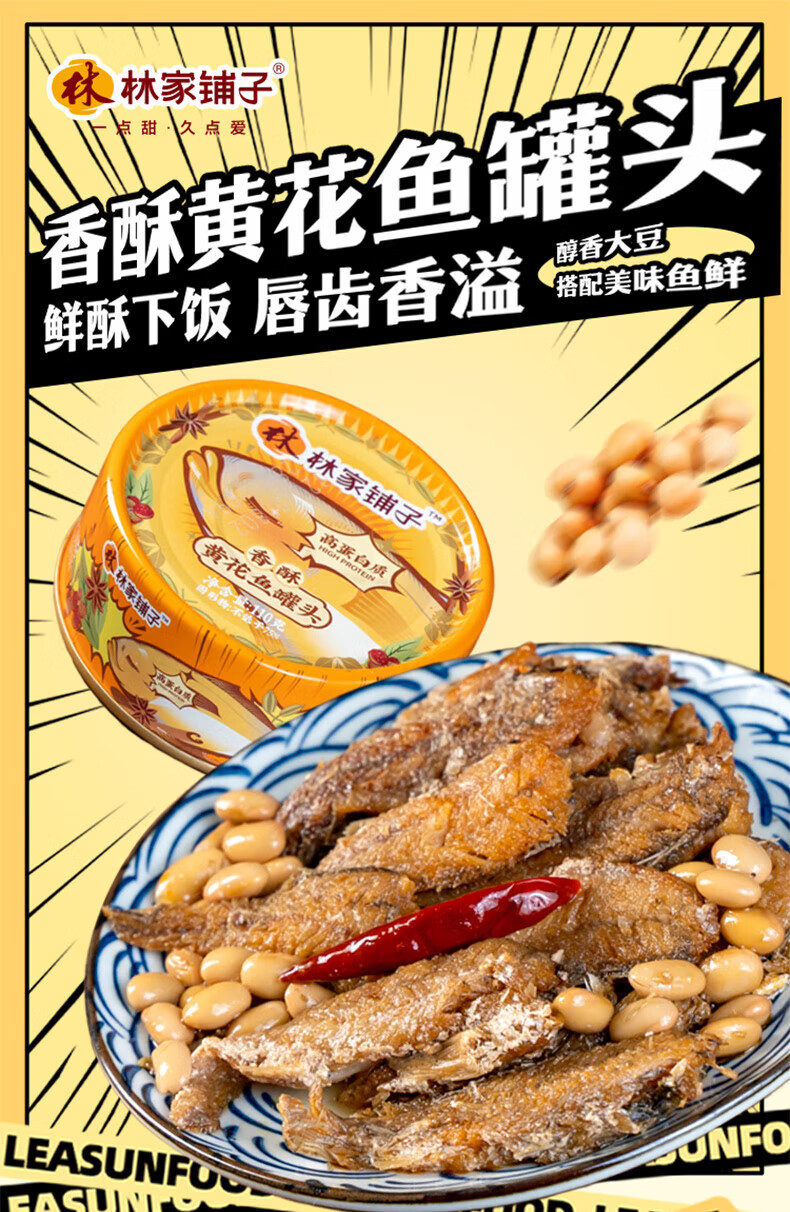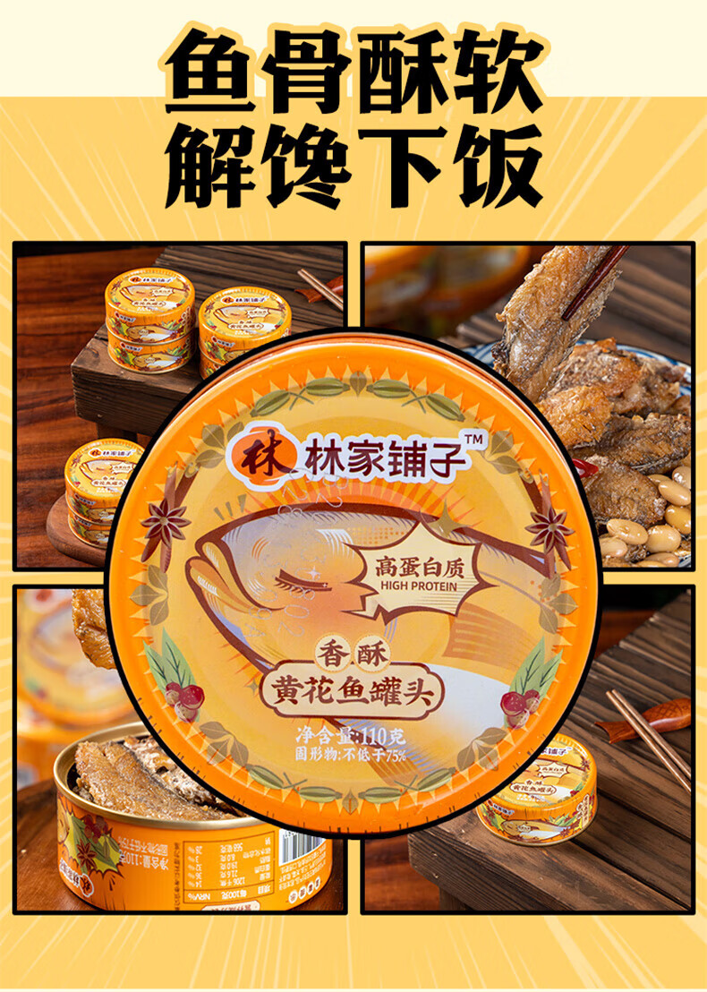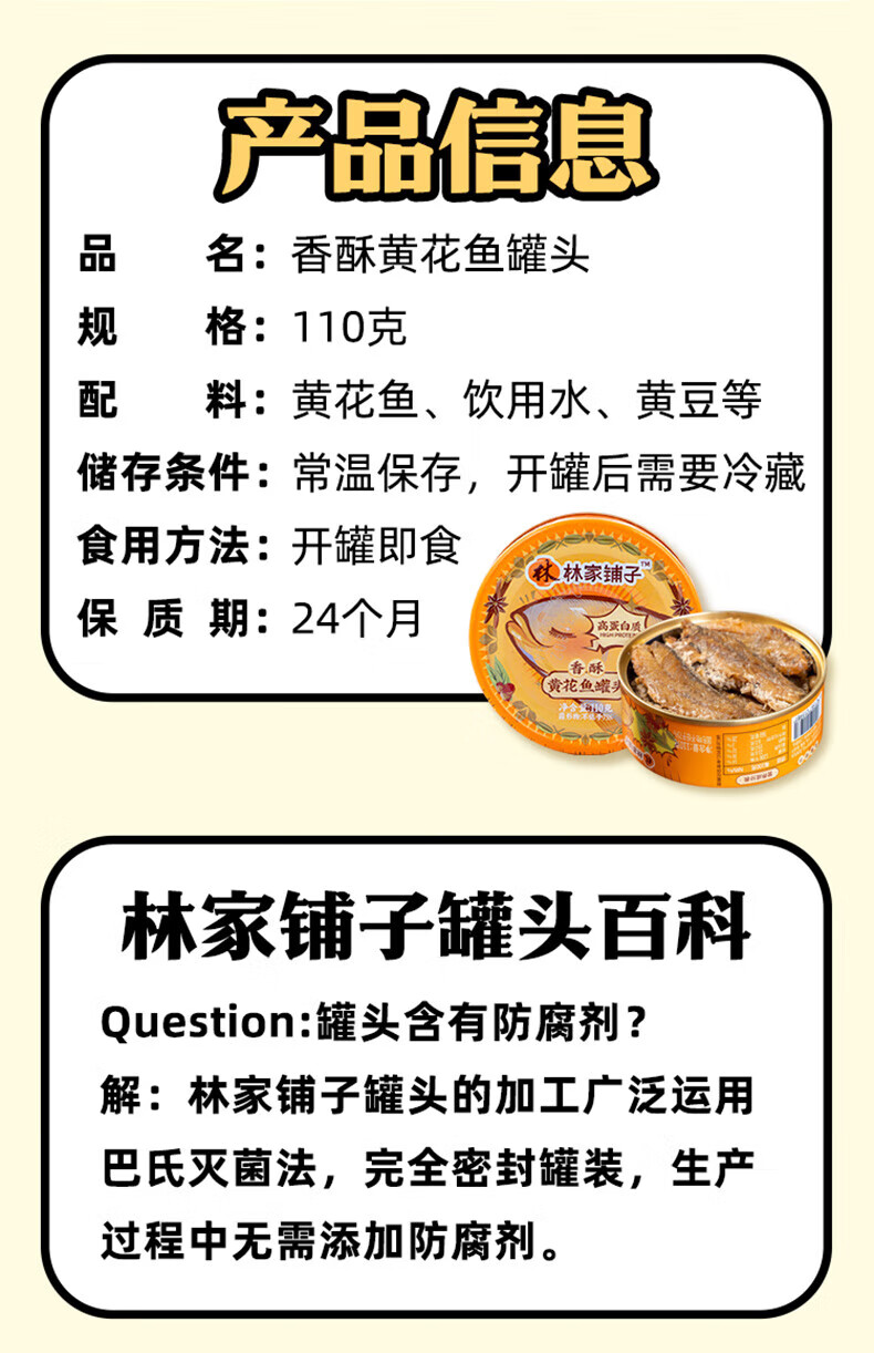 林家铺子香酥黄花鱼罐头 方便食品速食下饭菜 鱼罐头开罐 黄花鱼罐头110g*2罐
