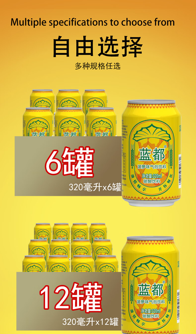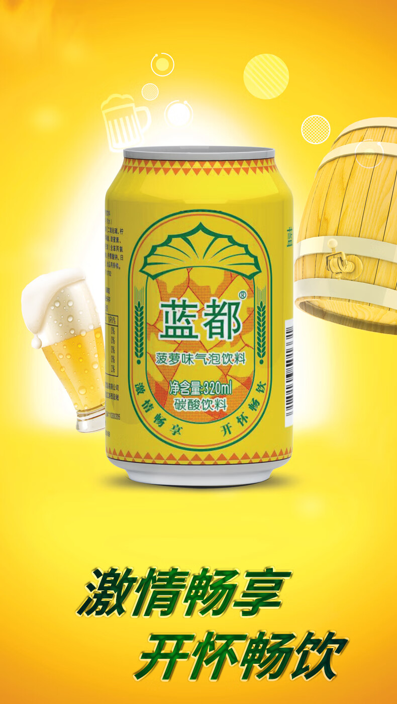 【巨好喝】菠萝啤0酒精碳酸汽水饮料整箱 320ml*12罐