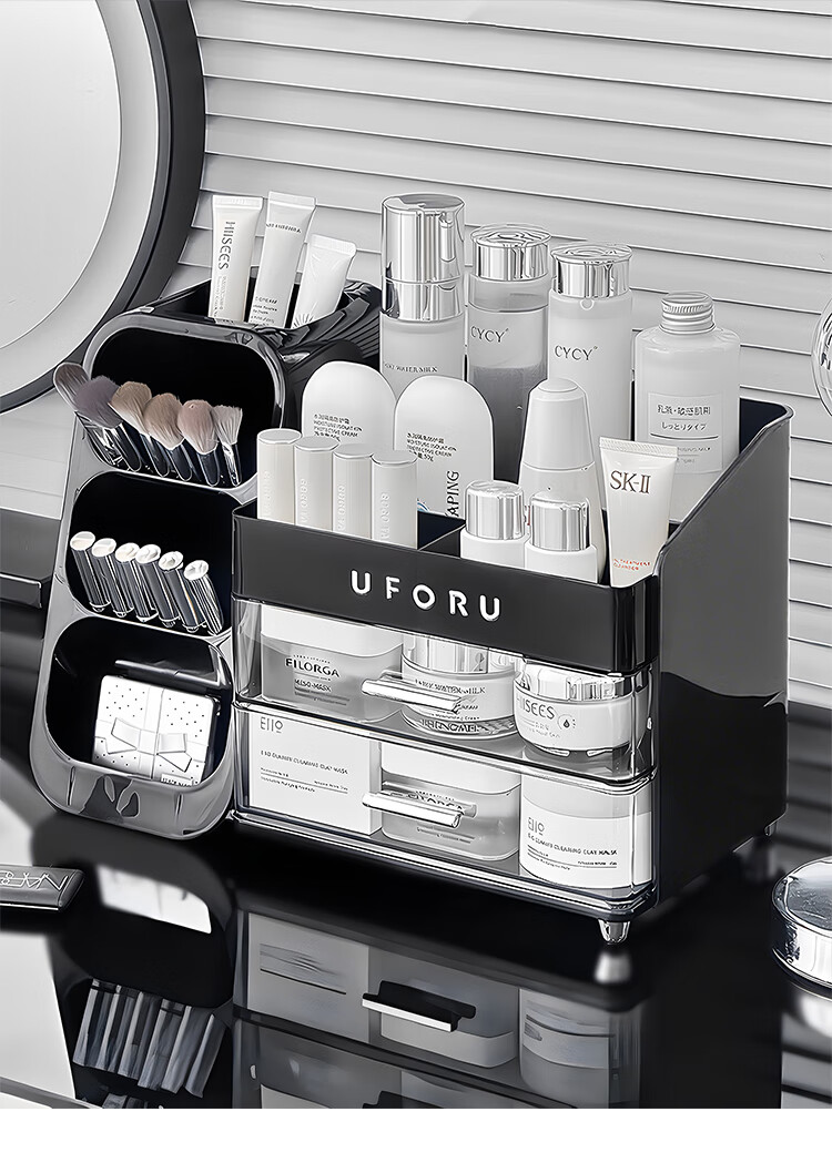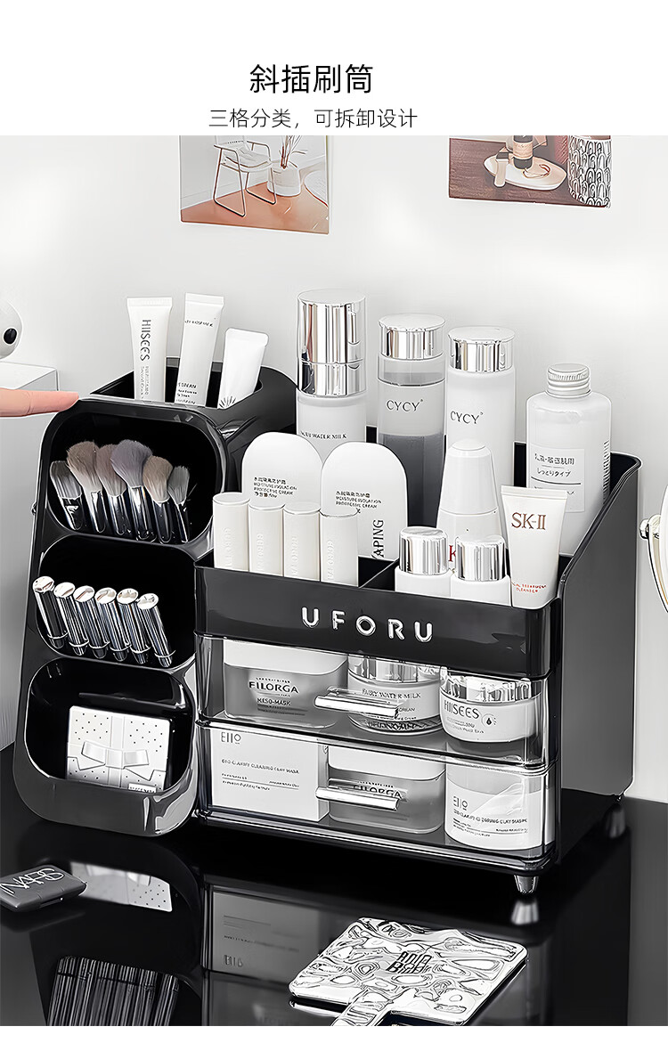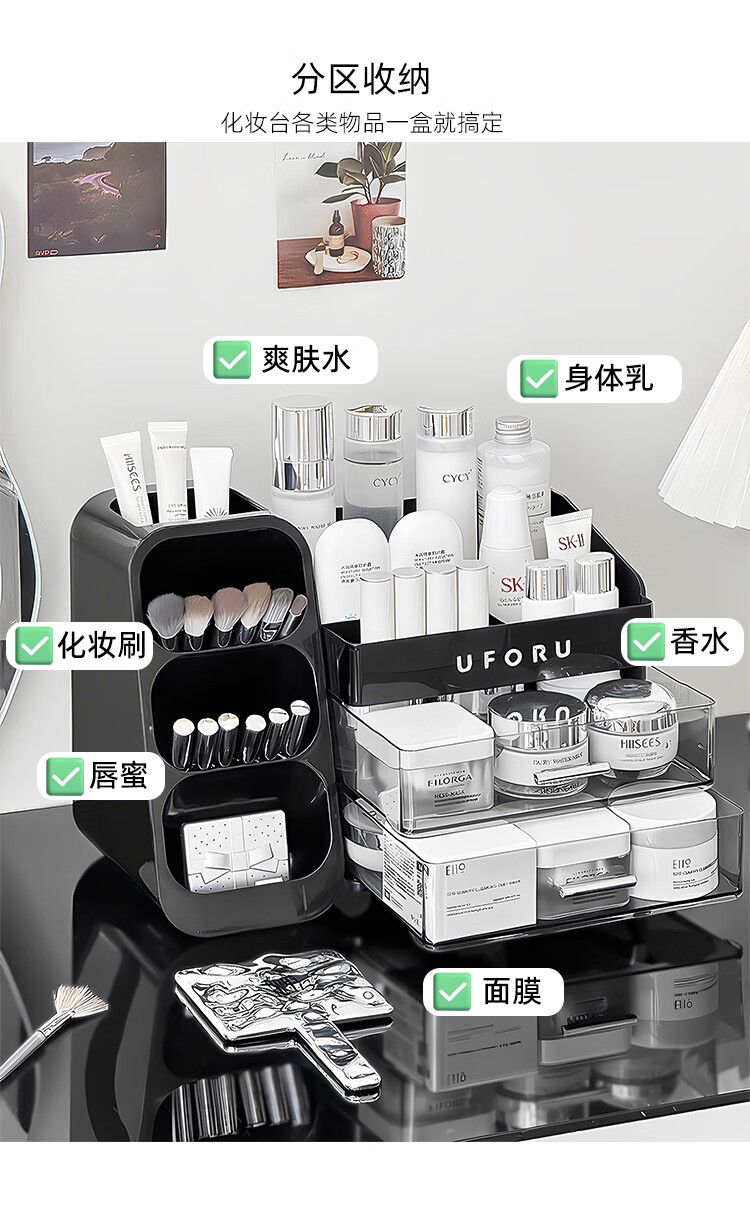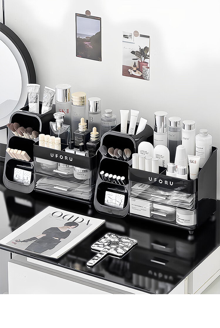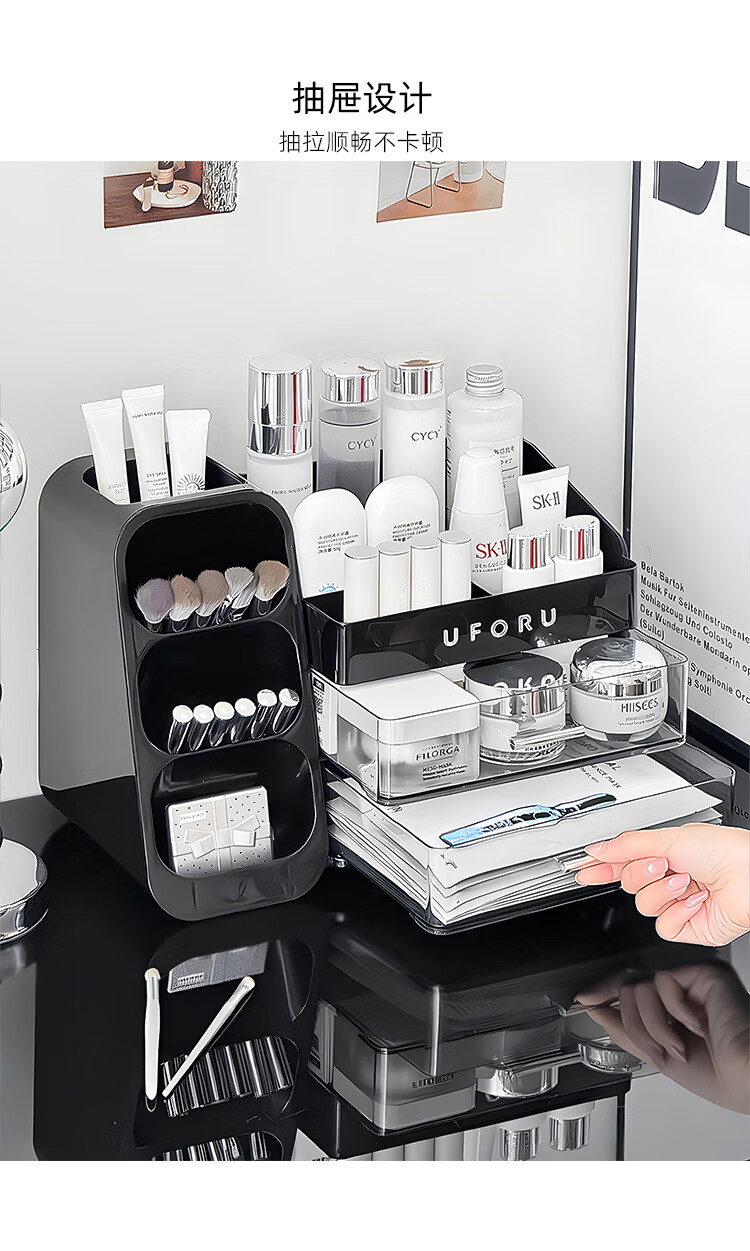 EACHY化妆品收纳盒大容量桌面高级感护肤品多功能抽屉式口红盒-黑色