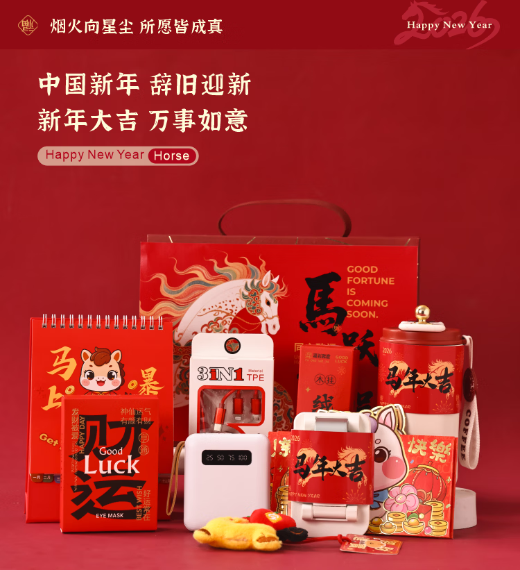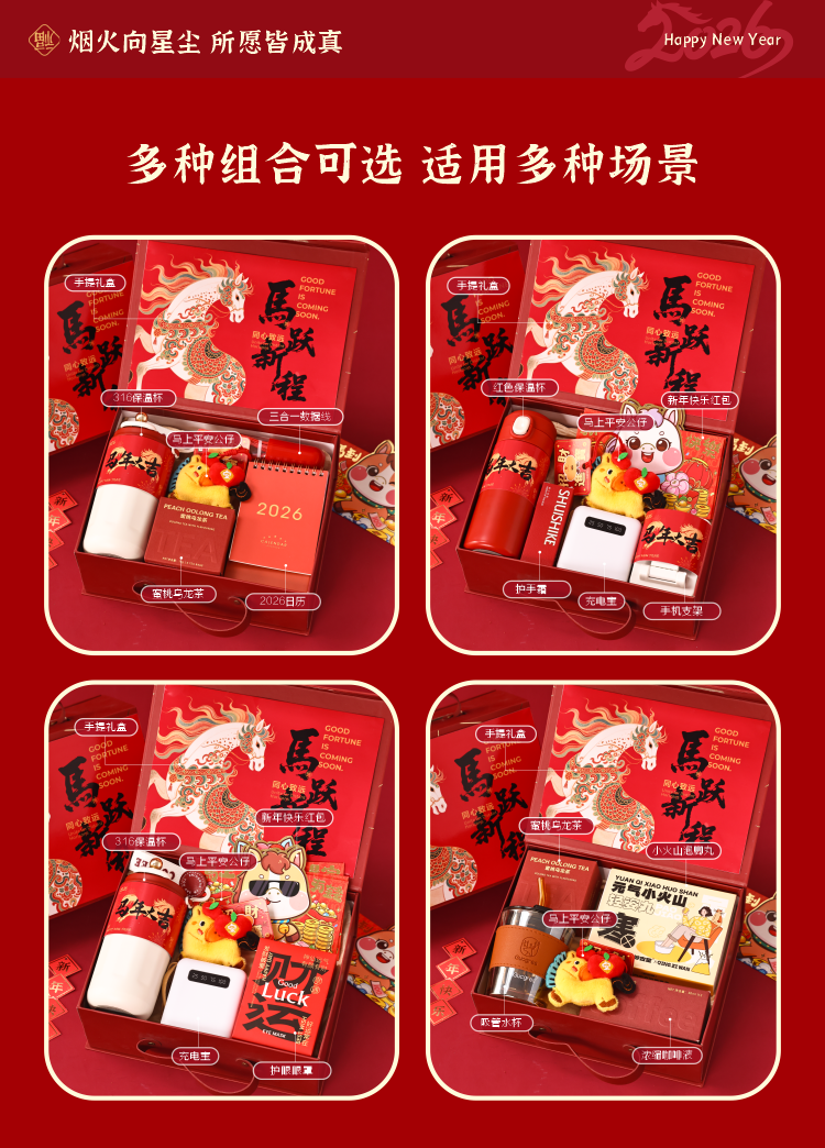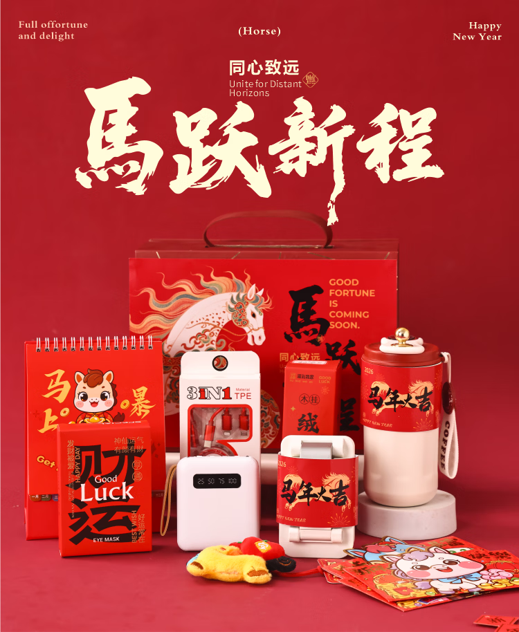 爱美礼新年礼物公司年会伴手礼盒实用礼品送员工周年庆纪念品保温杯定制 新年马跃新程伴手礼套装1(可定制)