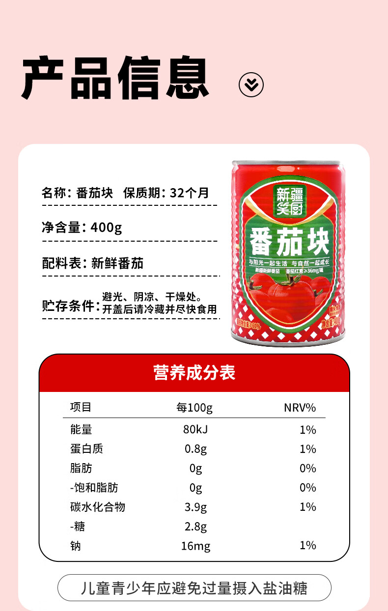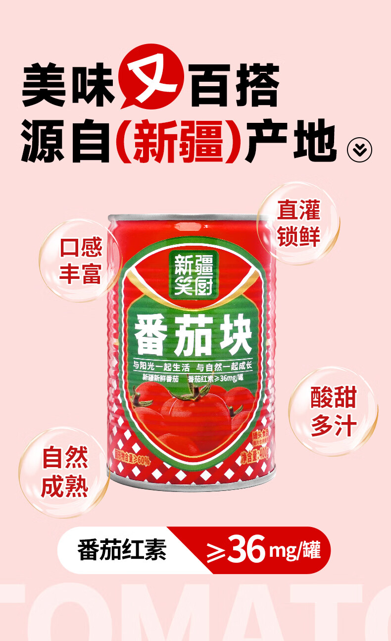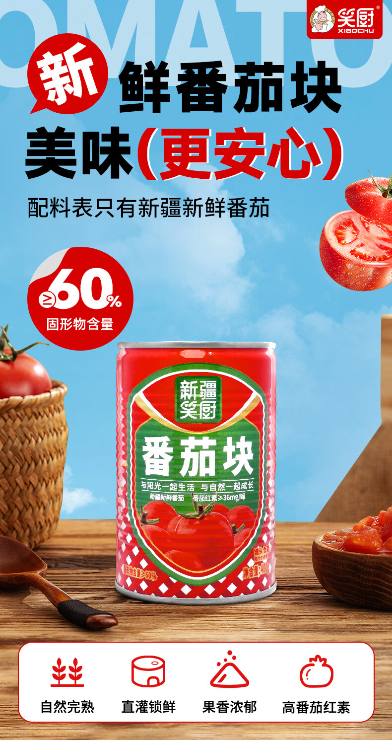 笑厨(XIAOCHU)25年/新疆番茄块400g*1罐装配料新鲜西红柿块0添加剂调味番茄罐头