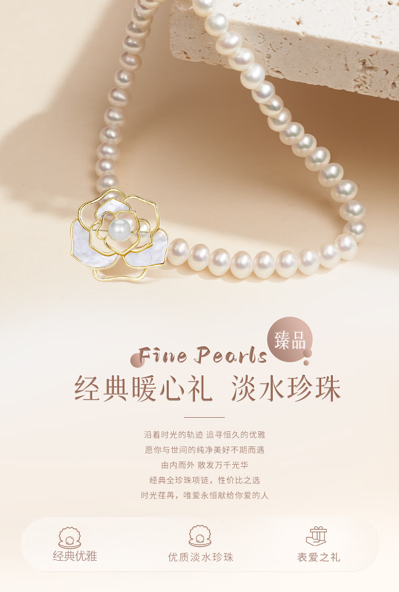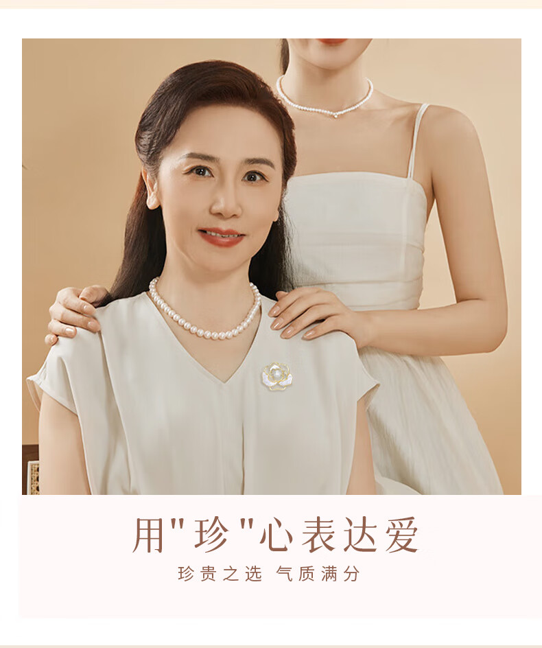 ALLOVE天然淡水珍珠项链妈妈款吊坠情人节生日礼物送母亲长辈婆婆实用礼