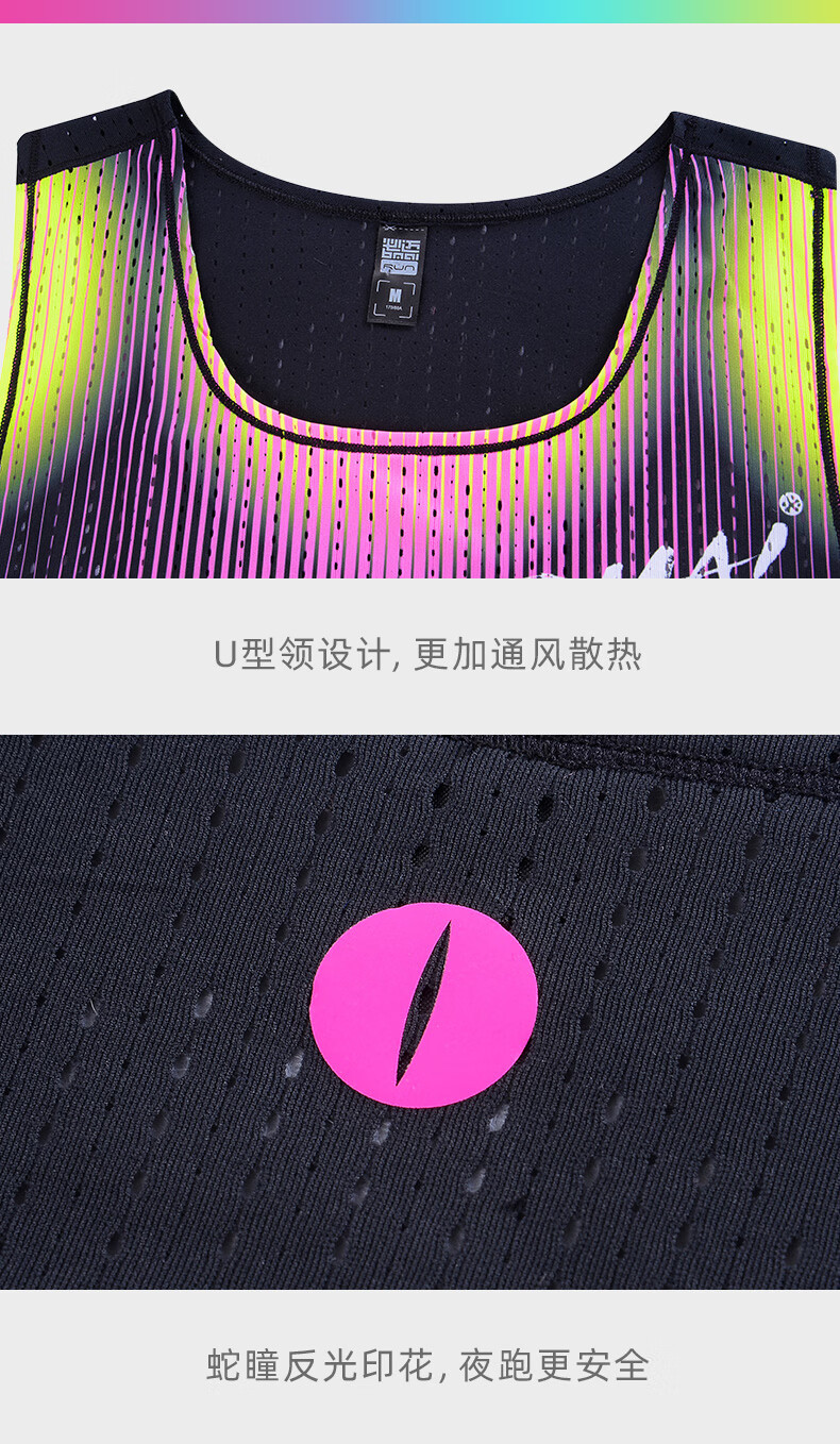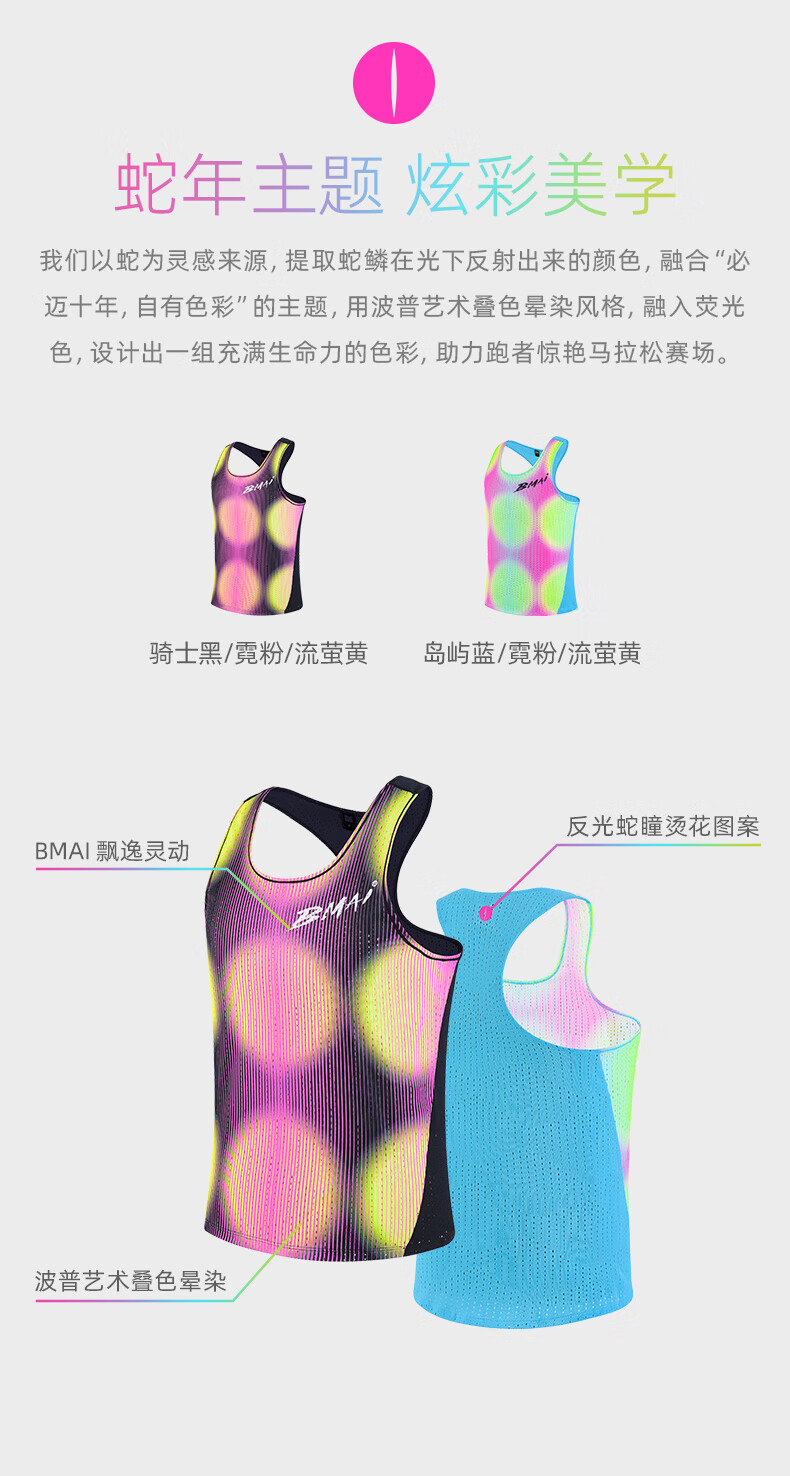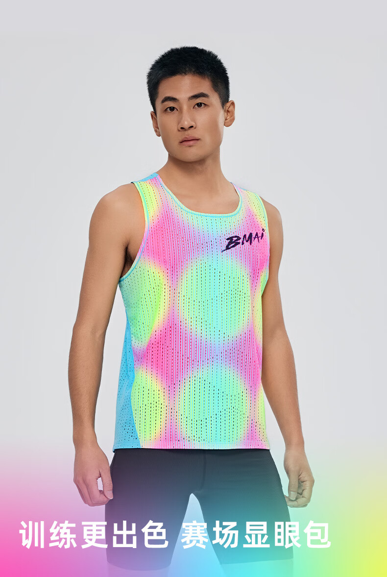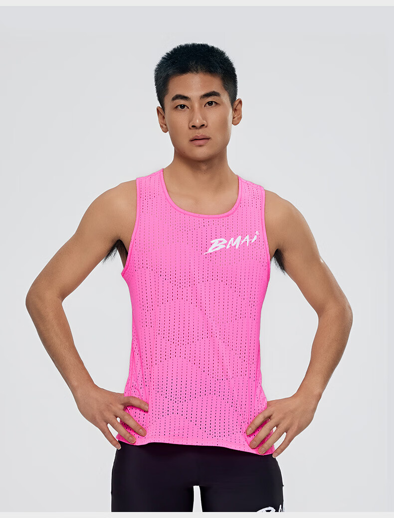 必迈(bmai)新款跑步竞速背心速干透气马拉松跑步训练健身运动背心 骑士黑/霓粉/流萤黄 男 L