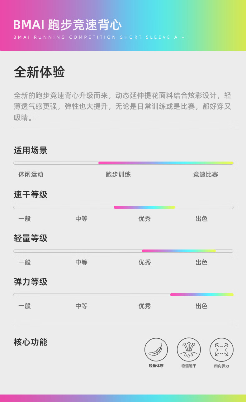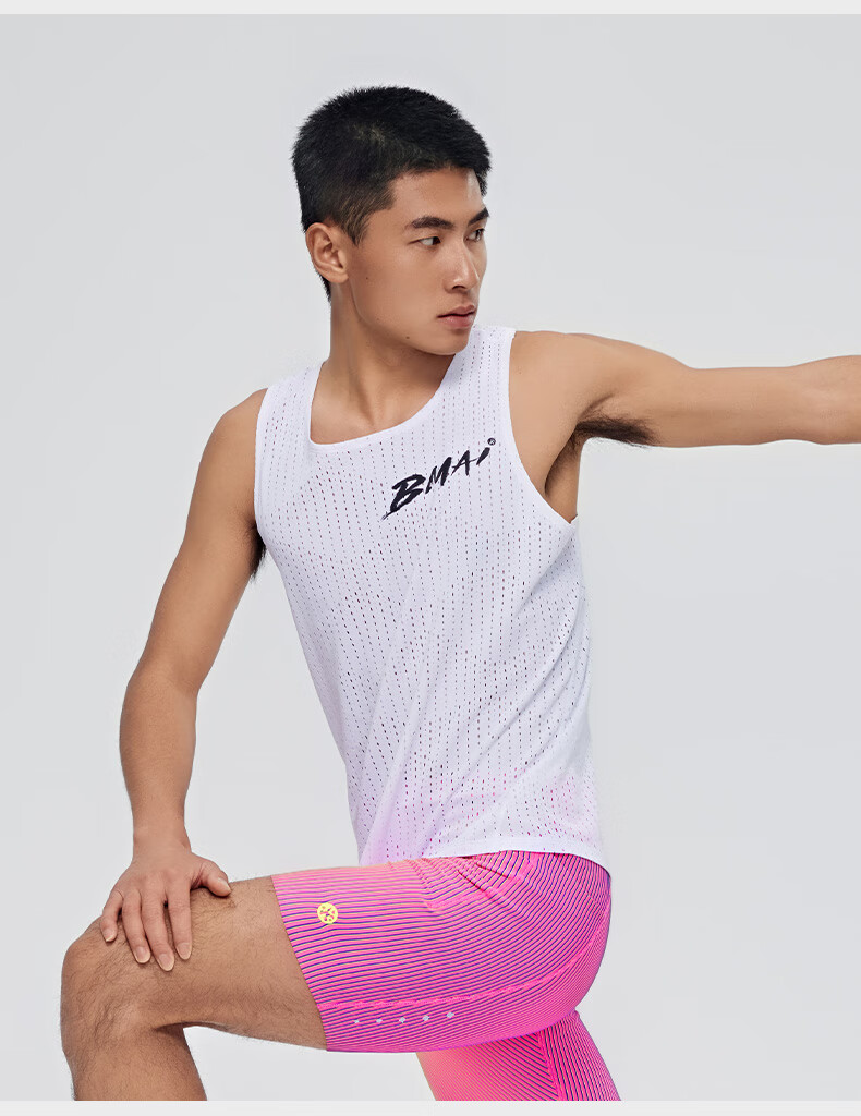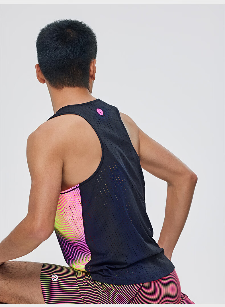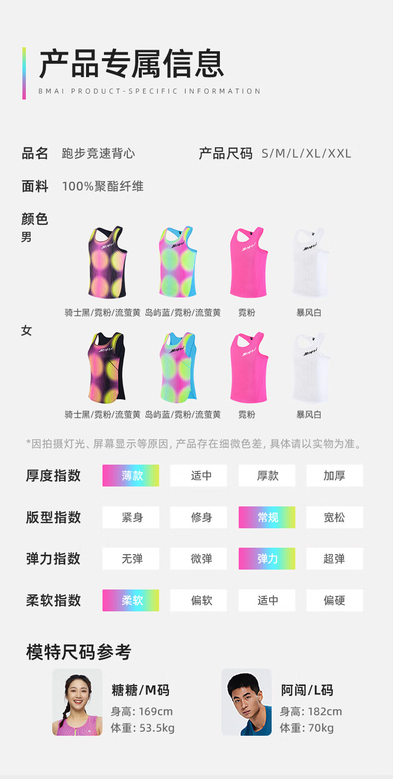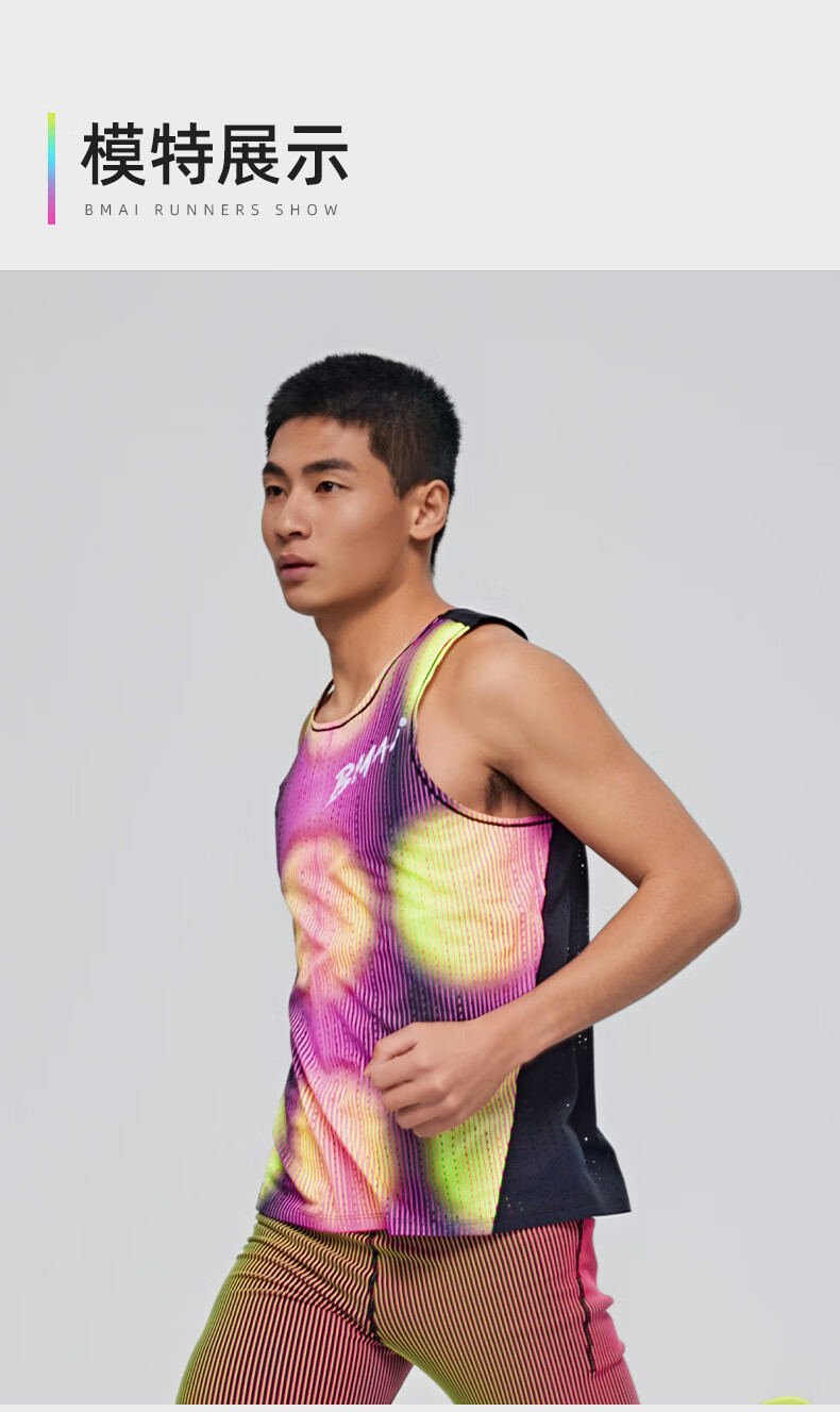 必迈(bmai)新款跑步竞速背心速干透气马拉松跑步训练健身运动背心 骑士黑/霓粉/流萤黄 男 L