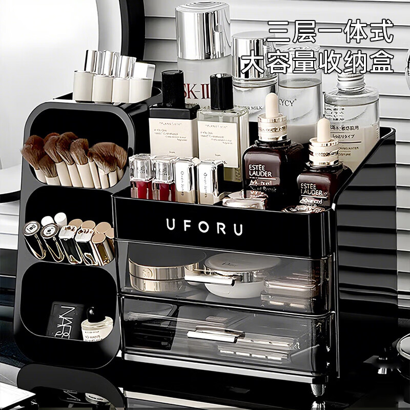 EACHY化妆品收纳盒大容量桌面高级感护肤品多功能抽屉式口红盒-黑色