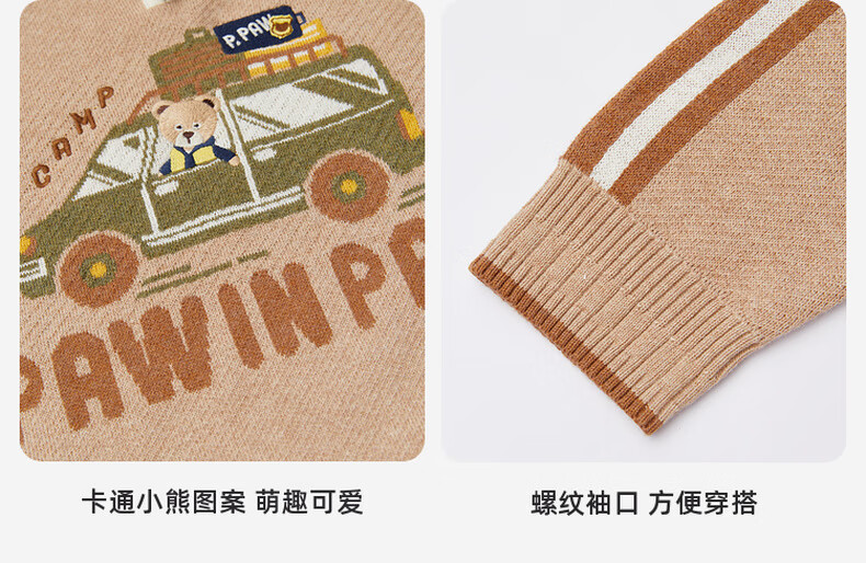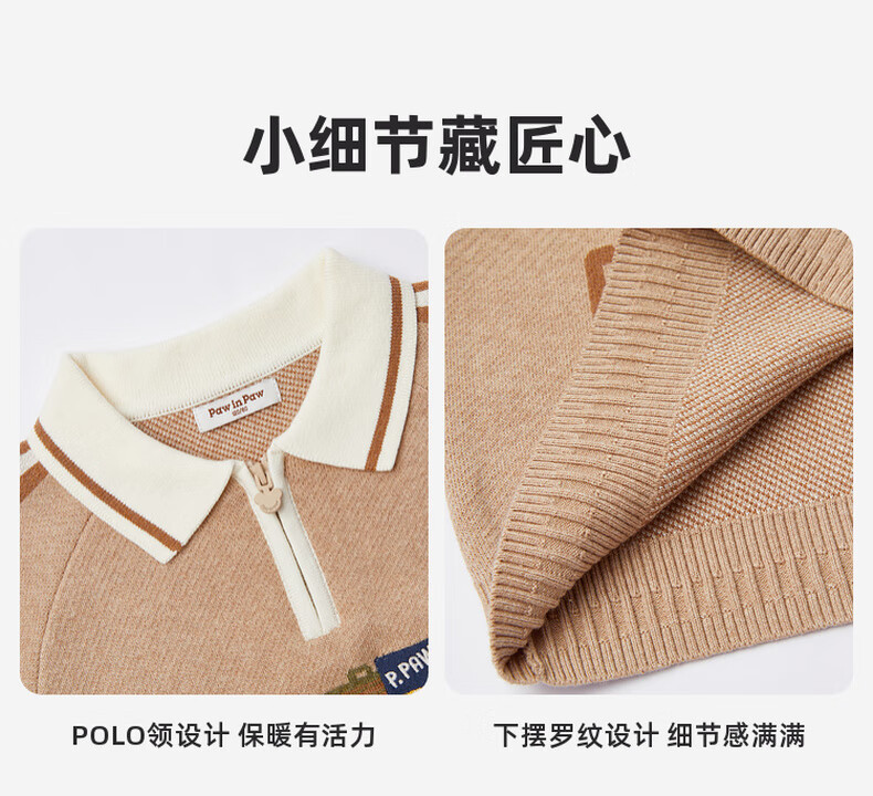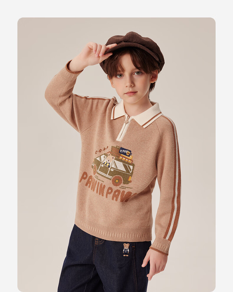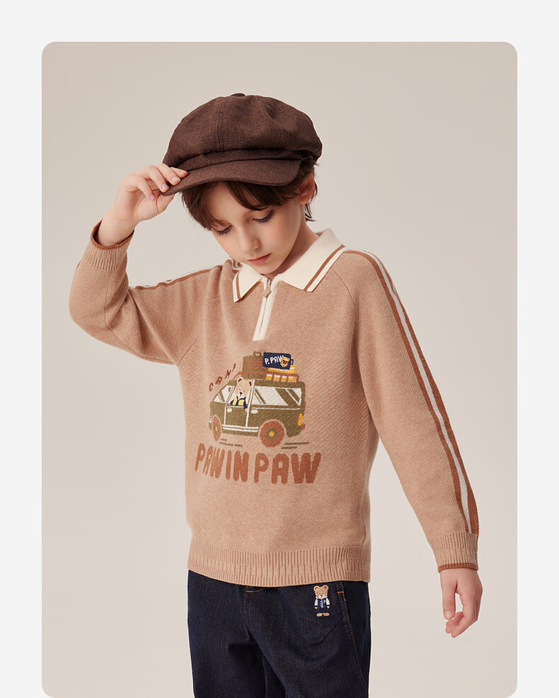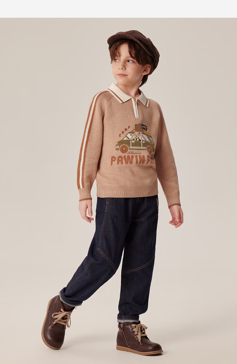 PawinPaw卡通小熊童装秋冬男童经典翻领毛衣舒适百搭 D/Beige深米色/37 150 cm