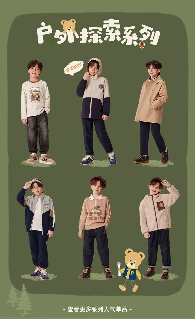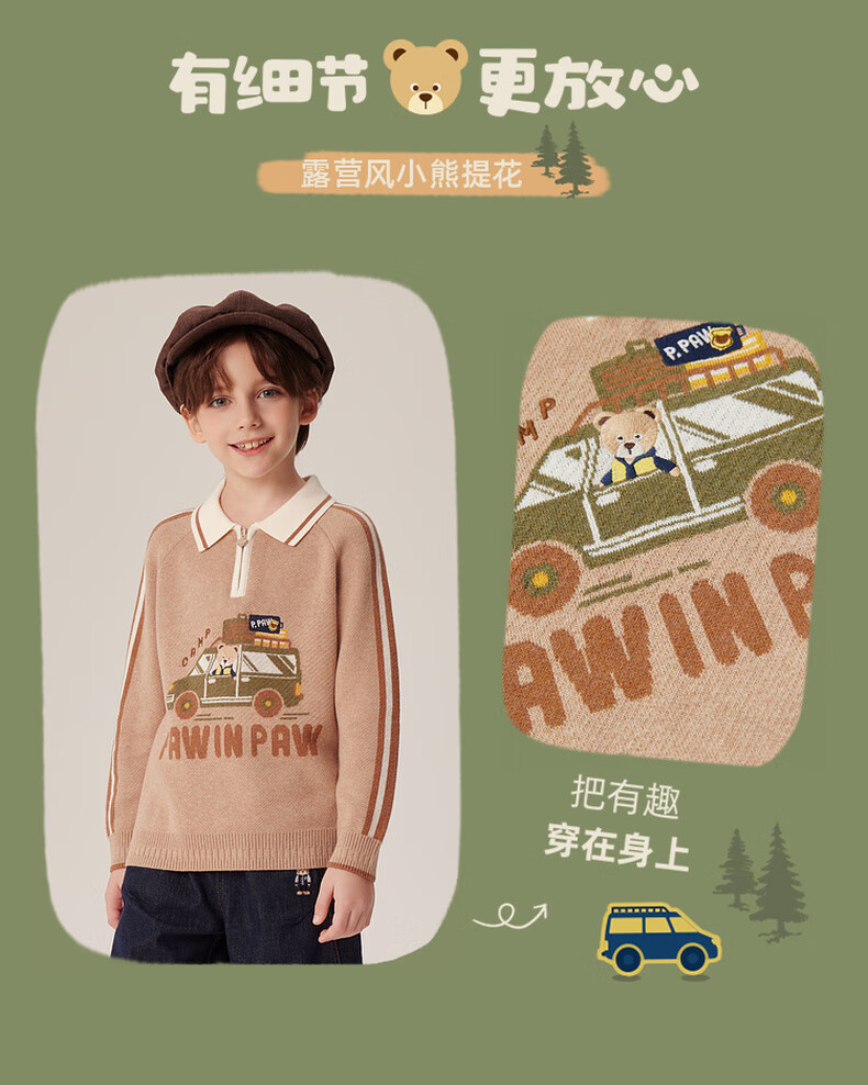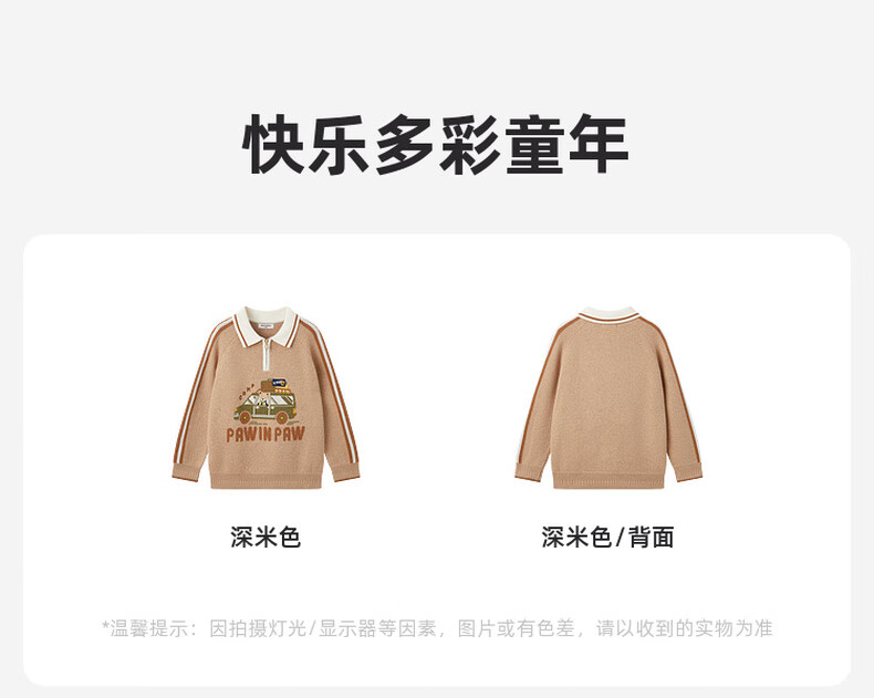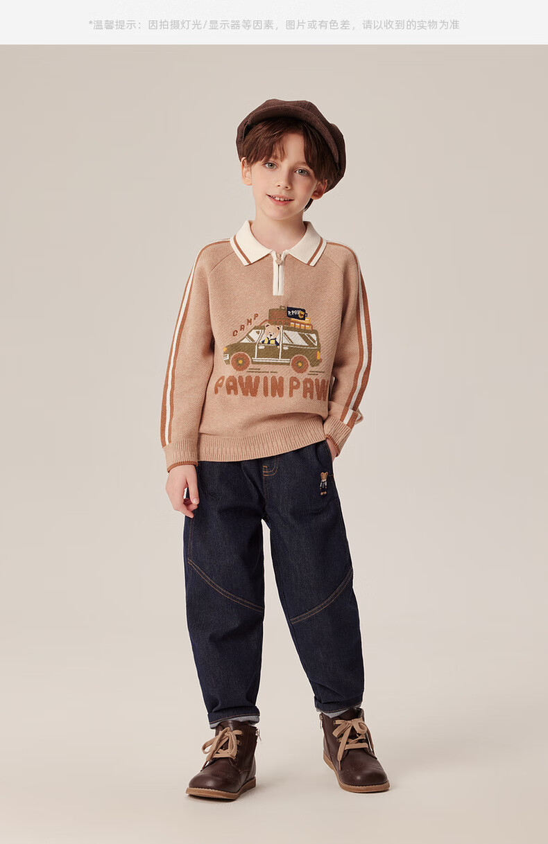 PawinPaw卡通小熊童装秋冬男童经典翻领毛衣舒适百搭 D/Beige深米色/37 150 cm