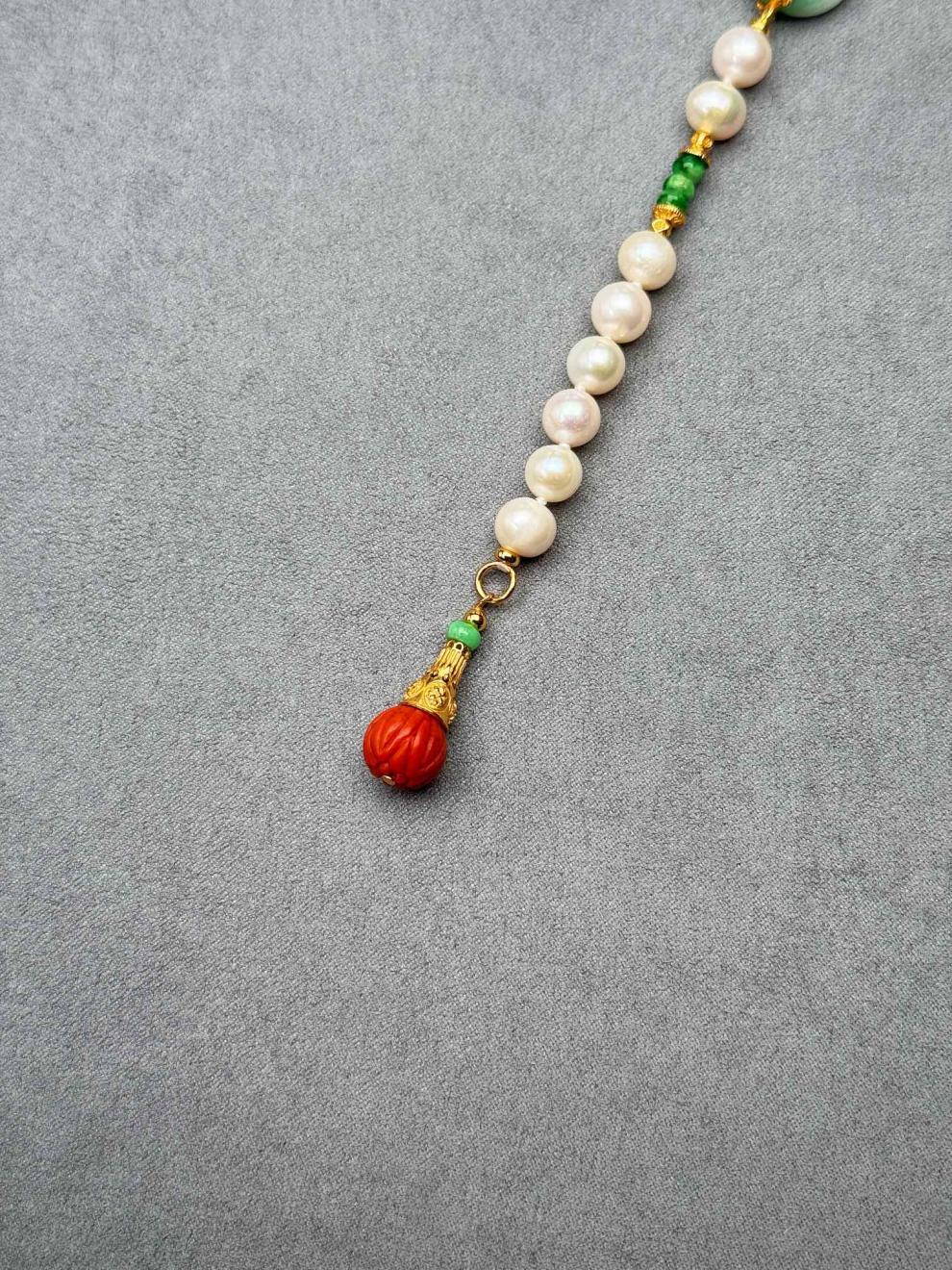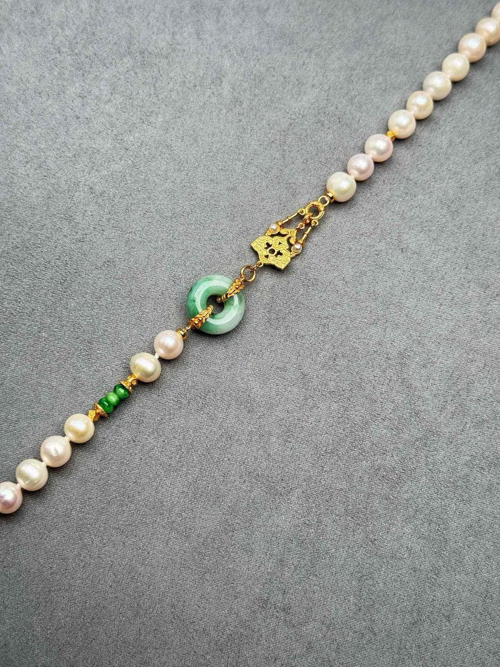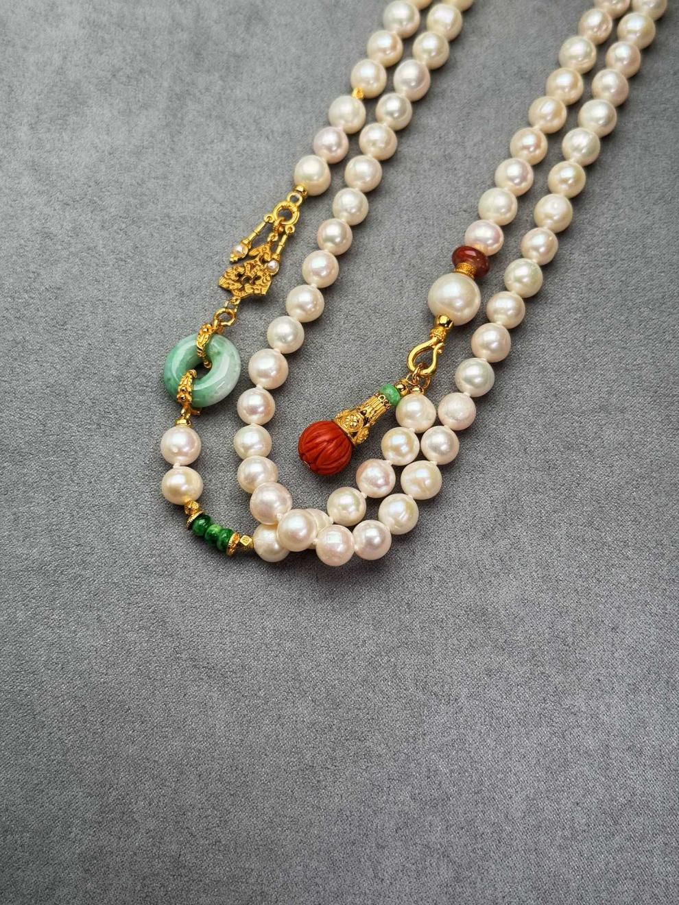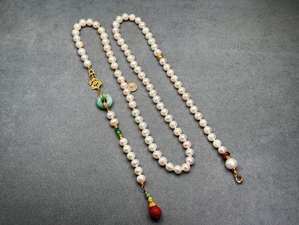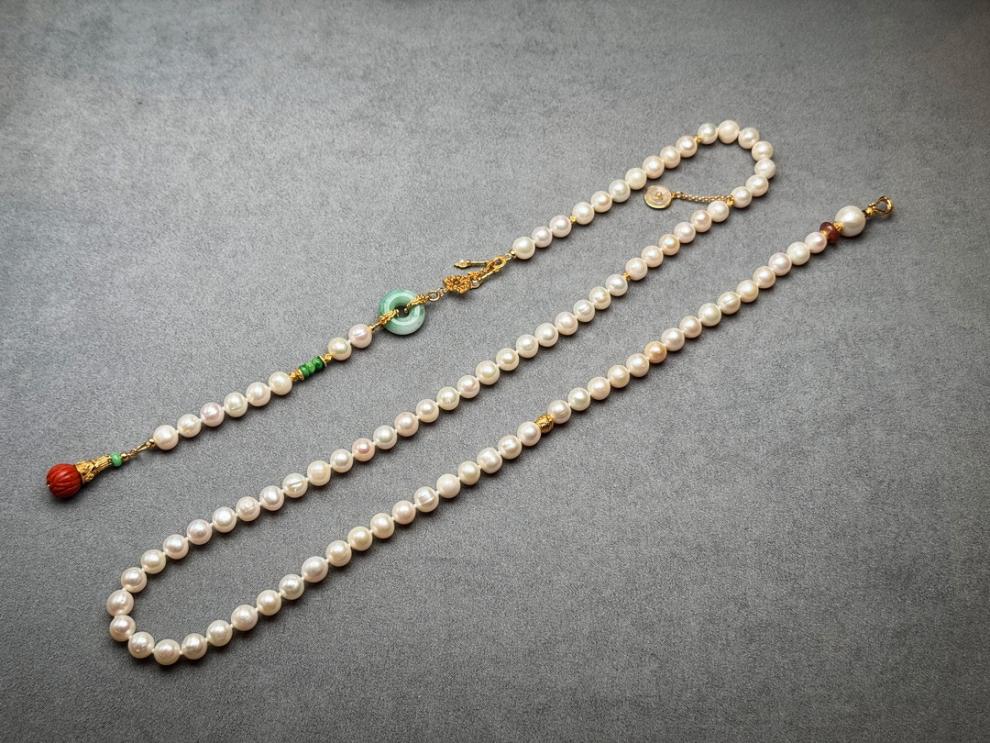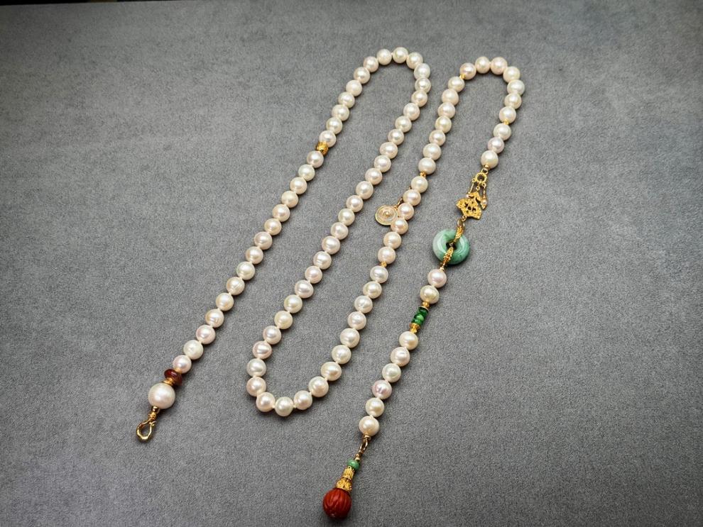 MHFDO淡水珍珠毛衣链长款设计感新中式国风复古a货翡翠平安扣颈 珍珠项链+证书