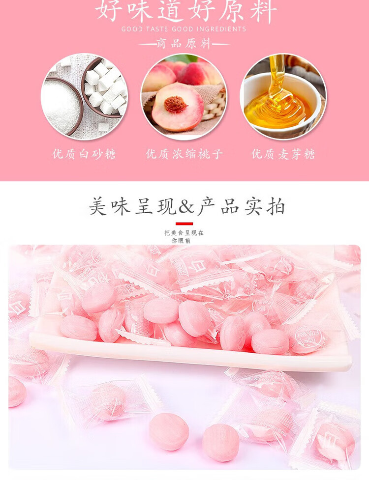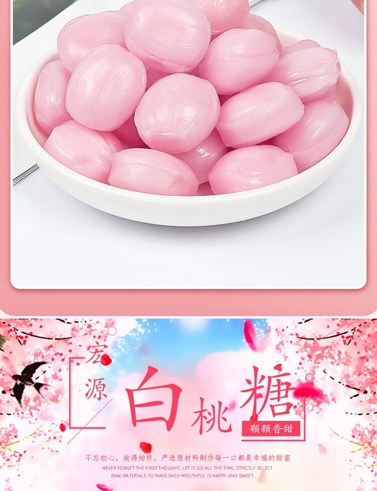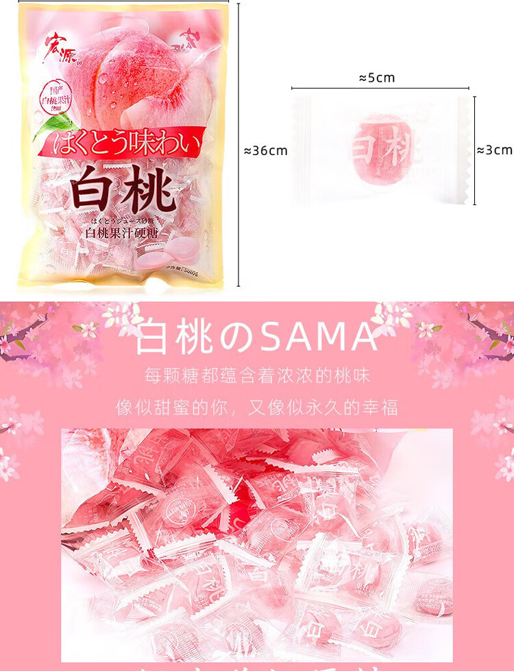 宏源白桃硬糖 500g 喜糖批发糖果 招待小零食老式糖水果糖年货节糖