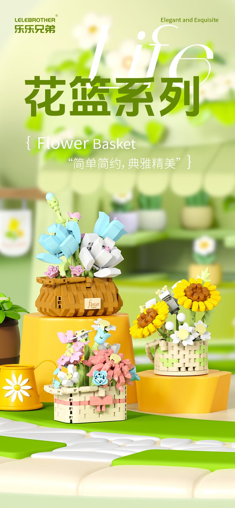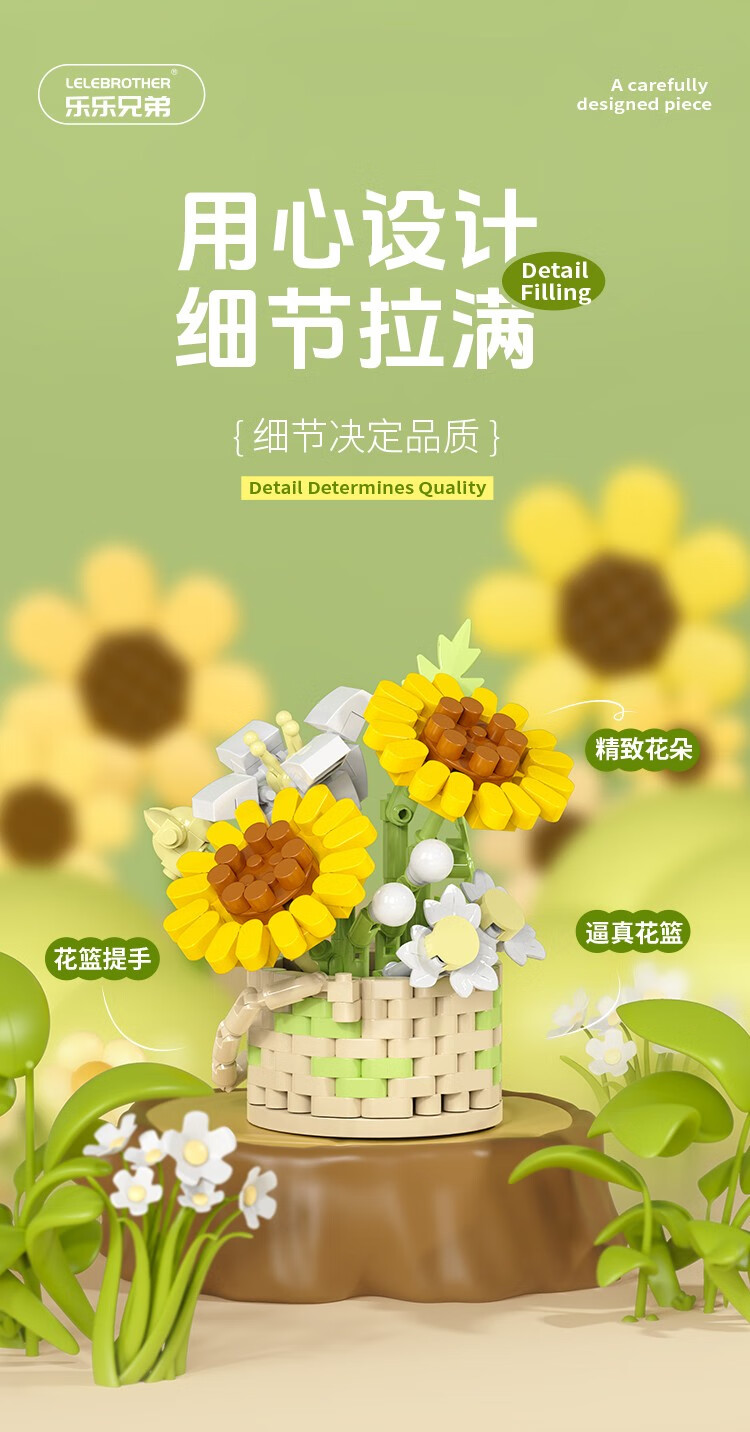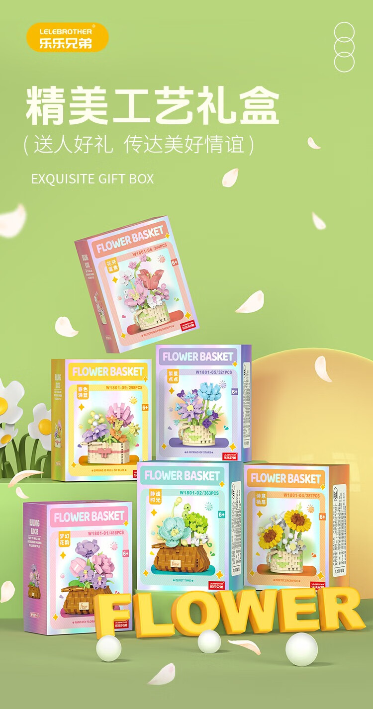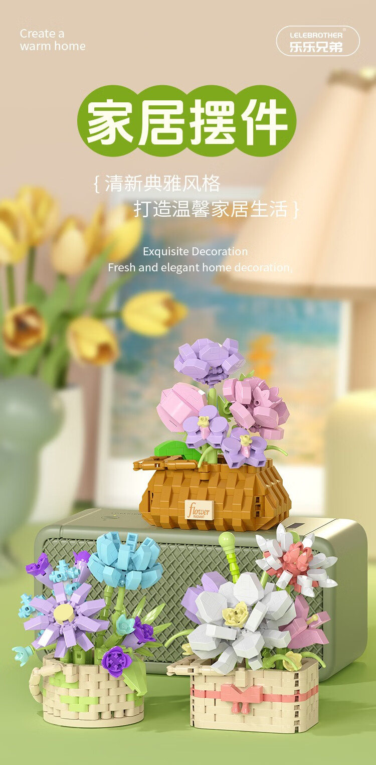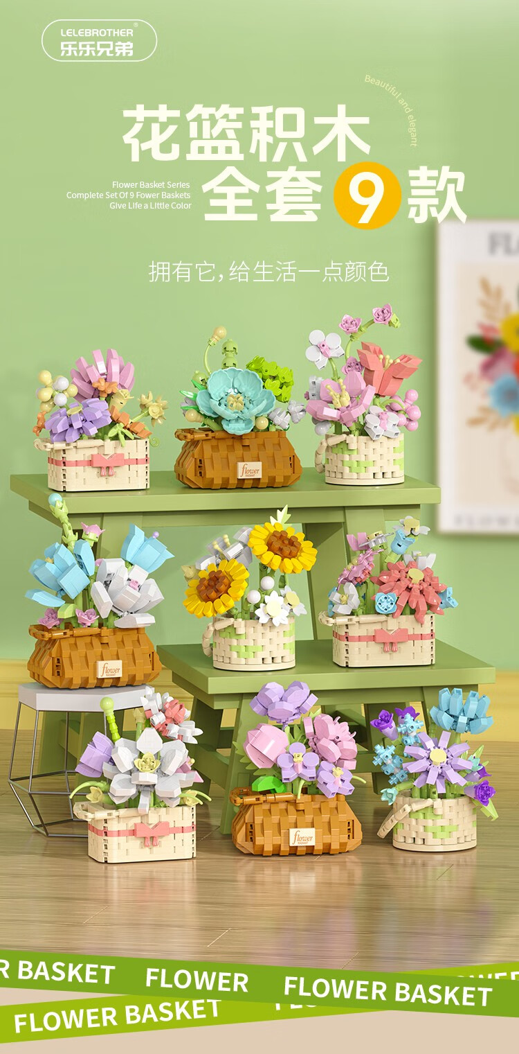 仿真花篮花系列diy国产积木小颗粒益智拼装女孩精致桌面摆设玩具 繁星点点