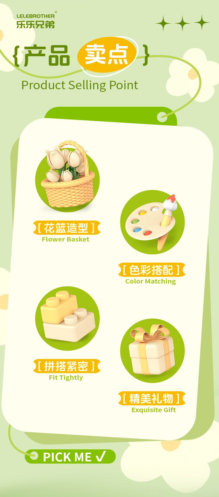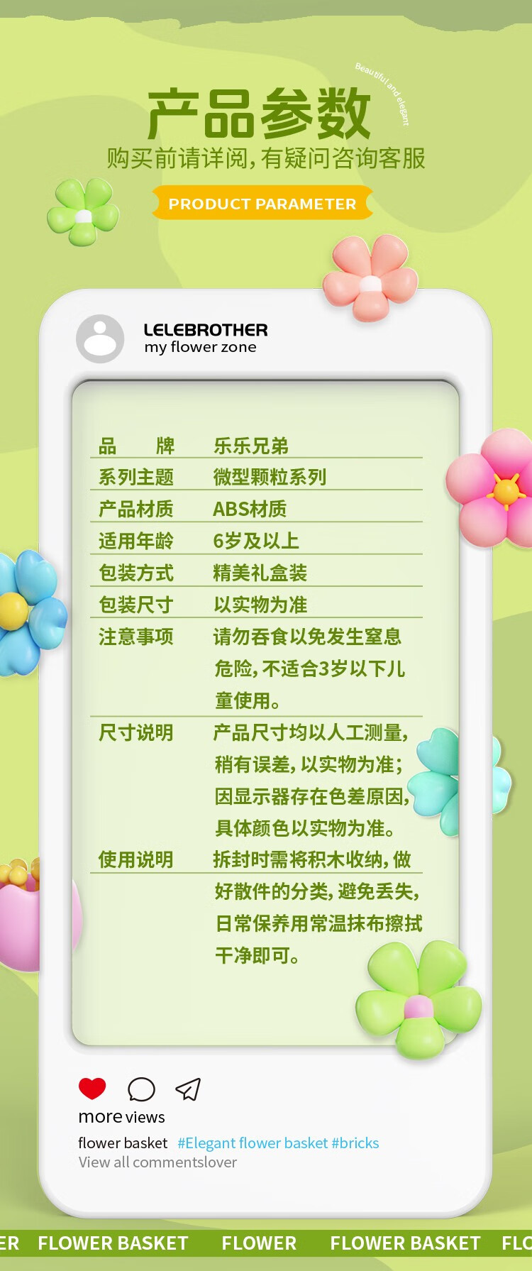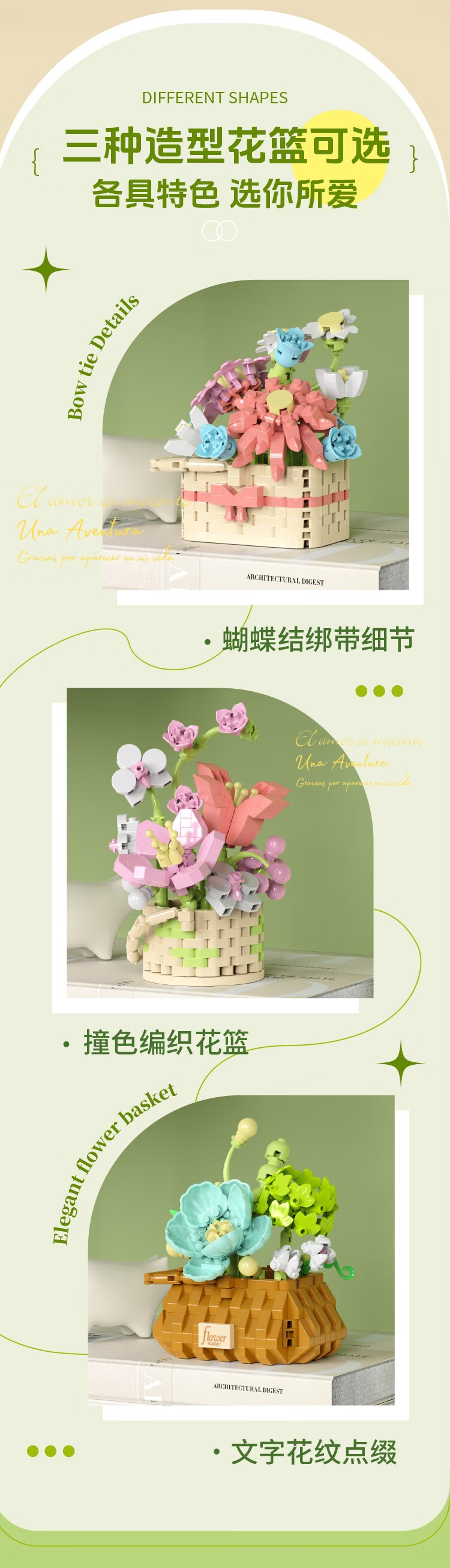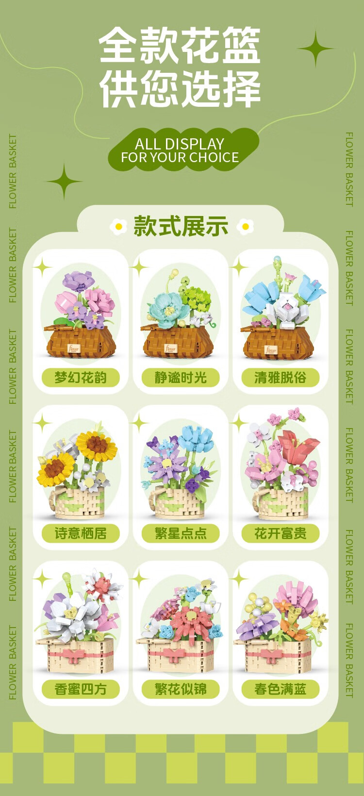 仿真花篮花系列diy国产积木小颗粒益智拼装女孩精致桌面摆设玩具 繁星点点