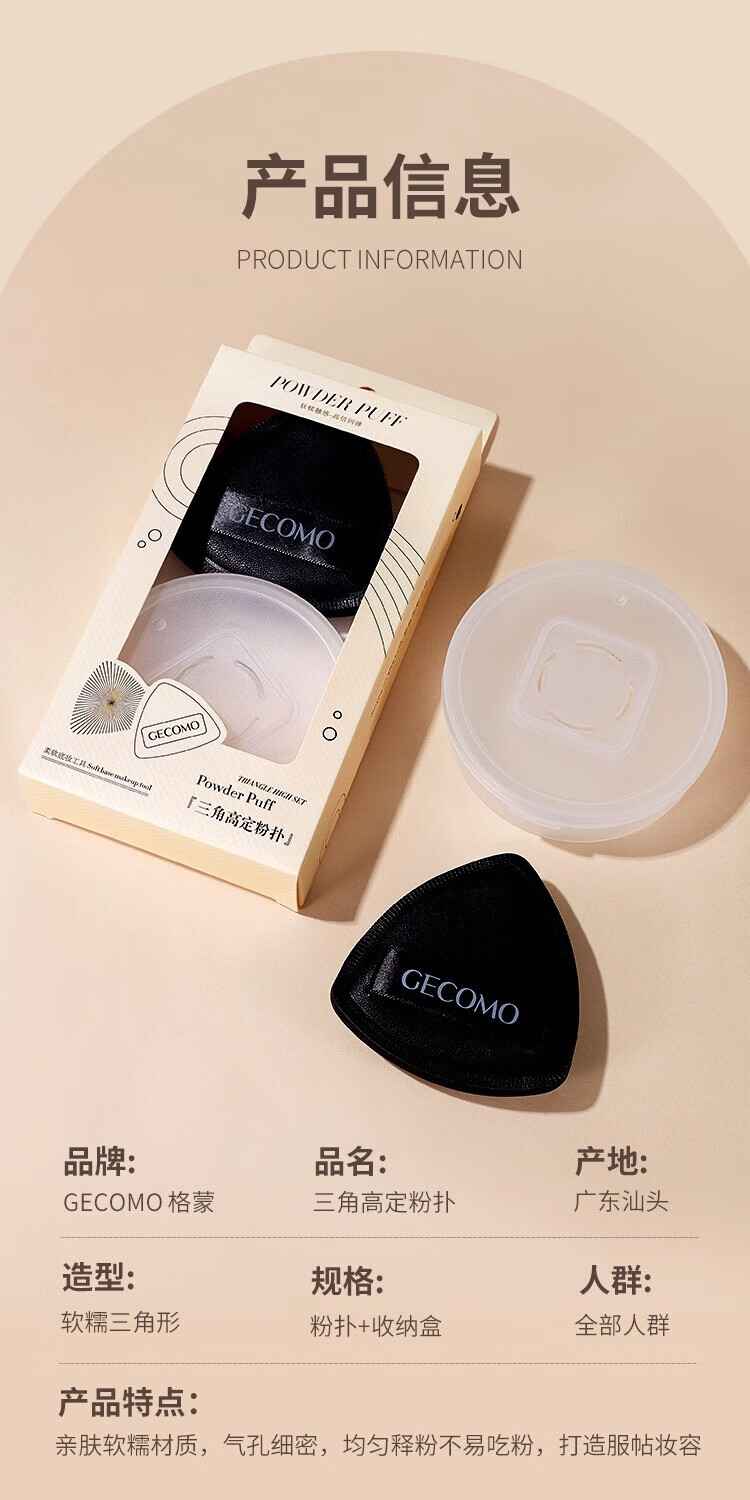 西子朵朵三角高定黑粉扑干湿两用不吃粉不卡粉遮瑕持妆海绵粉扑气垫美妆蛋 三角高定黑粉扑 1个