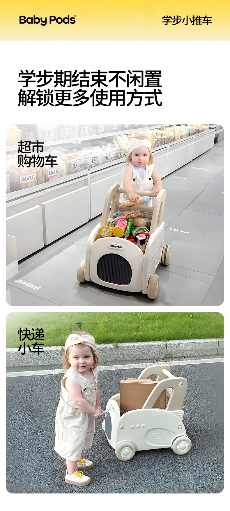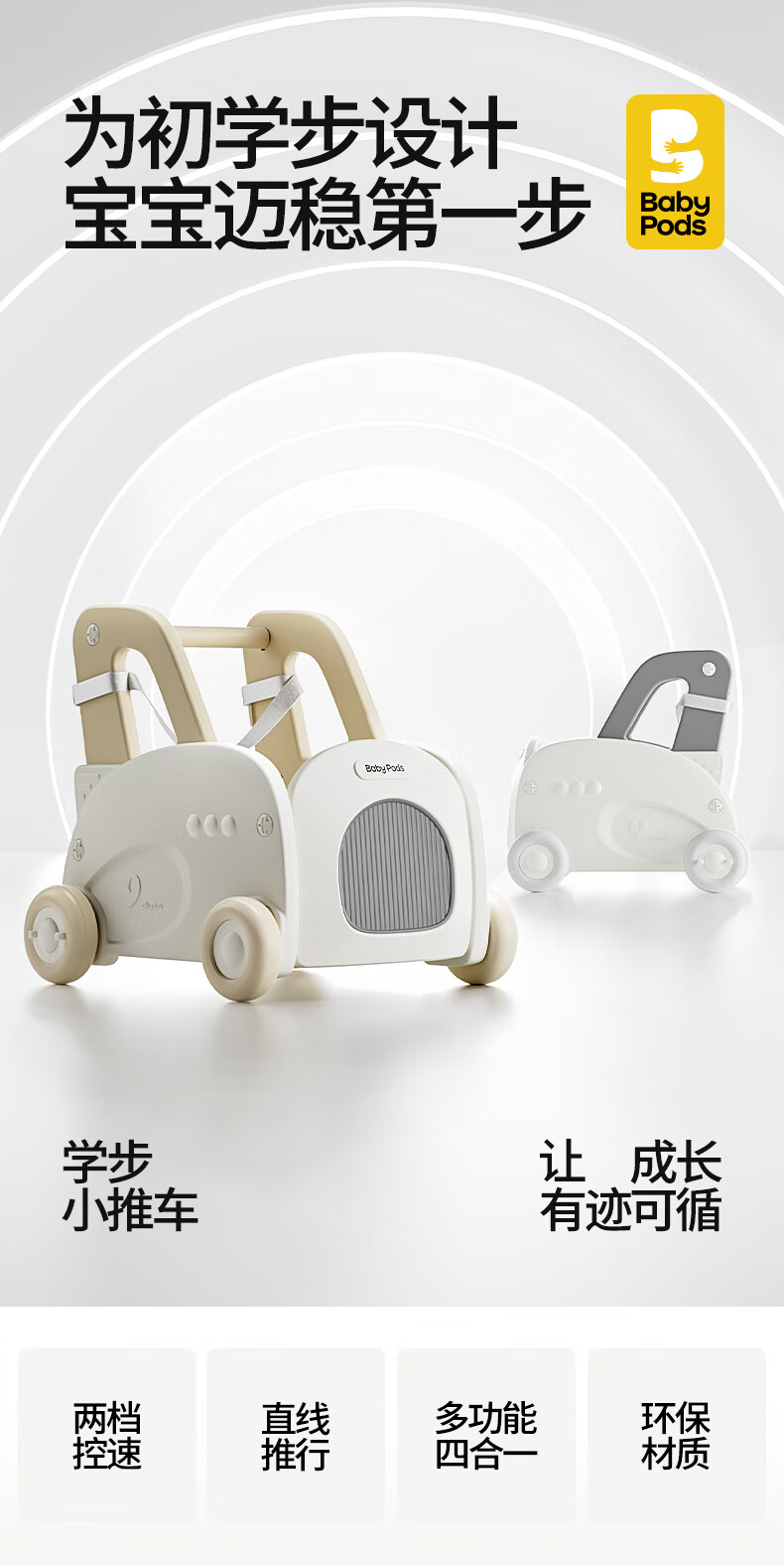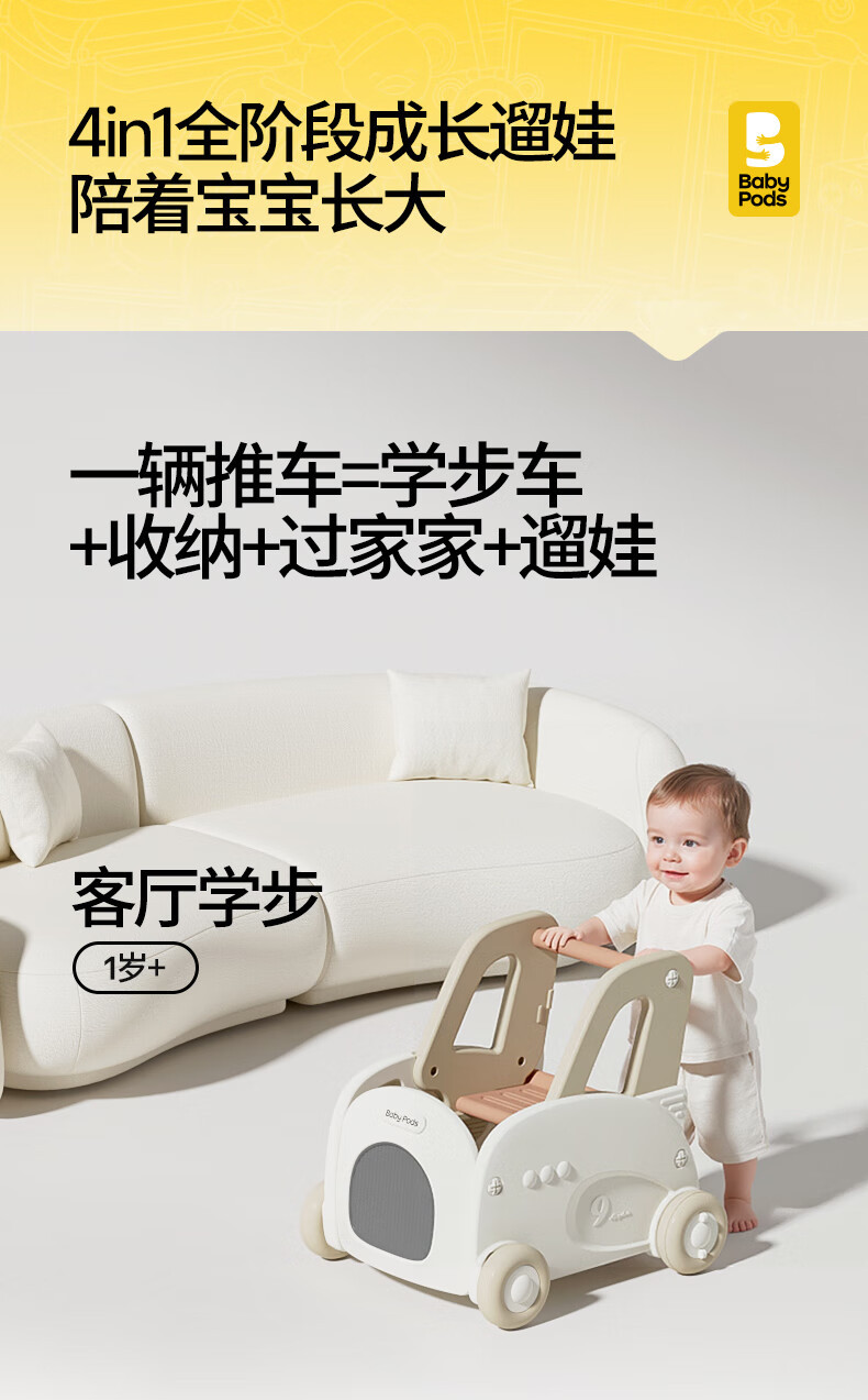 babypods婴儿学步车多功能儿童手推车学走路可调速助步车宝宝周岁礼物