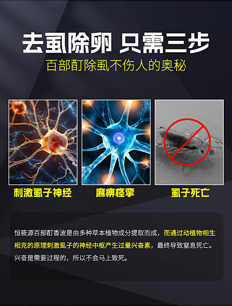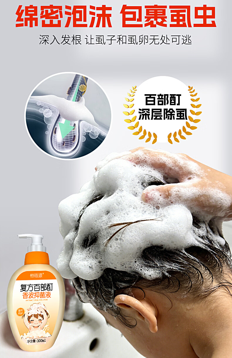 恒筱源去虱子药儿童头虱洗发水虱卵一扫光百部酊头虱专用药头发阴虱立净
