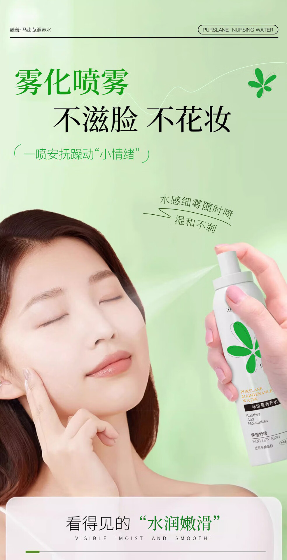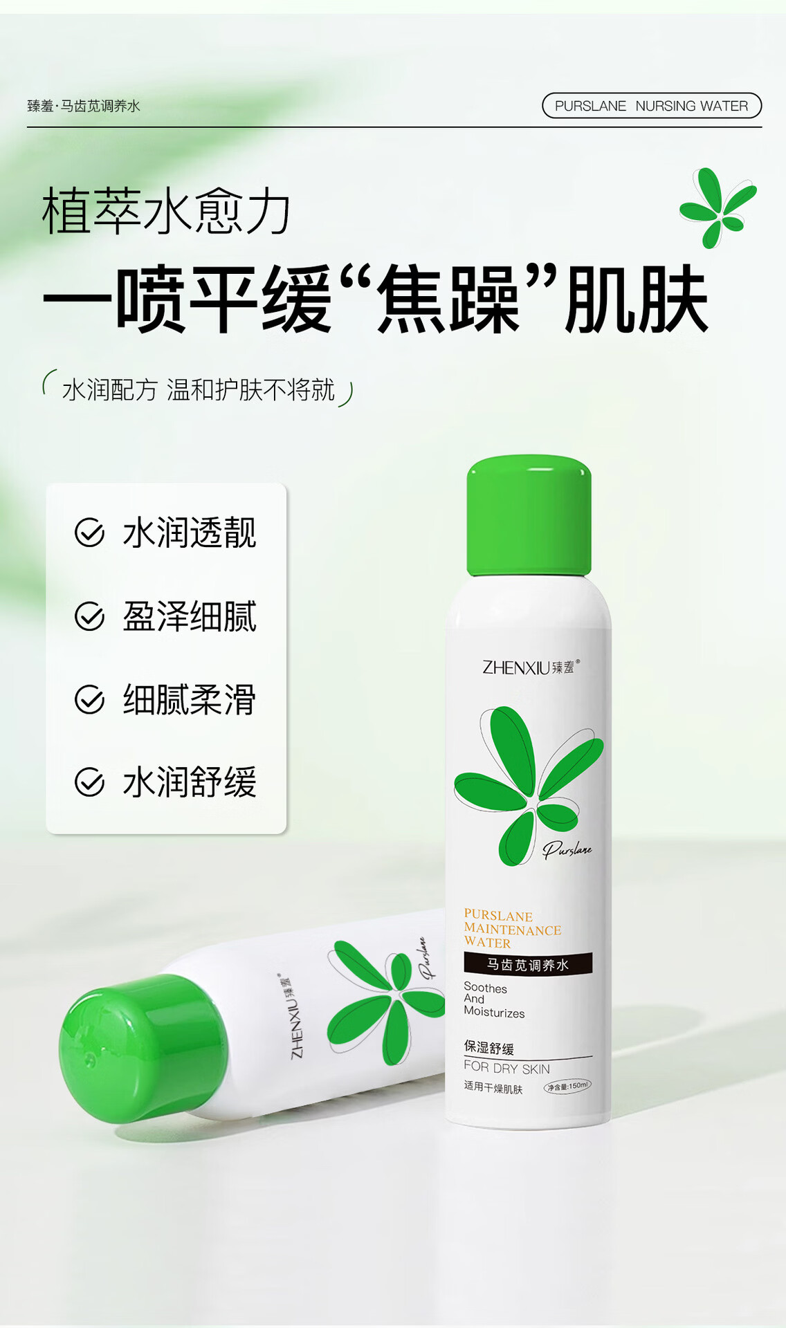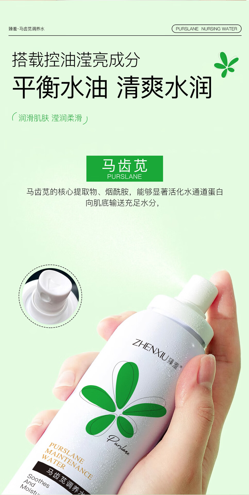 臻羞马齿苋调养水保湿舒缓补水喷雾小分子湿敷爽肤水化妆水男女士护肤 2瓶300ml【店长推荐】