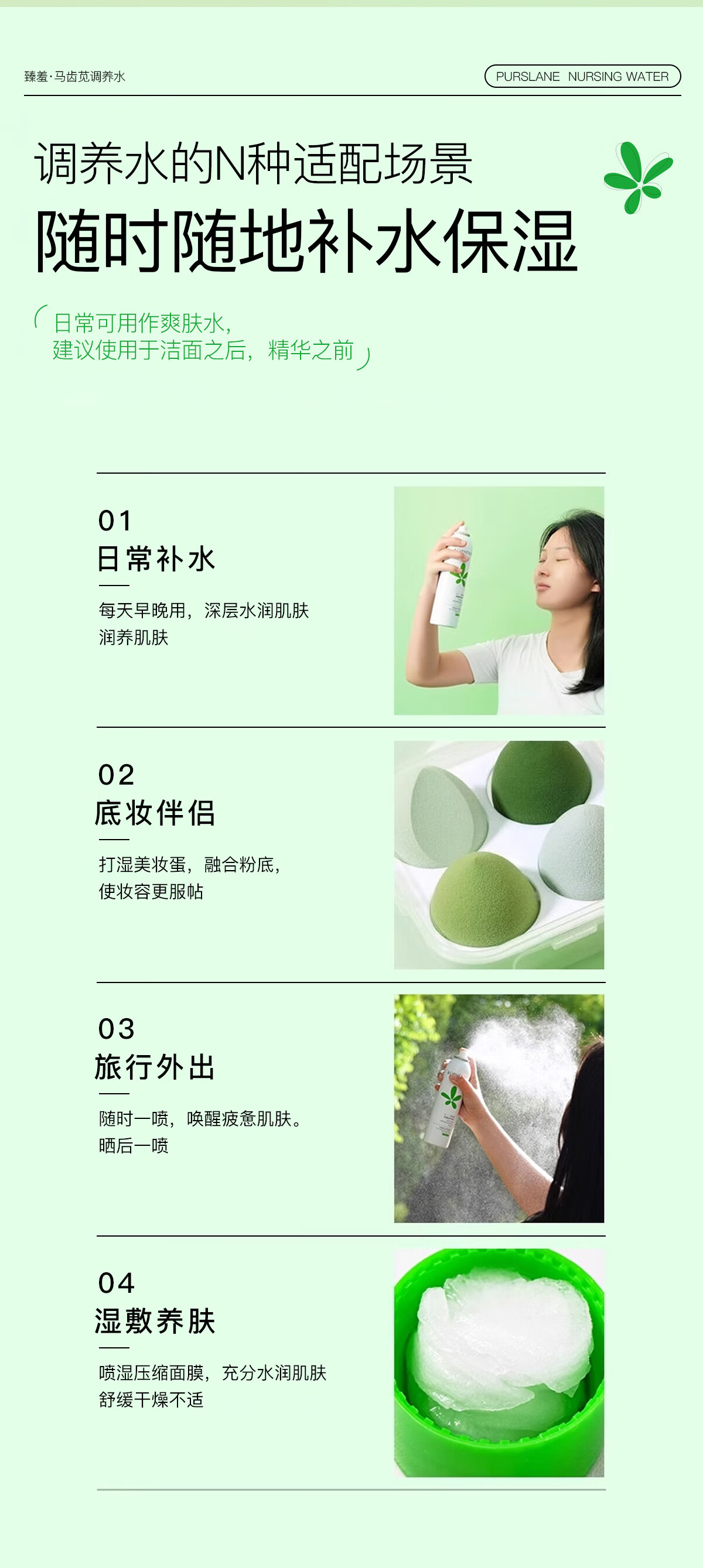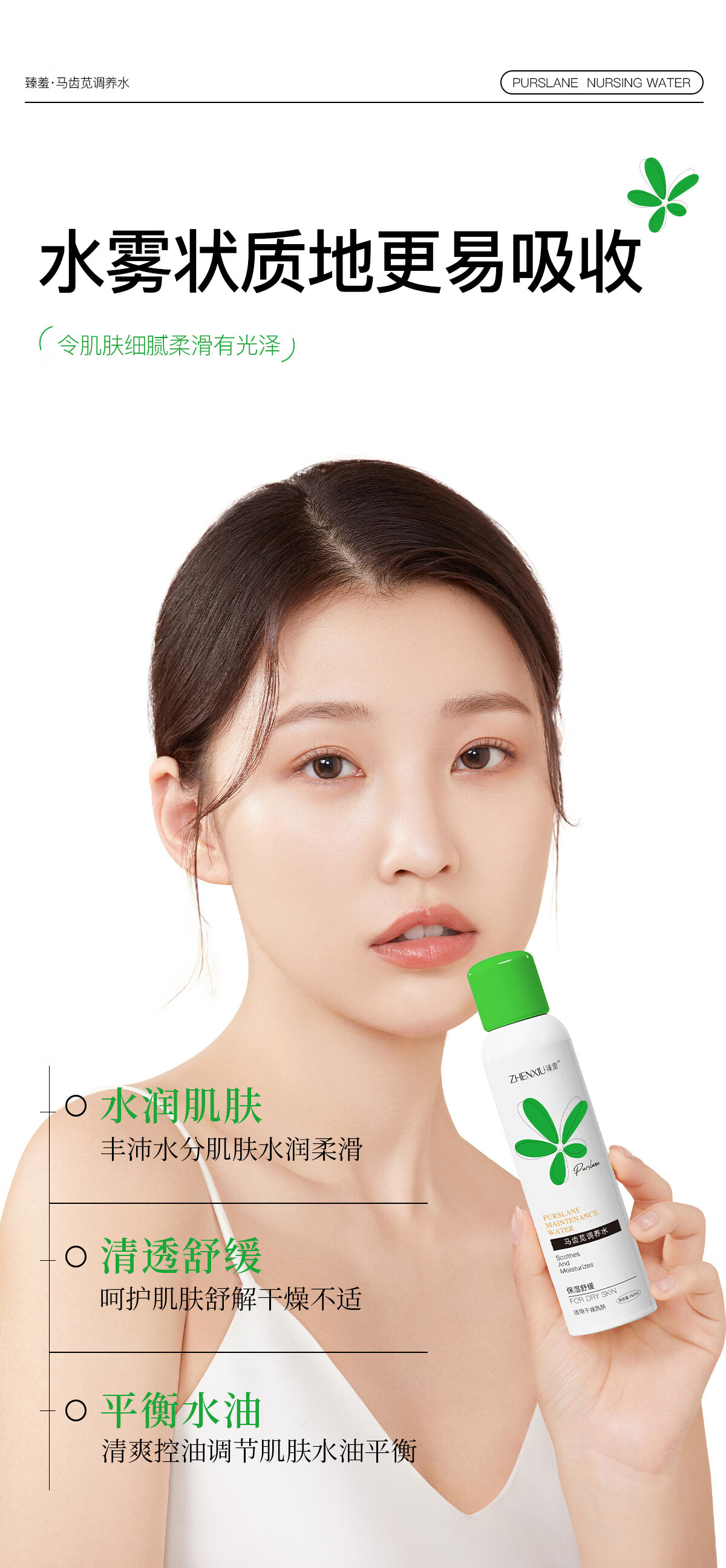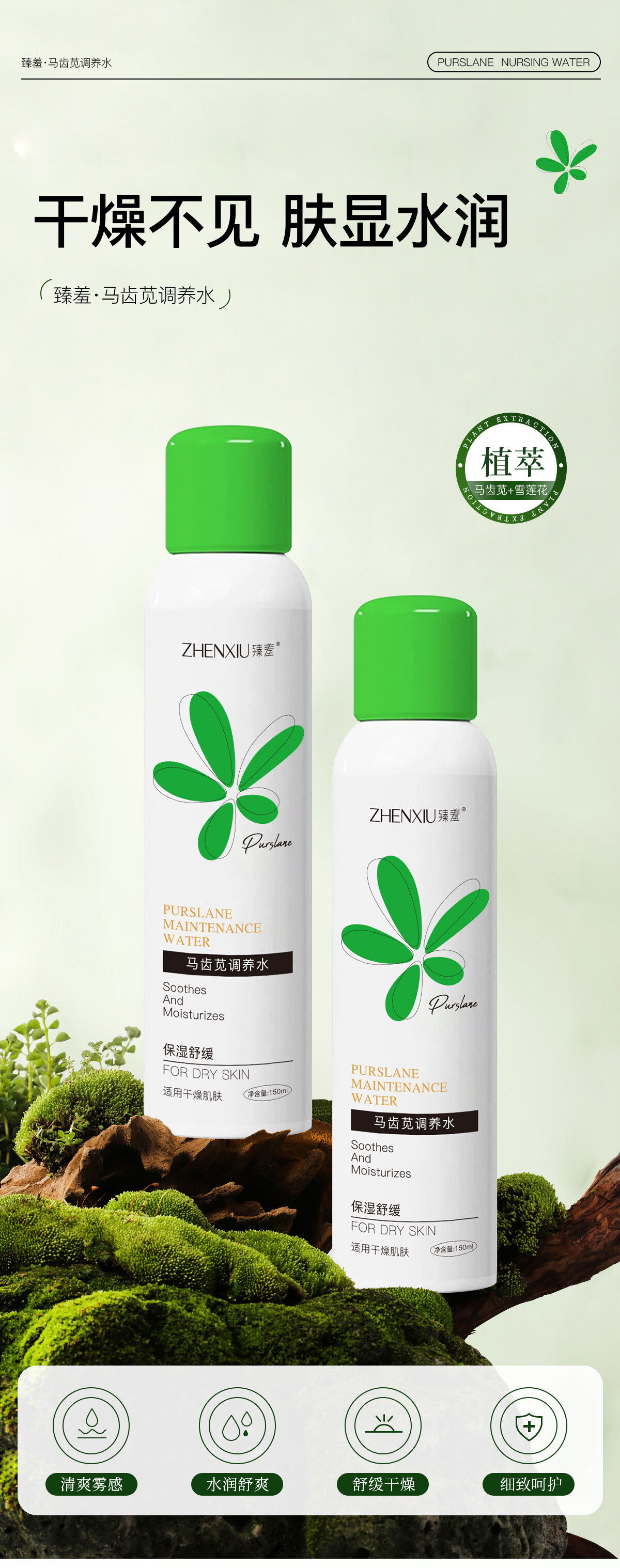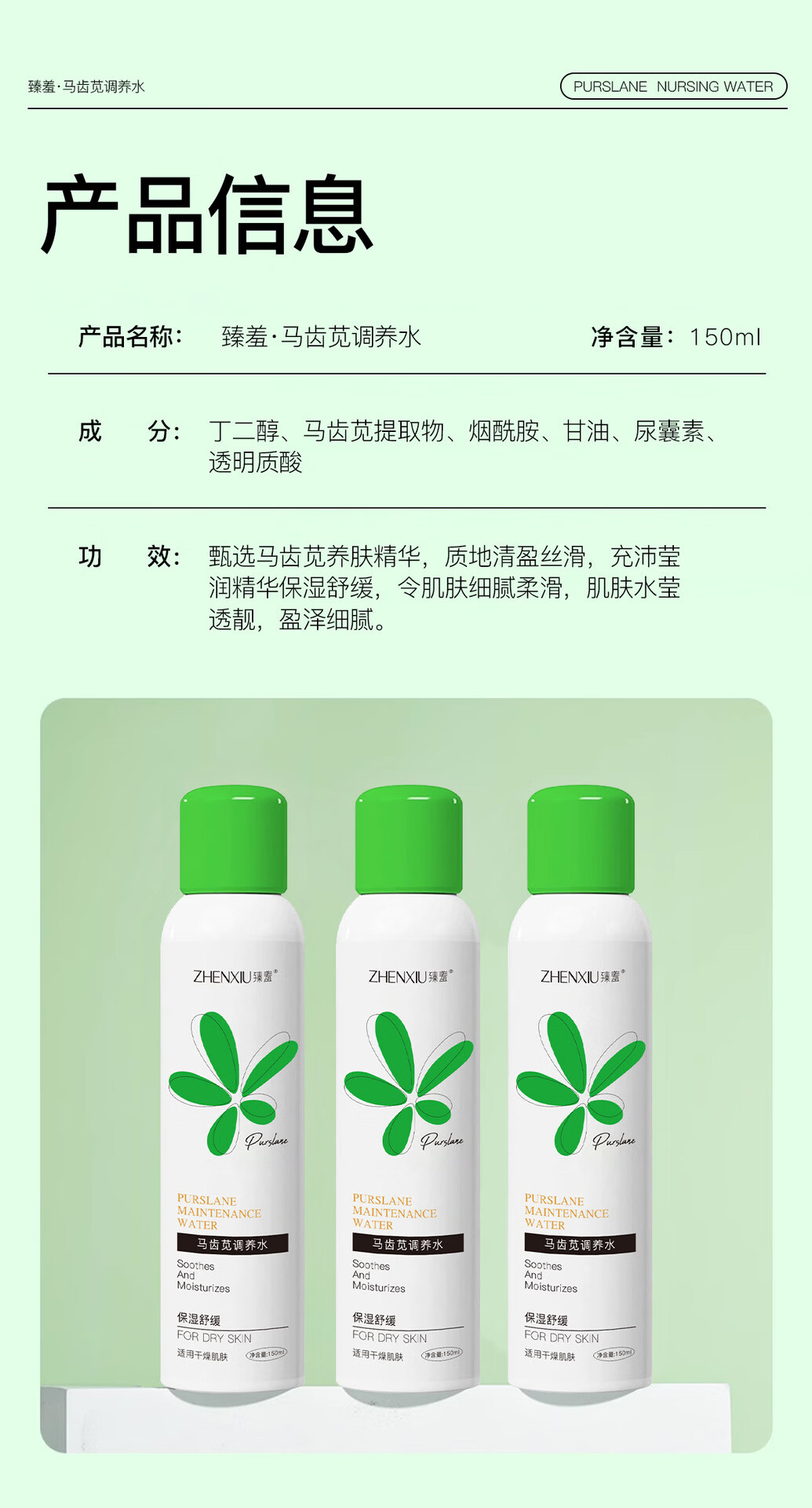 臻羞马齿苋调养水保湿舒缓补水喷雾小分子湿敷爽肤水化妆水男女士护肤 2瓶300ml【店长推荐】