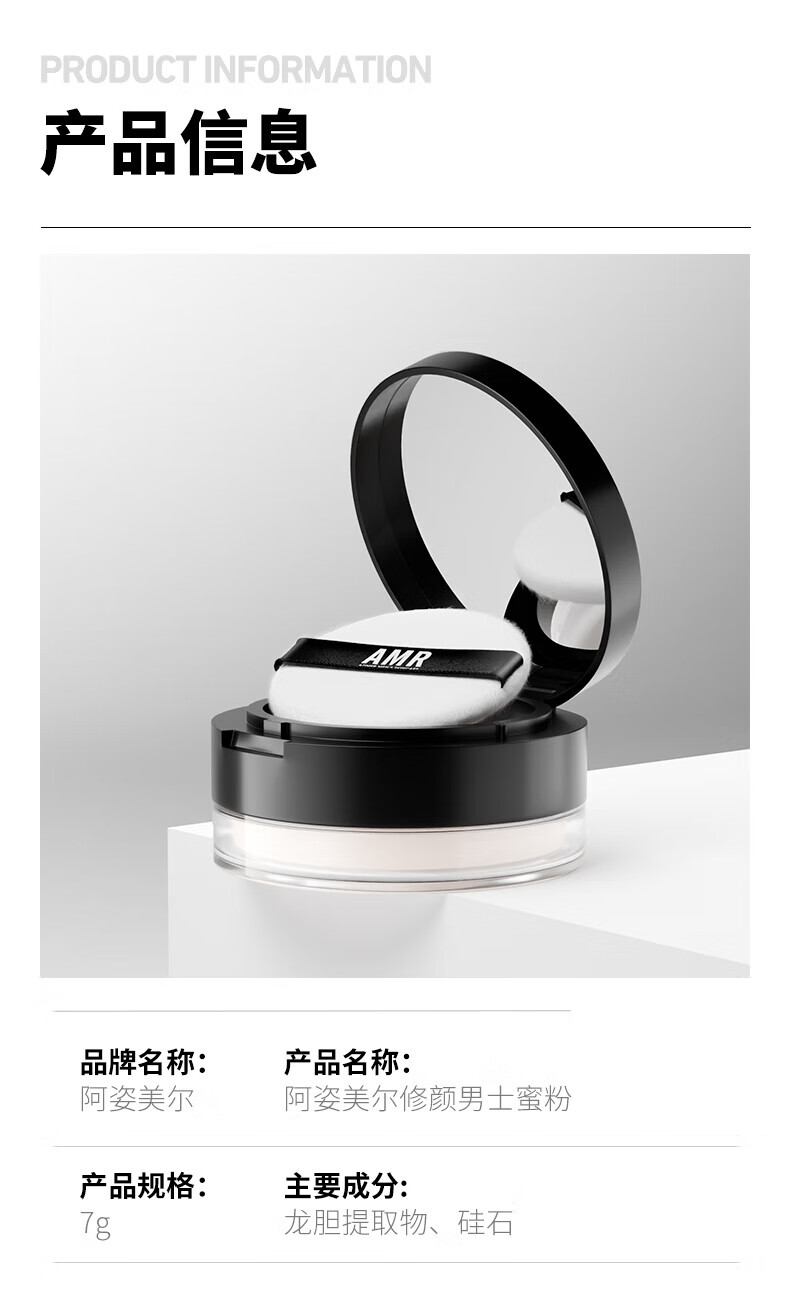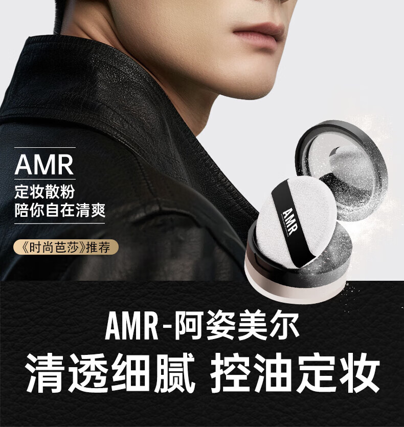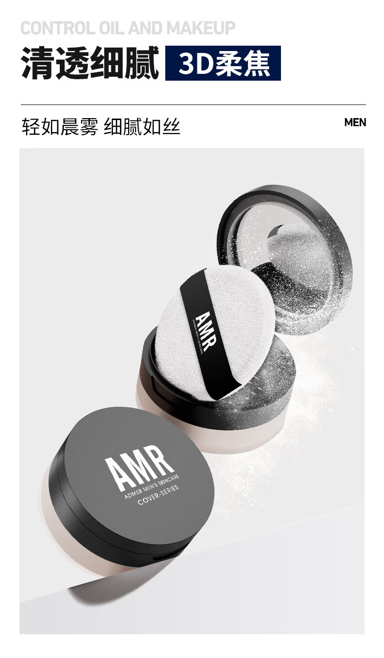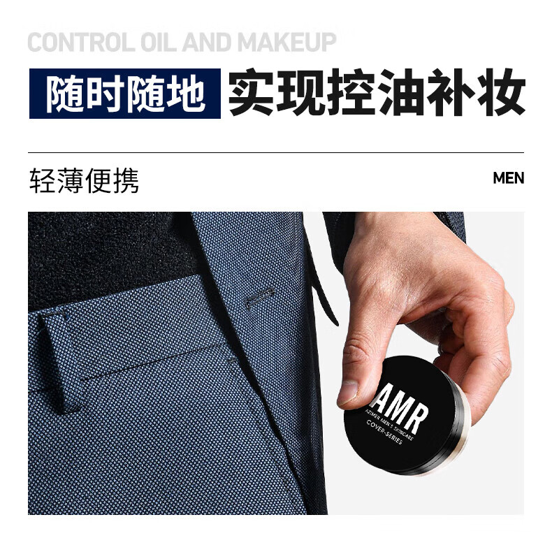 阿姿美尔AMR男士散粉控油定妆粉饼自然遮瑕防水防汗情人节礼物 1盒