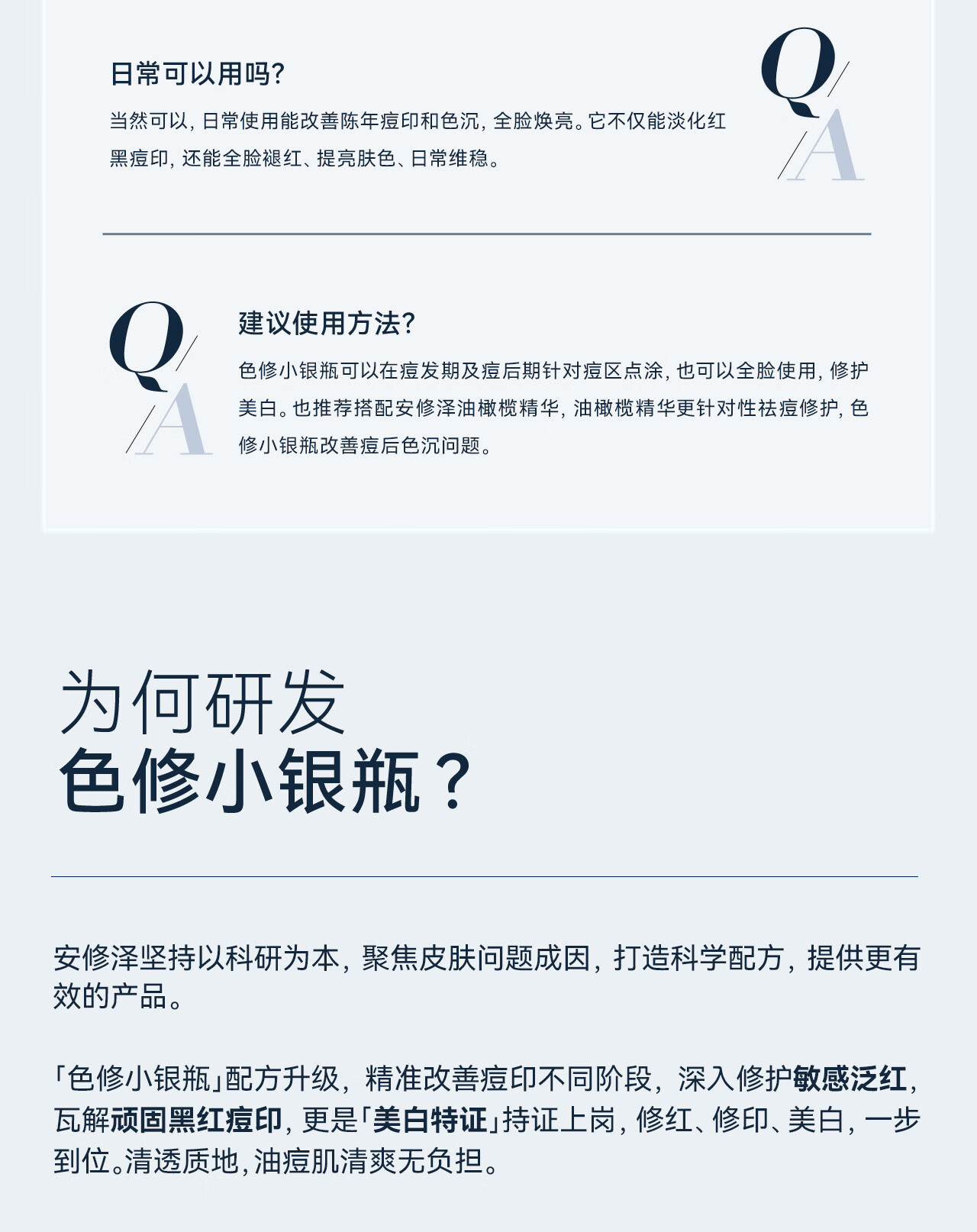 安修泽色修小银瓶精华美白祛斑特证美白淡斑30ml买正送替生日礼物