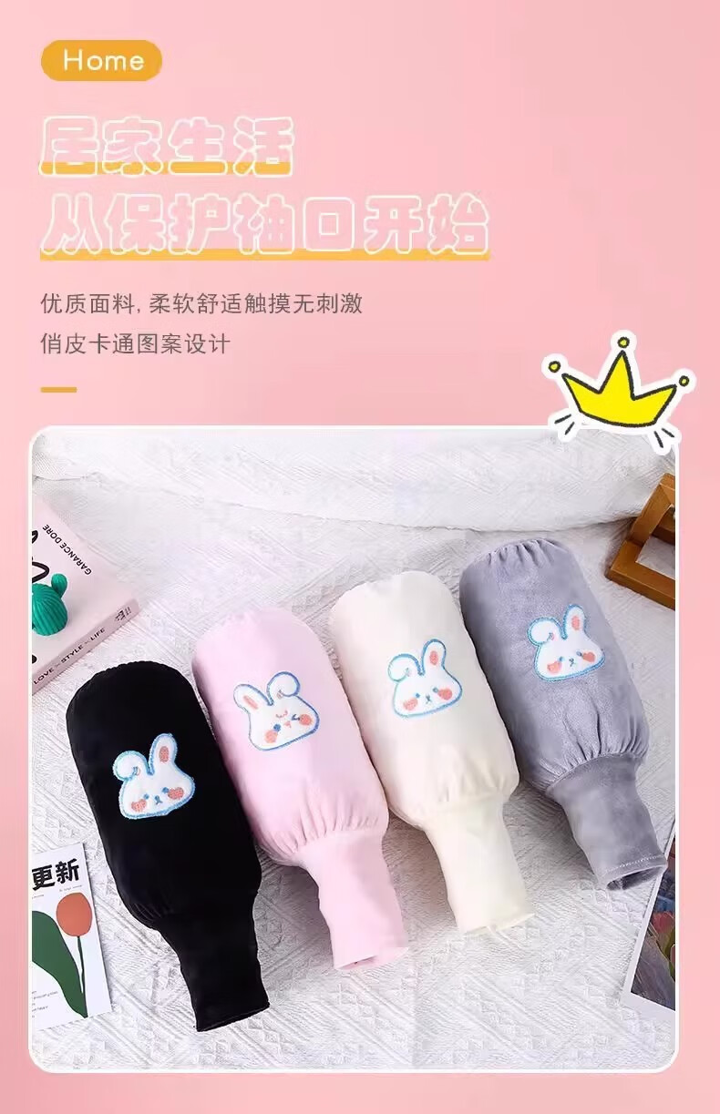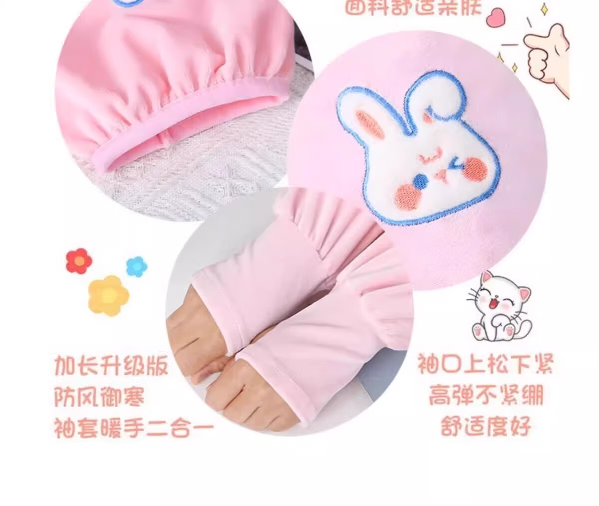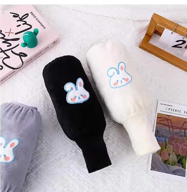 可爱兔子二合一袖套手套儿童成人防脏保暖学生写字护袖防污护袖套 两双装【米色+灰色】加厚保暖