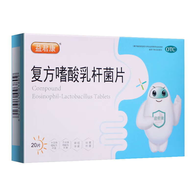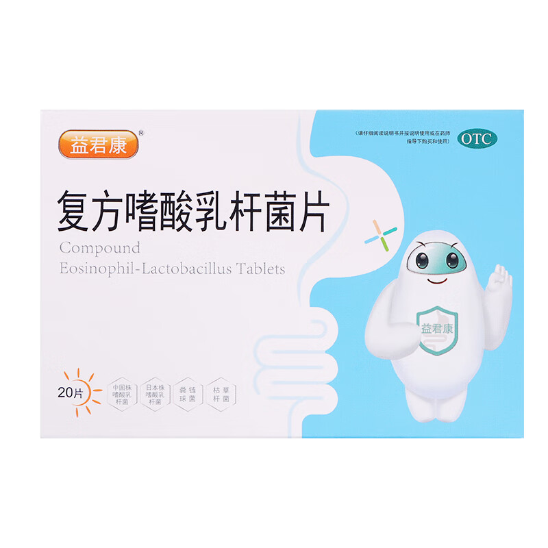 益君康 复方嗜酸乳杆菌片 0.5g*20片/盒 益生菌儿童 幽门螺旋杆菌用药 四联活菌片 拉肚子药腹泻便秘