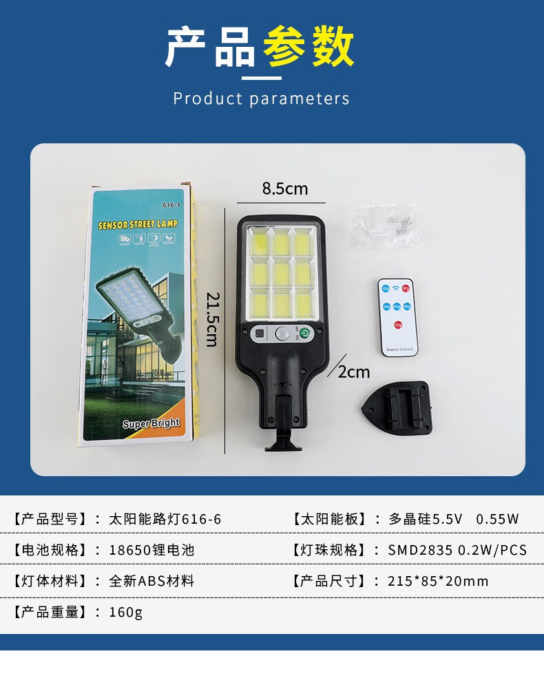无瑕太阳能灯户外庭院灯道路人体感应灯led防水一体壁灯太阳能616路灯 616-3路灯遥控款
