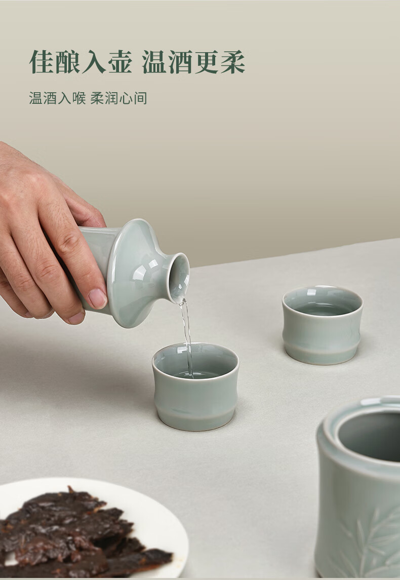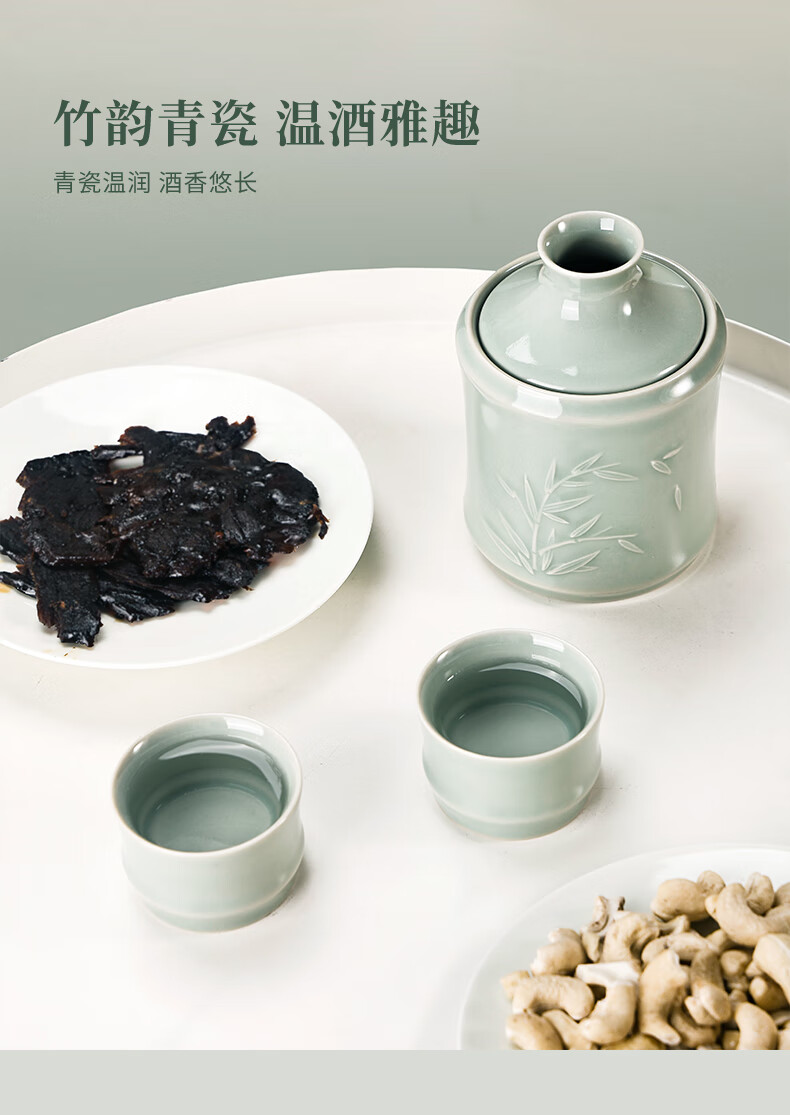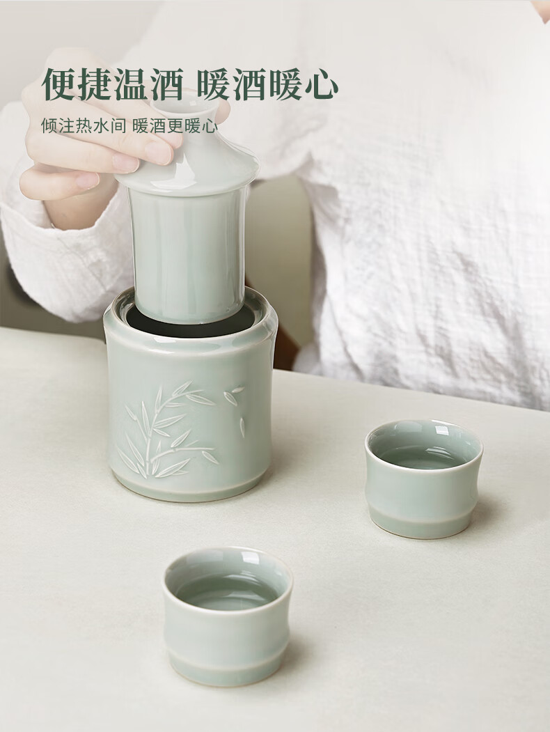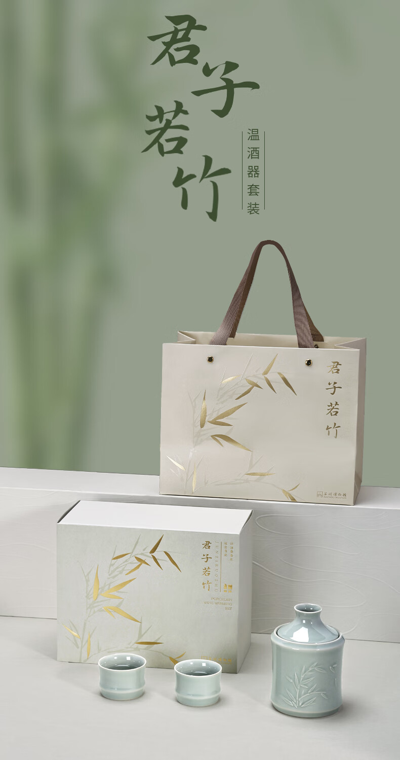 苏州博物馆君子若竹温酒壶套装青瓷暖酒器中式酒壶商务礼盒男生日礼物送爸爸 君子若竹温酒壶套装