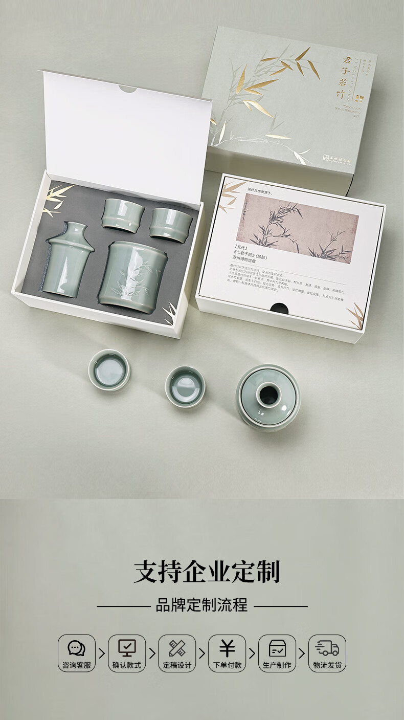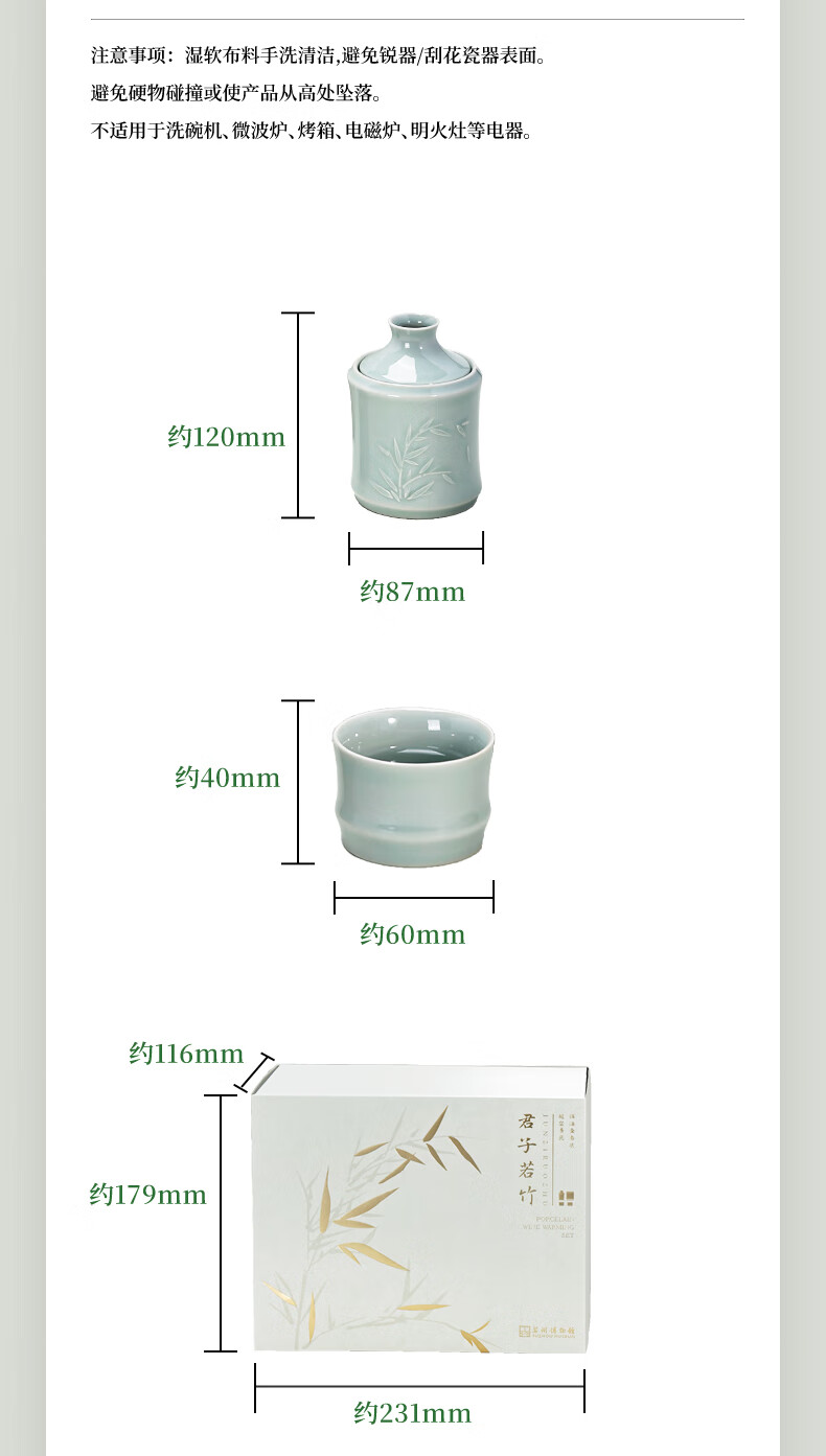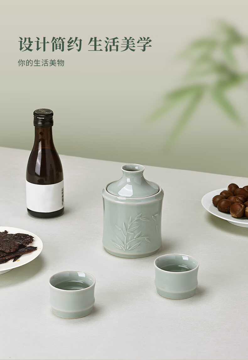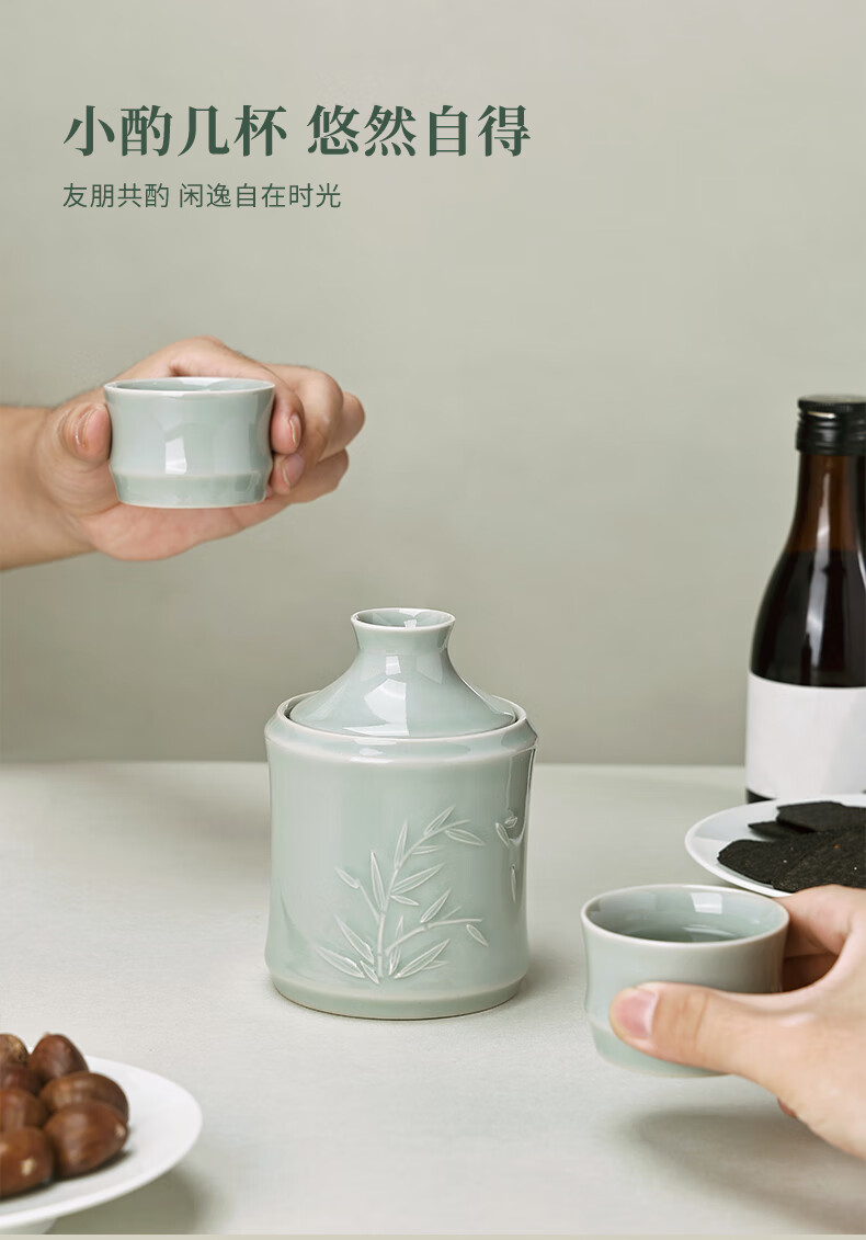 苏州博物馆君子若竹温酒壶套装青瓷暖酒器中式酒壶商务礼盒男生日礼物送爸爸 君子若竹温酒壶套装