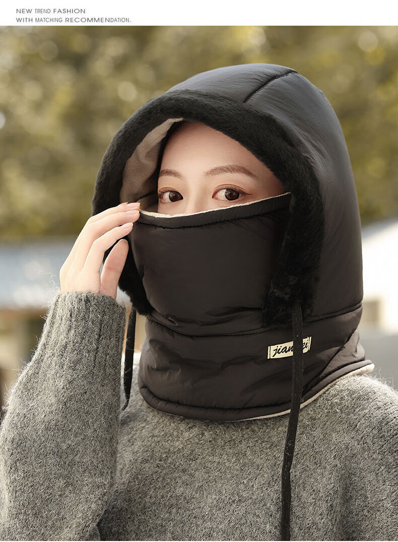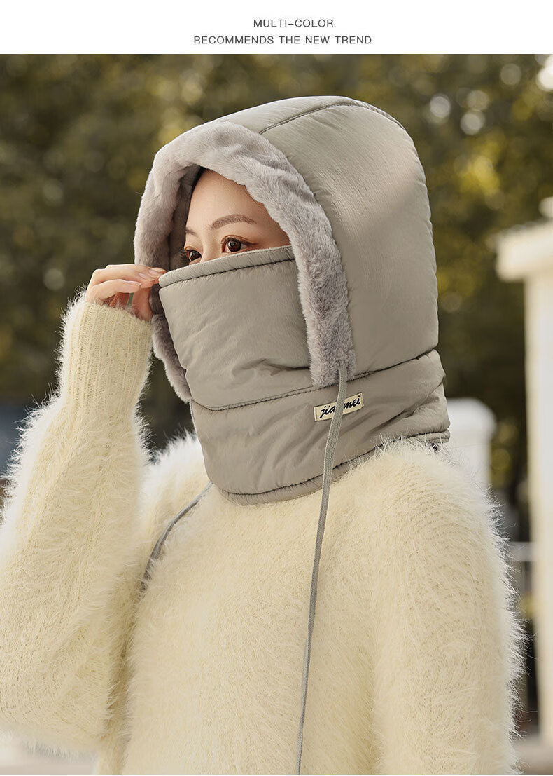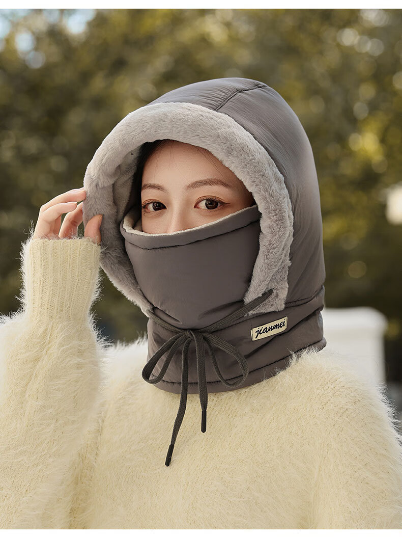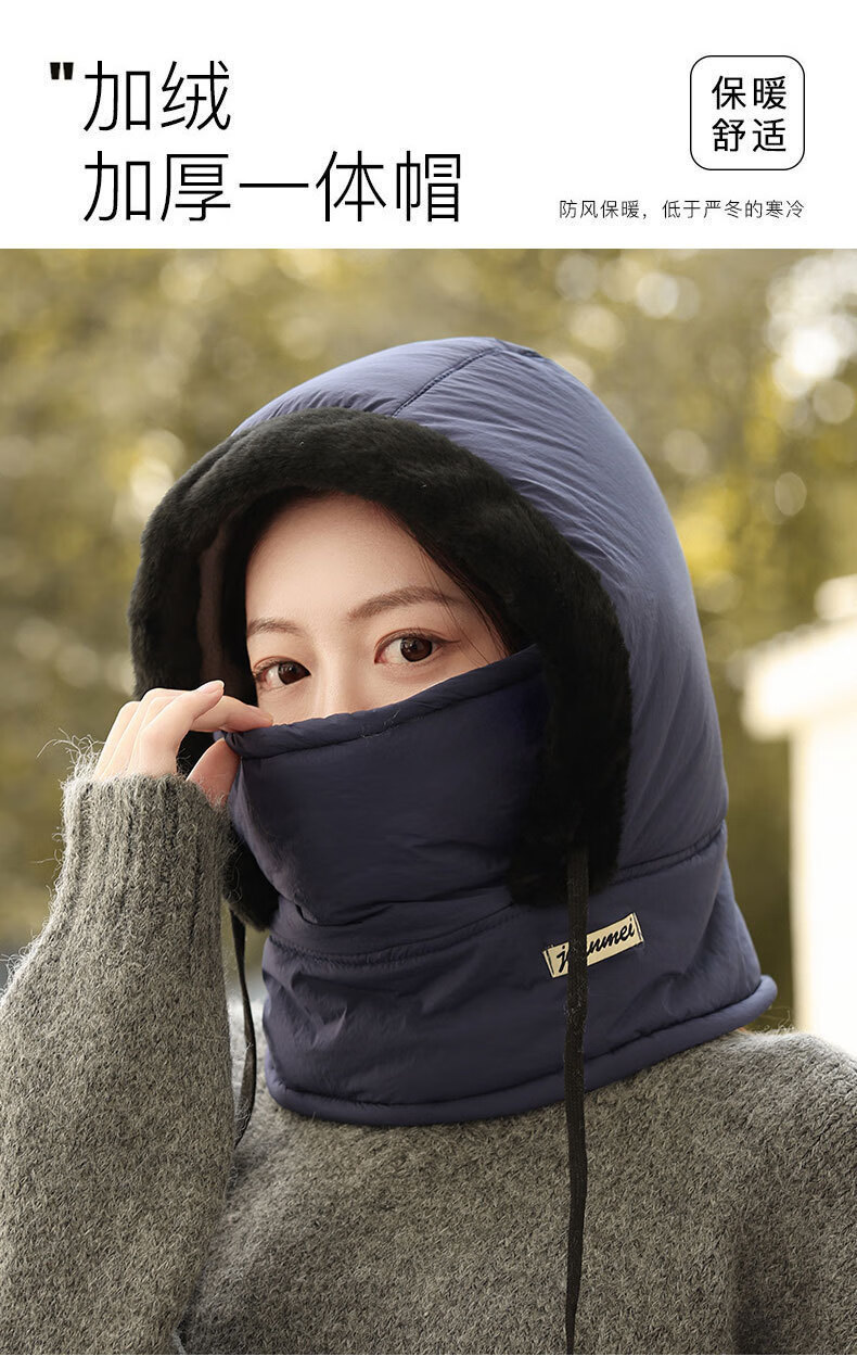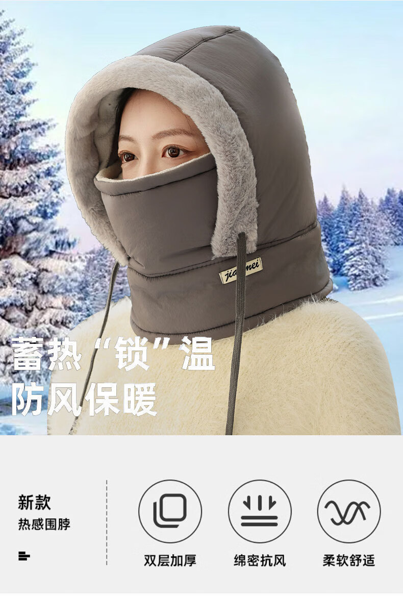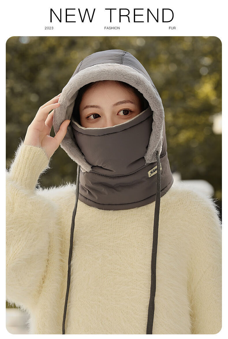 羽绒雷锋帽女秋冬季围脖一体加厚保暖防寒头套面罩骑车防风帽子男 帽子-四合一雷锋帽-深灰色 均码 1个