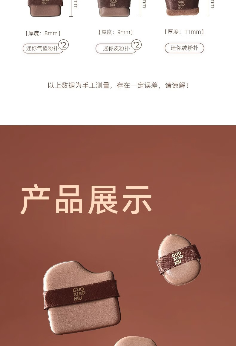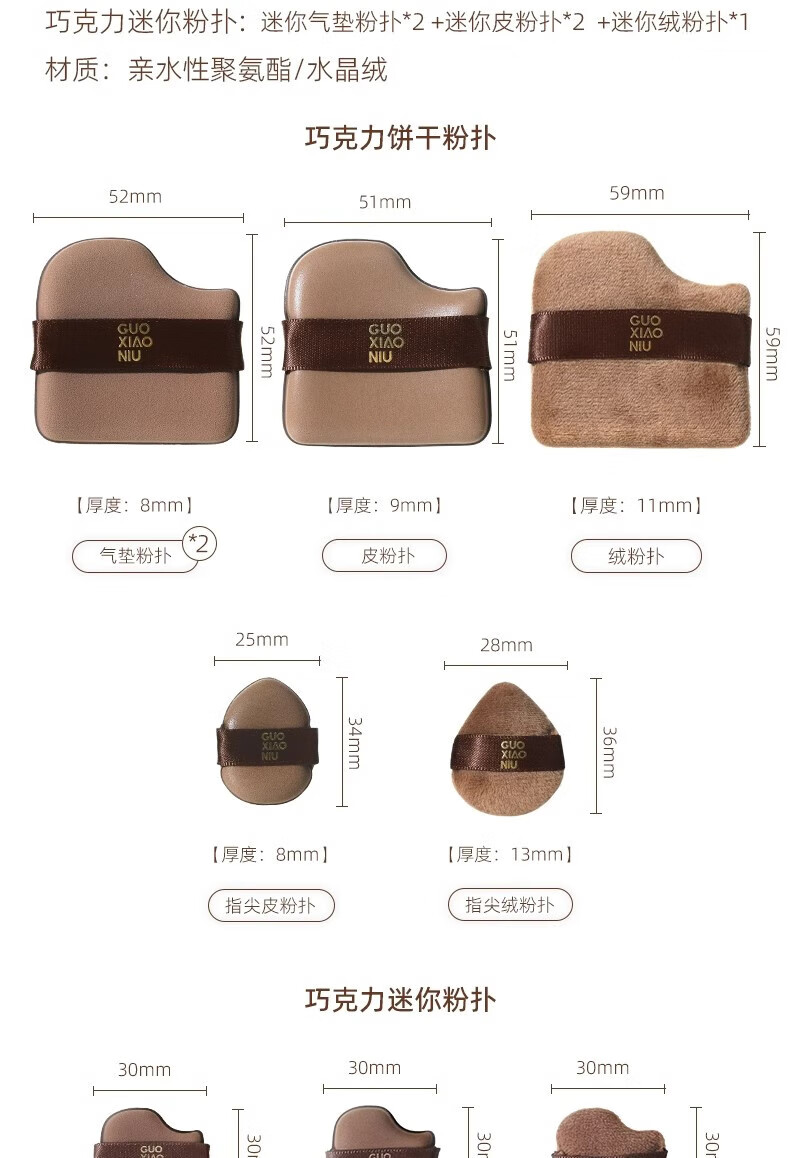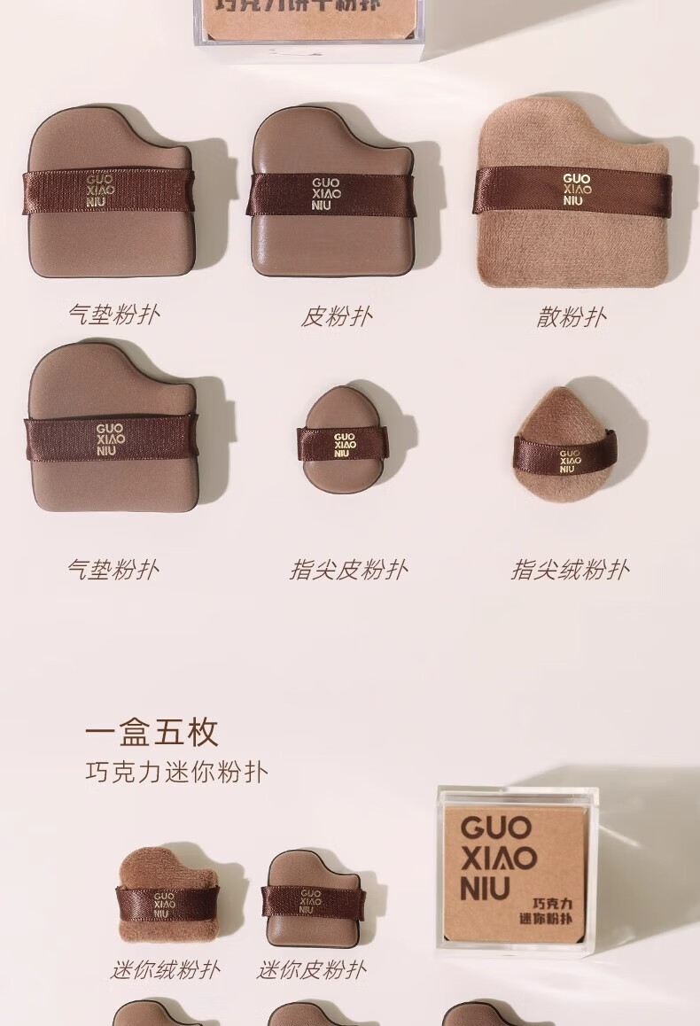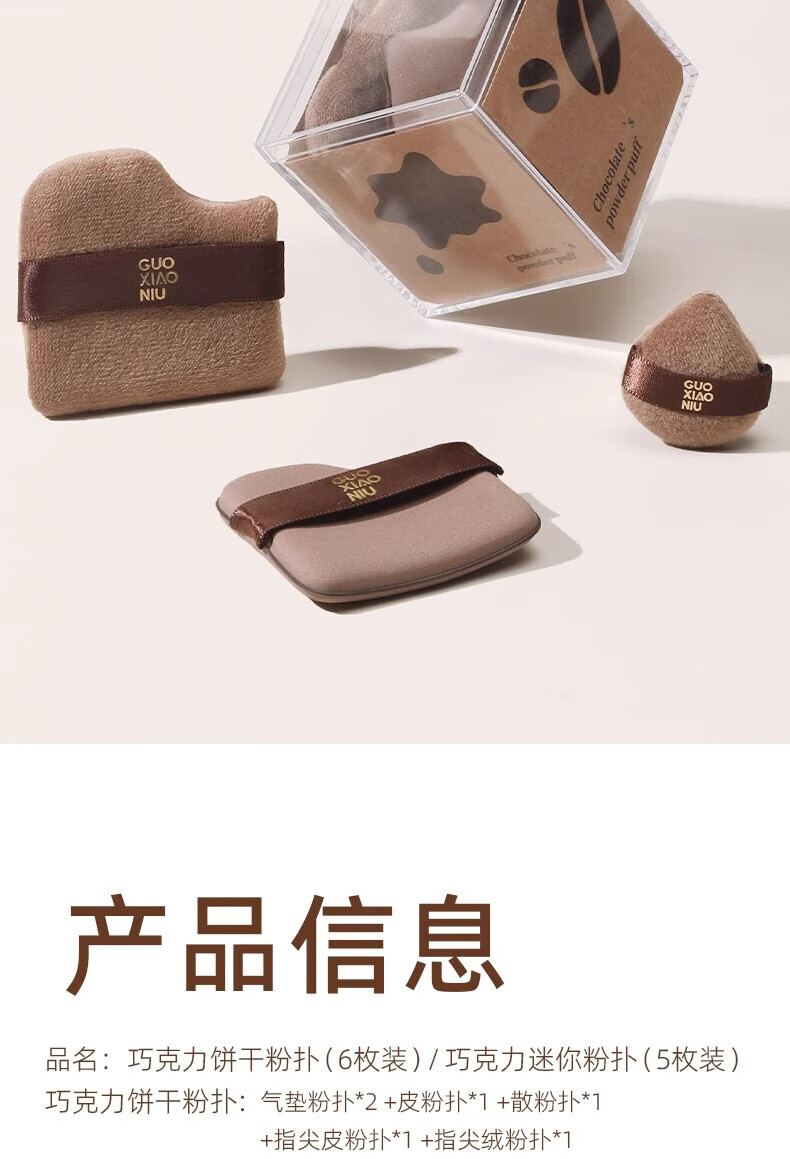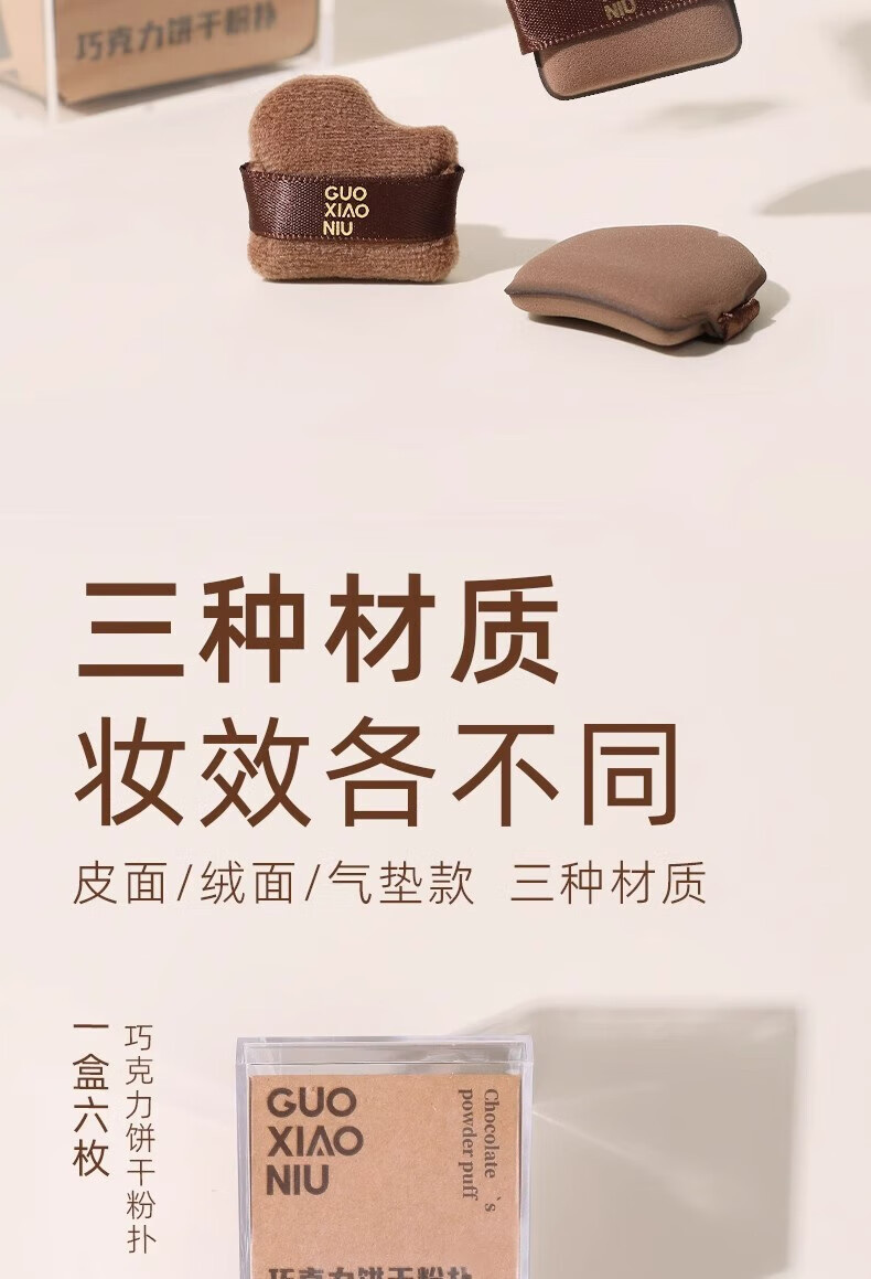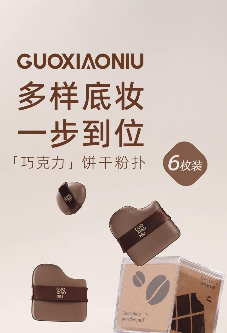 GUOXIAONIU郭小妞粉扑巧克力粉扑植绒粉扑超软不易吃粉底液定妆饼干粉扑6枚