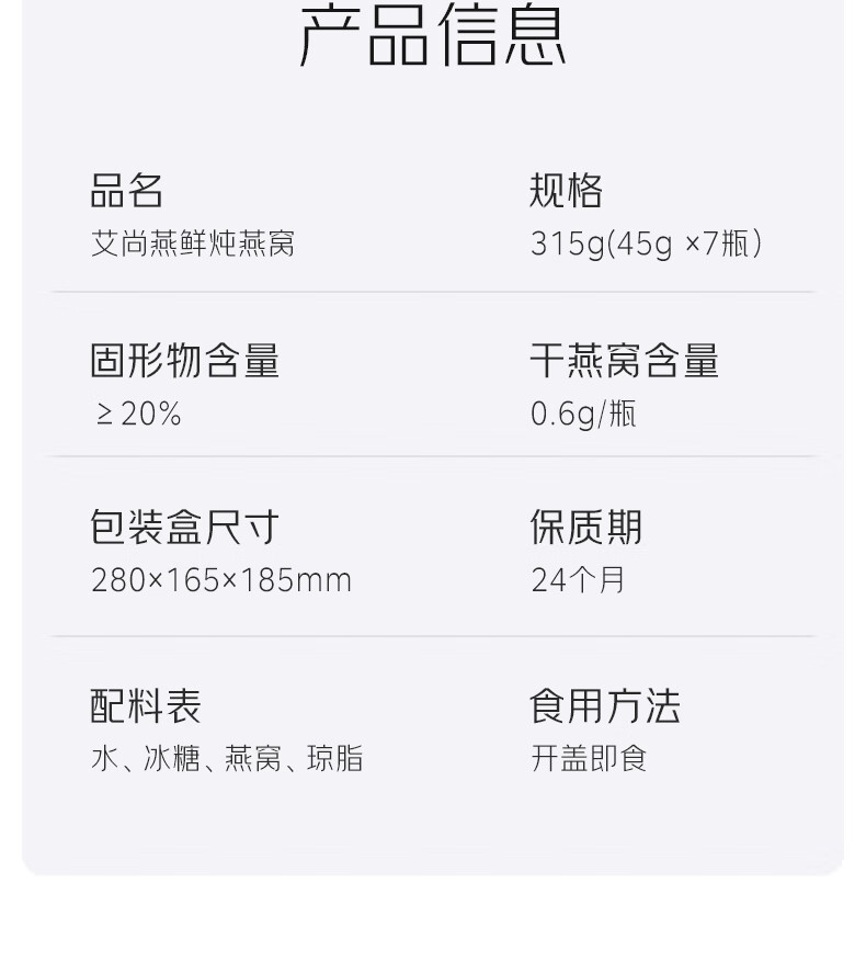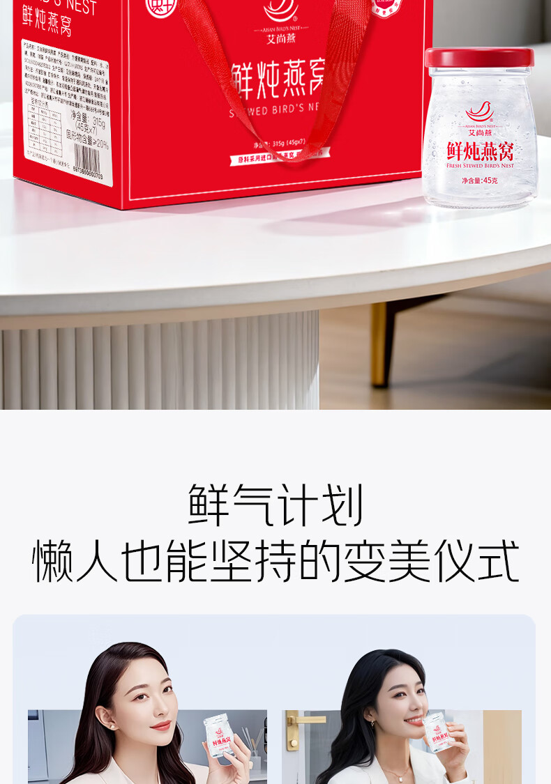 艾尚燕鲜炖燕窝45g*7瓶年货礼盒 礼品送礼父母长辈 补品营养品 生日礼物