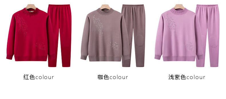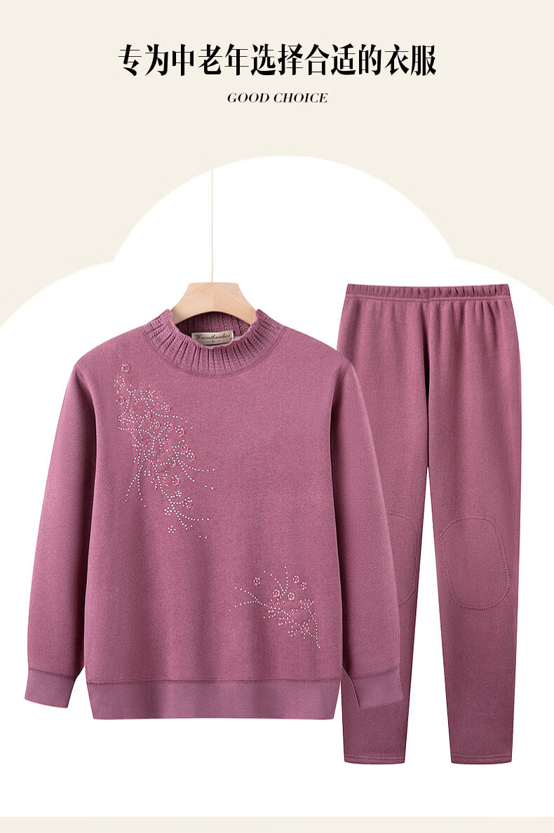 俞兆林(YUZHAOLIN)中老年人保暖内衣女加厚加绒套装妈妈半高领加大码新年防寒保暖衣