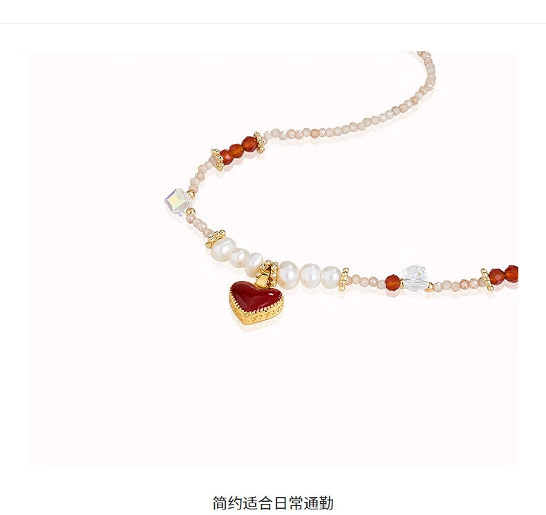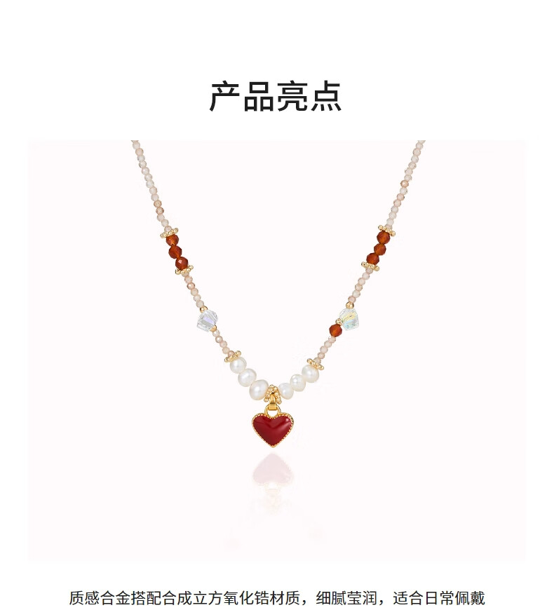 AJIDOU阿吉豆项链女款红色爱心珍珠吊坠首饰毛衣链轻奢小众锁骨链新年