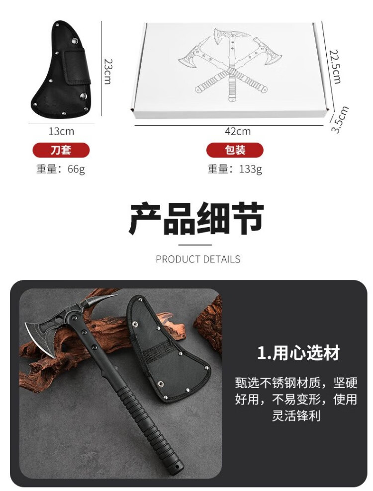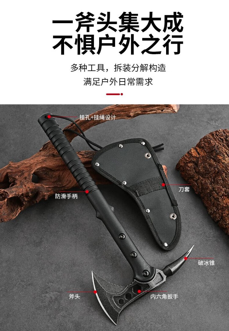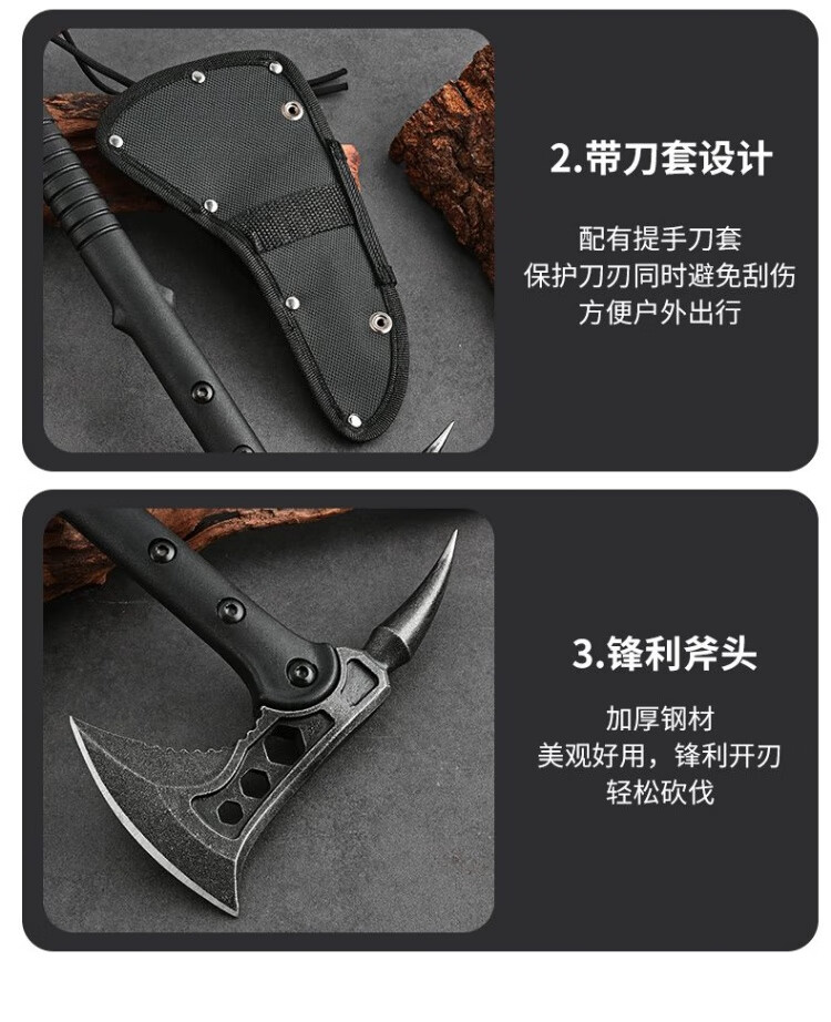 加强斧头刀开山刃大砍多功能斧子户外特种营地武器兵战斧防身手斧 尖椒型