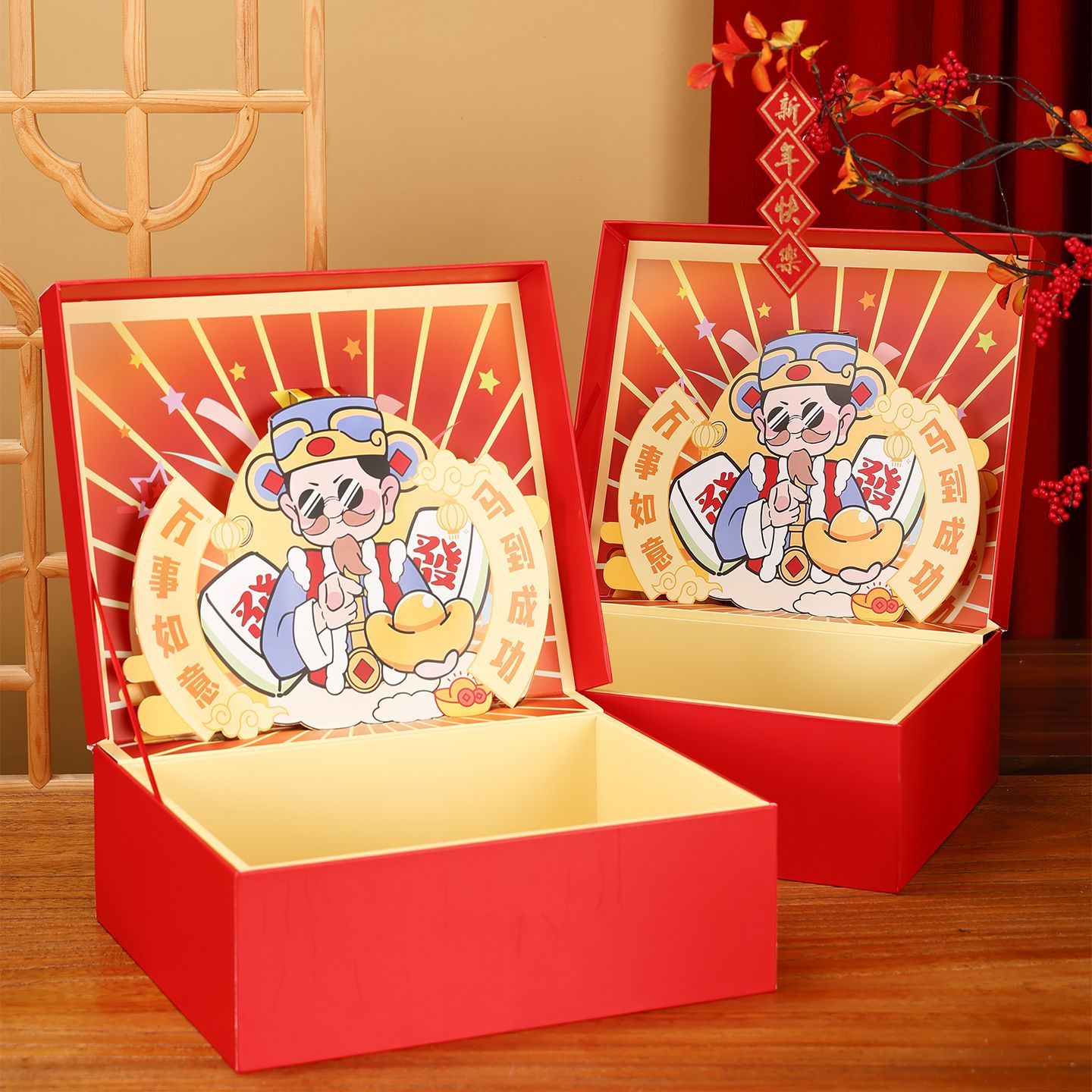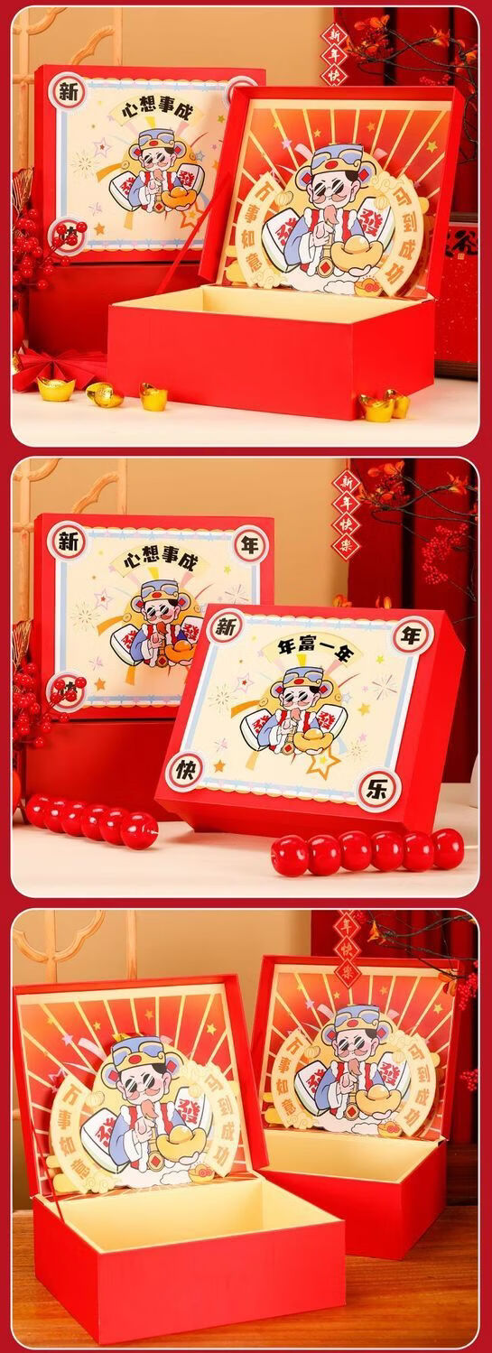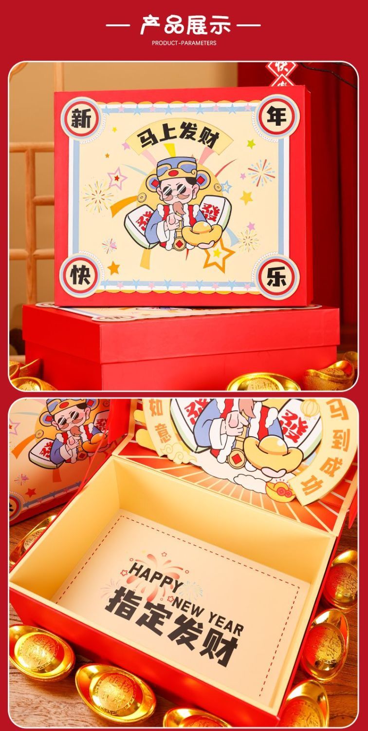 咏幻礼物盒空盒财神款新年立体礼盒春节年货大礼包包装送礼高档礼品盒 指定发财/礼盒礼袋送贺卡 [内尺寸30x20x10cm]