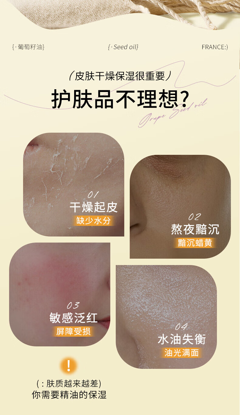 素秀臣氏法国葡萄籽精油面部护肤以油养肤脸部补水保湿滋润按摩全身精华油 2瓶【90%用户选择】