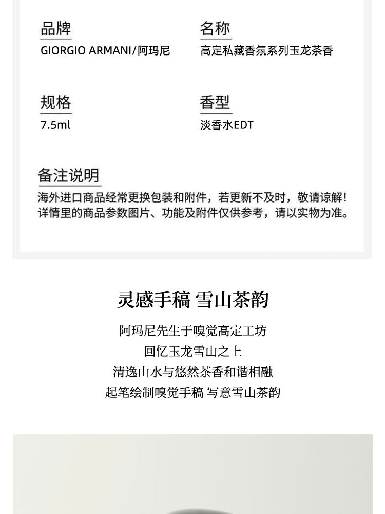 阿玛尼(ARMANI)高定私藏玉龙茶香淡香水 7.5ml绿叶芳香调(无喷头)生日新年礼物